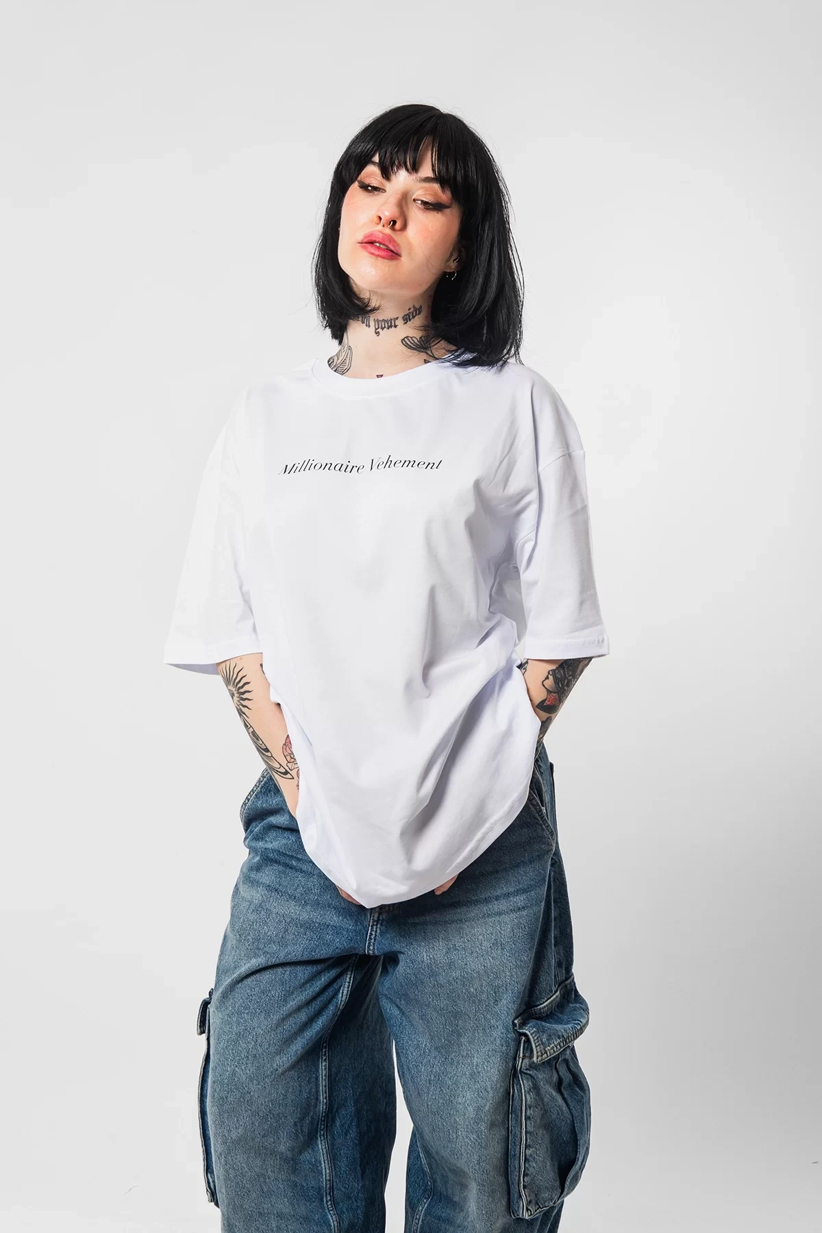 F**k Baskılı Oversize Beyaz Unisex Tshirt