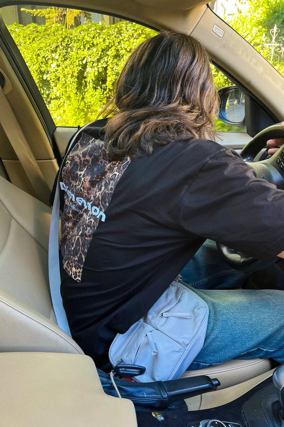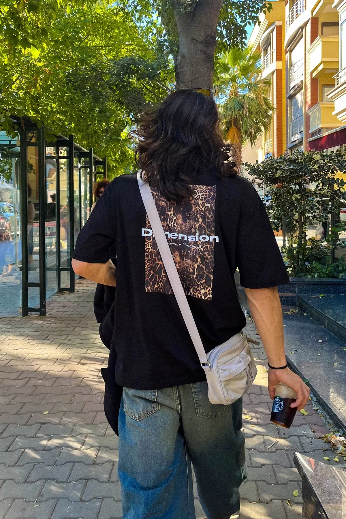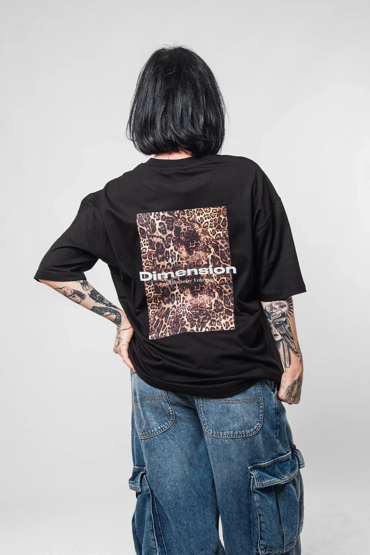 Dimension Baskılı Leopar Desenli 24/1 Oversize Unisex Siyah Tshirt