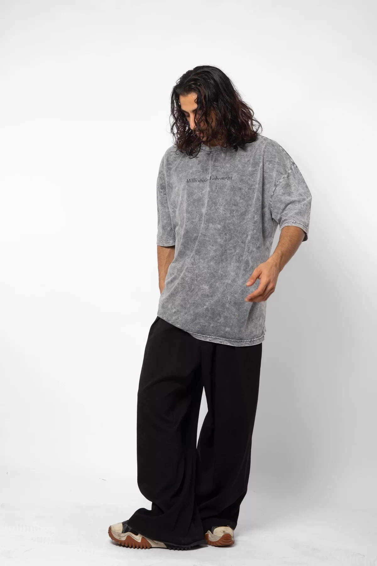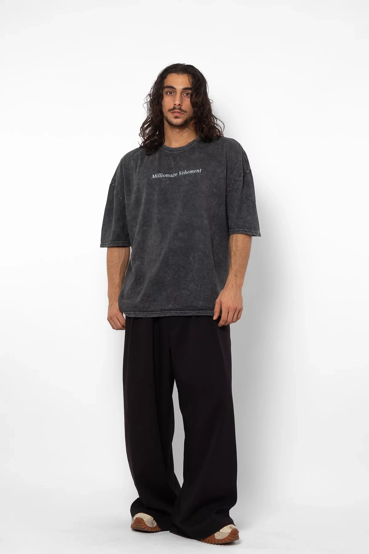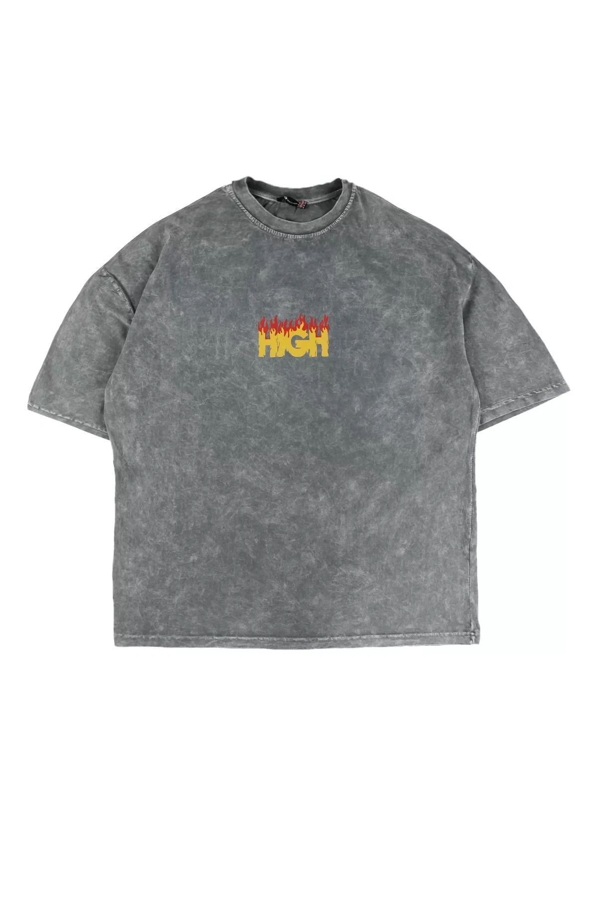 High Yıkamalı Siyah Oversize Unisex Tshirt