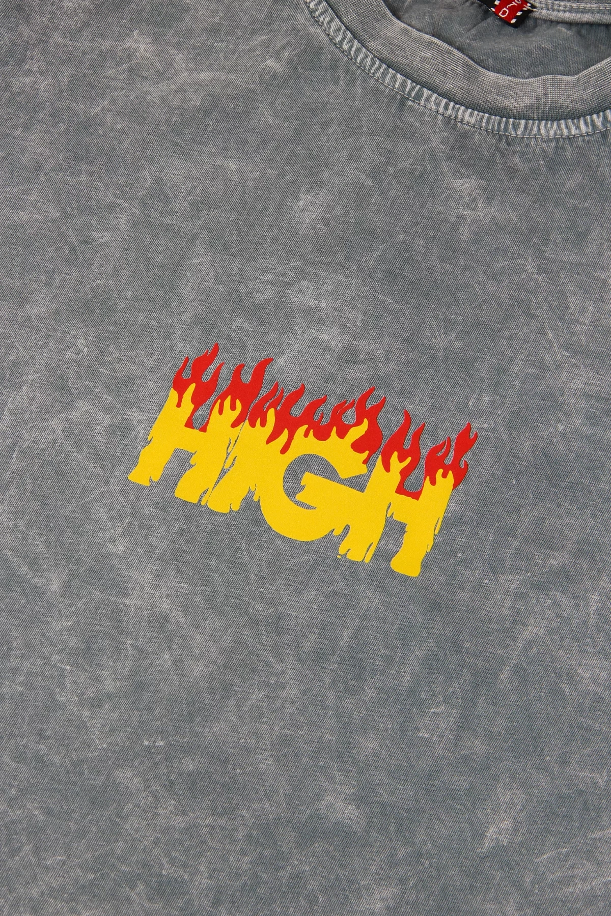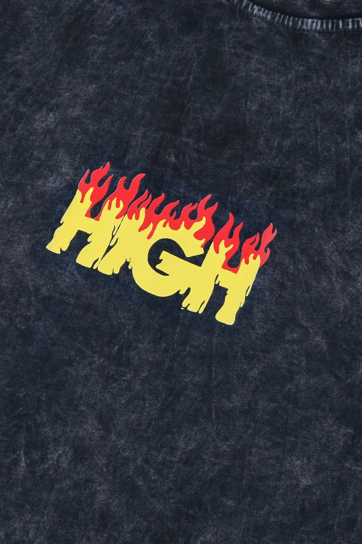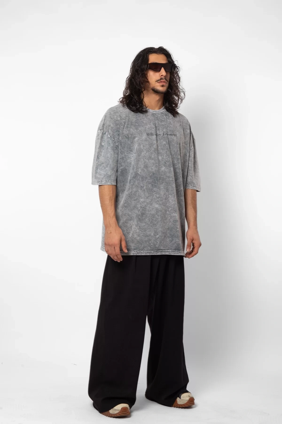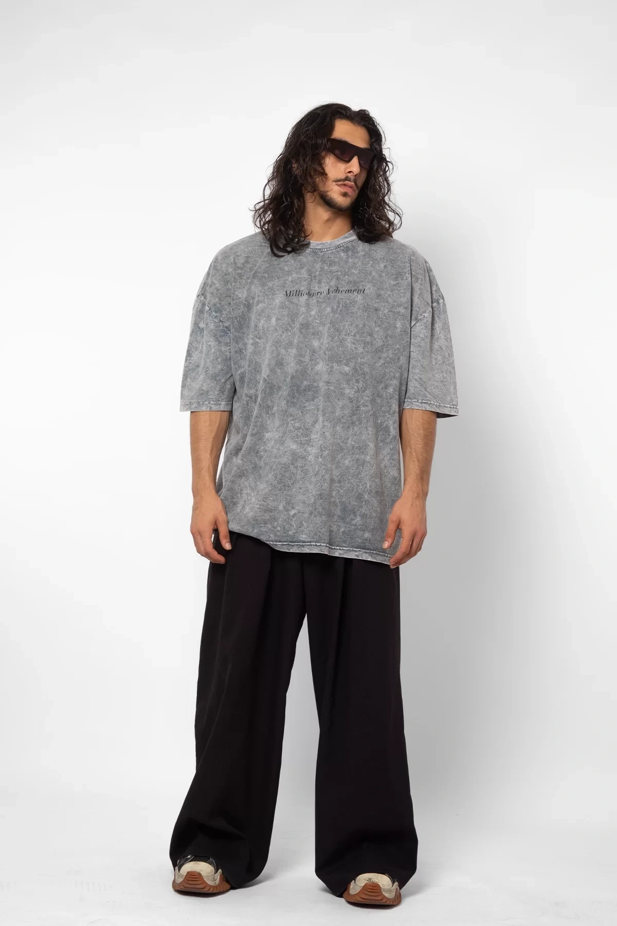 High Yıkamalı Siyah Oversize Unisex Tshirt