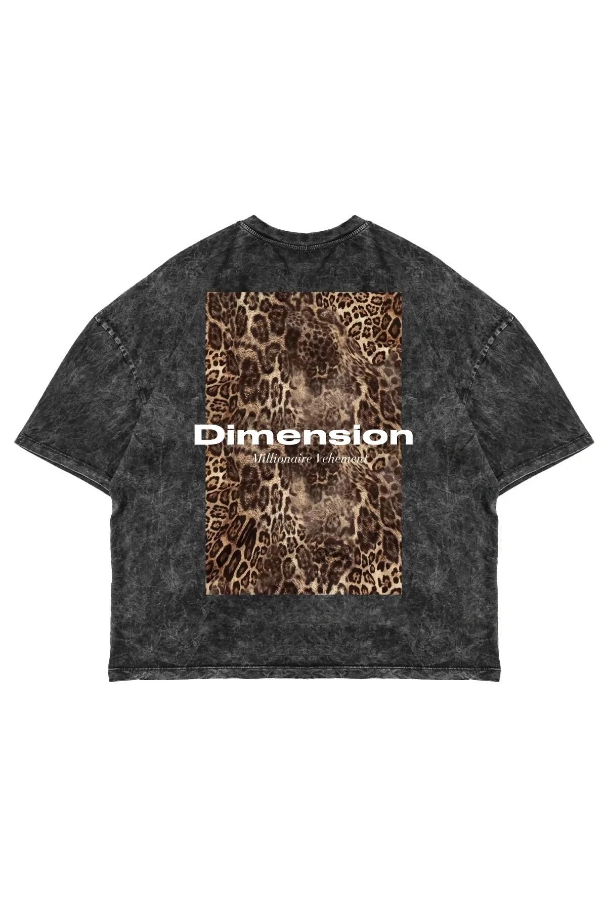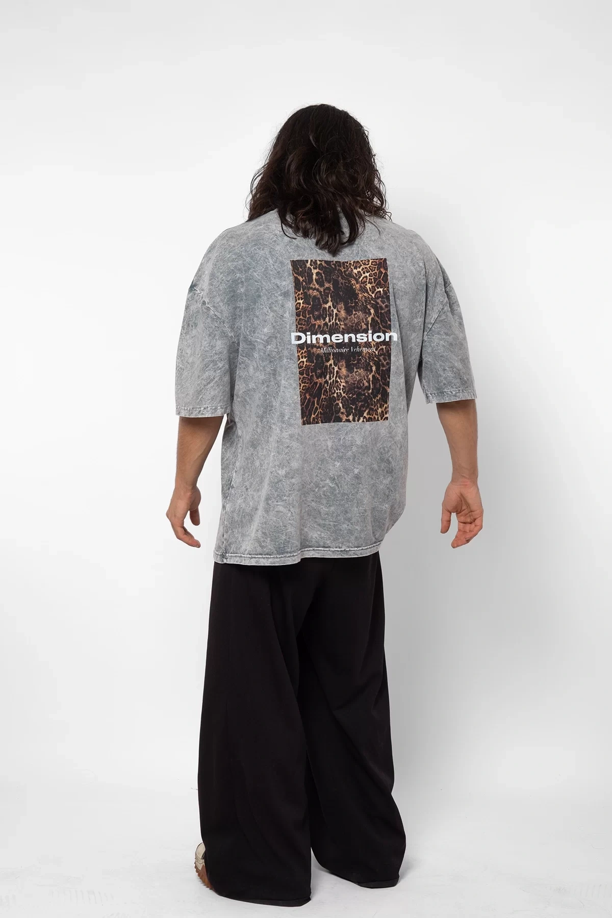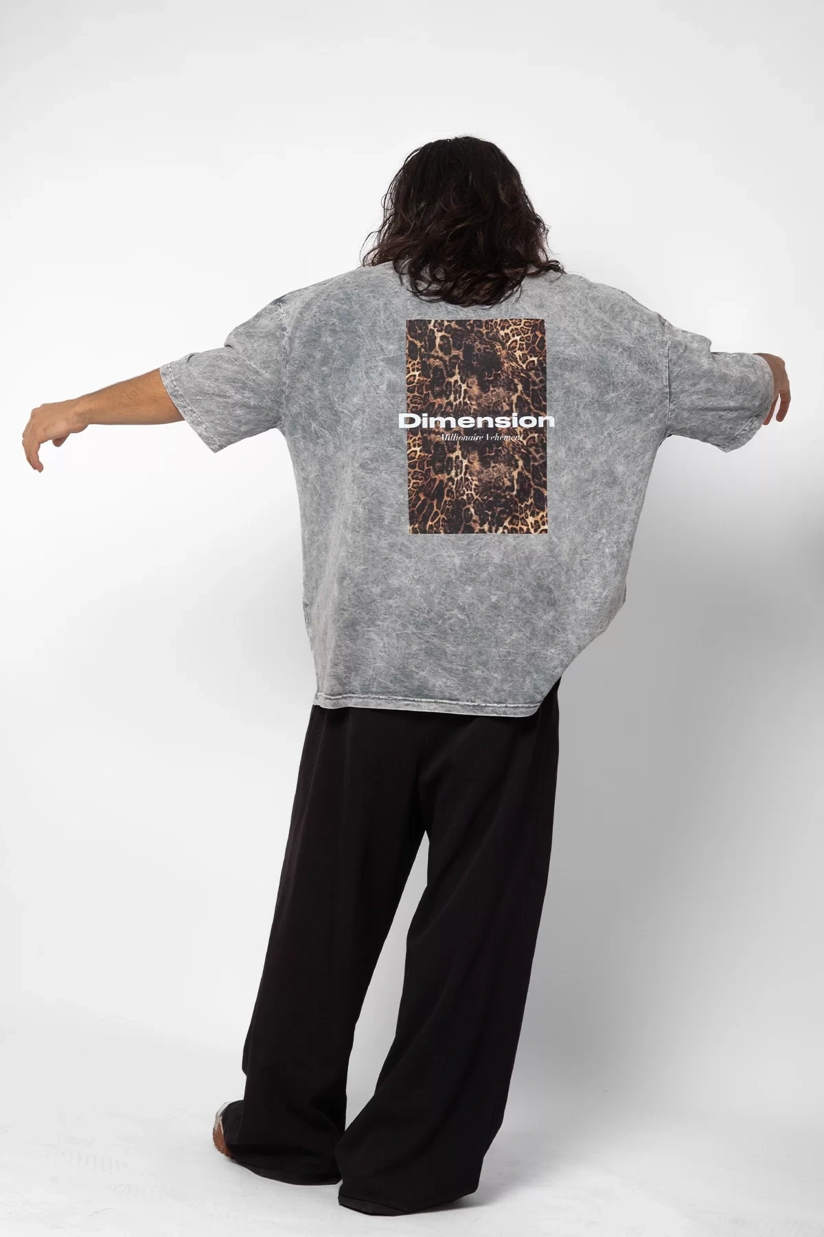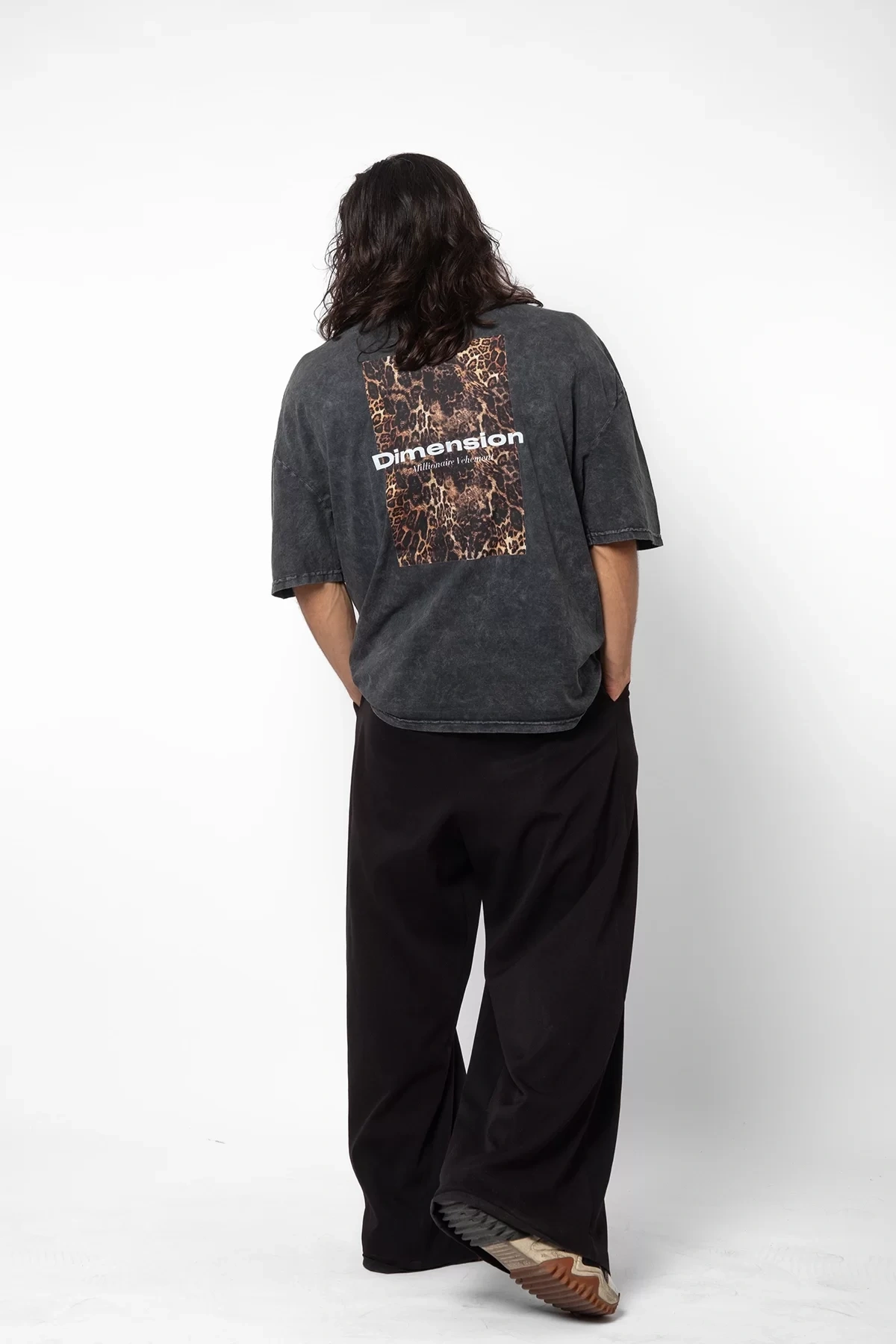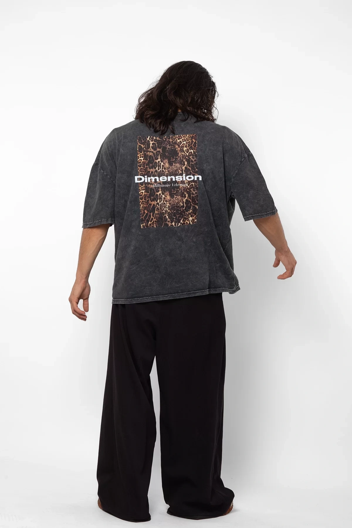 Dİmension Baskılı Leopar Desenli 24/1 Oversize Unisex Yıkamalı Siyah Tshirt