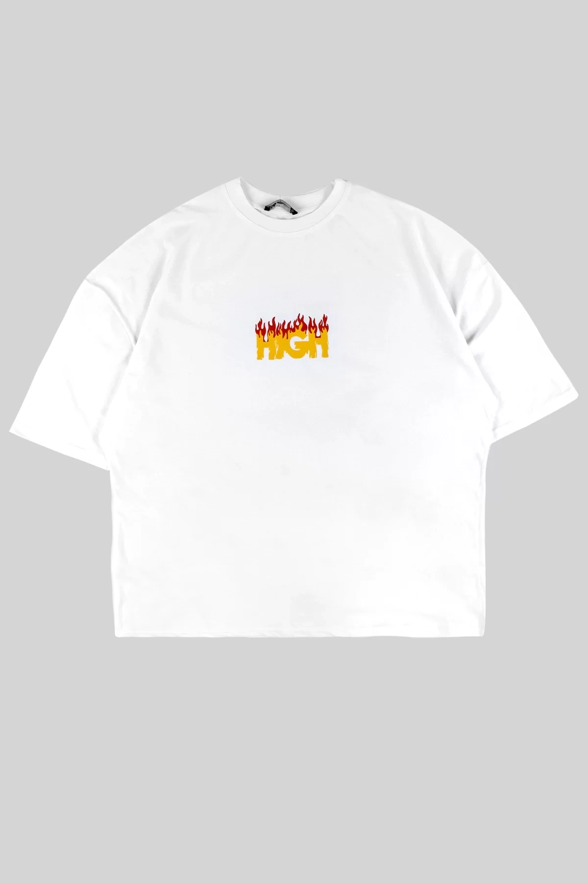 High Yıkamalı Beyaz Oversize Unisex Tshirt