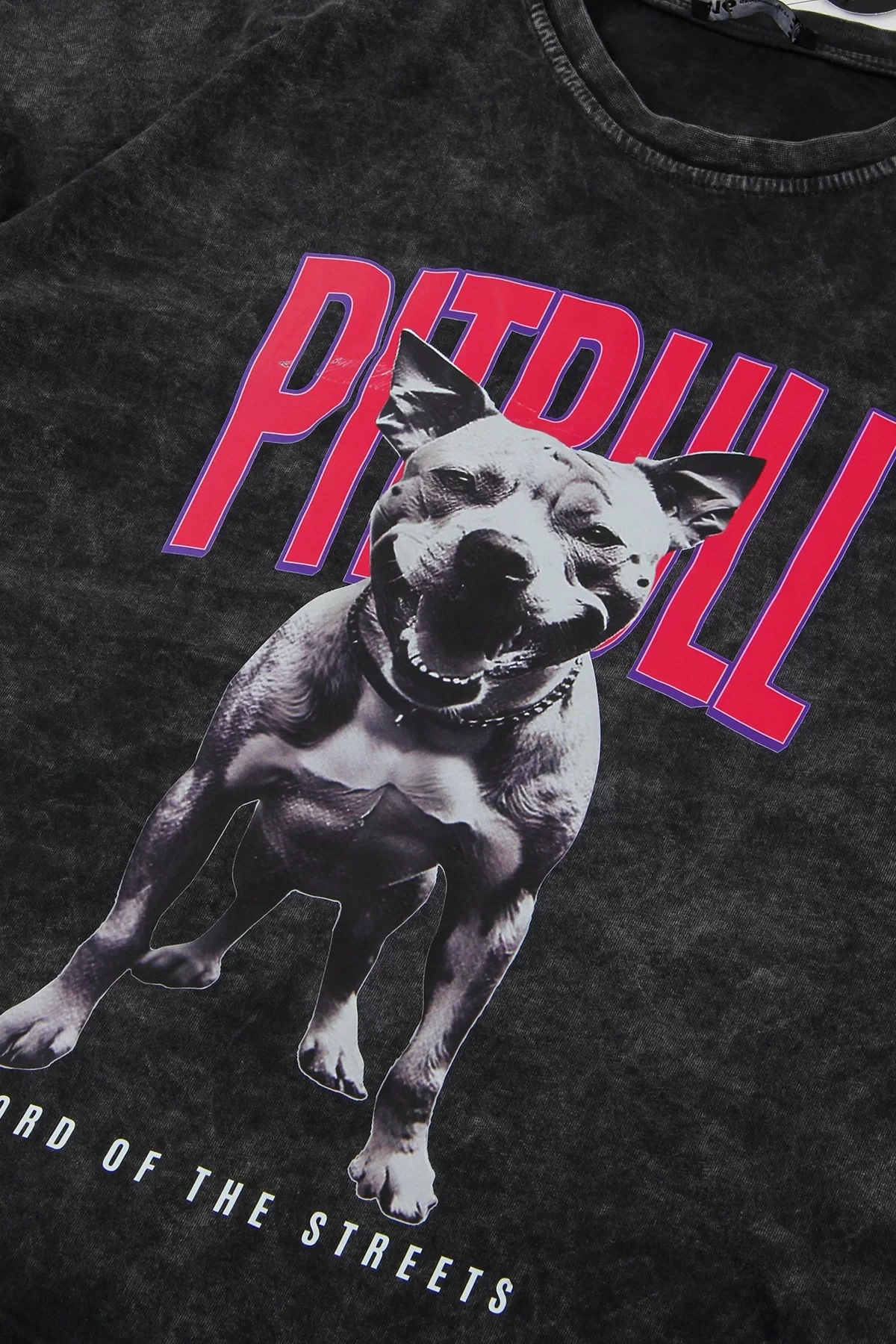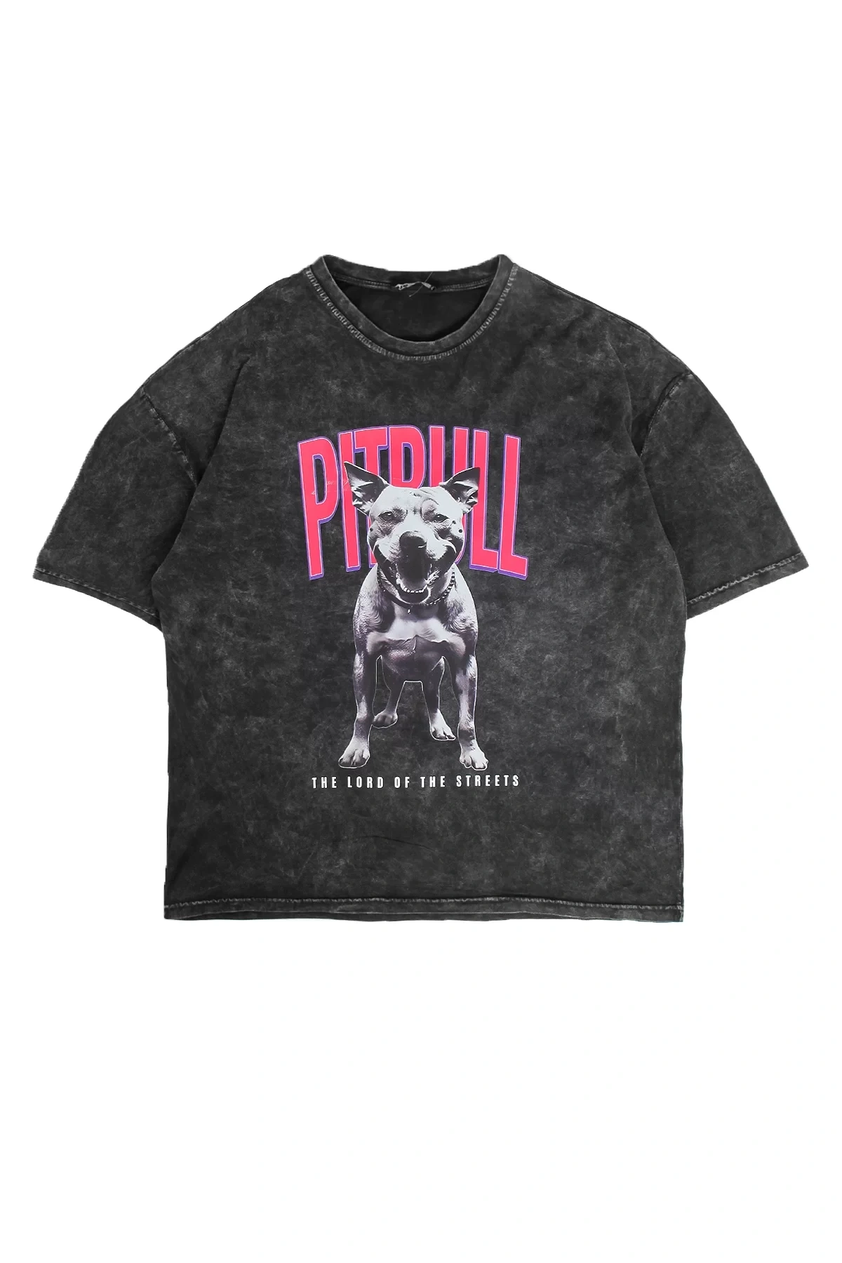 Pıtbull Baskılı Yıkamalı Siyah Oversize Unisex Tshirt