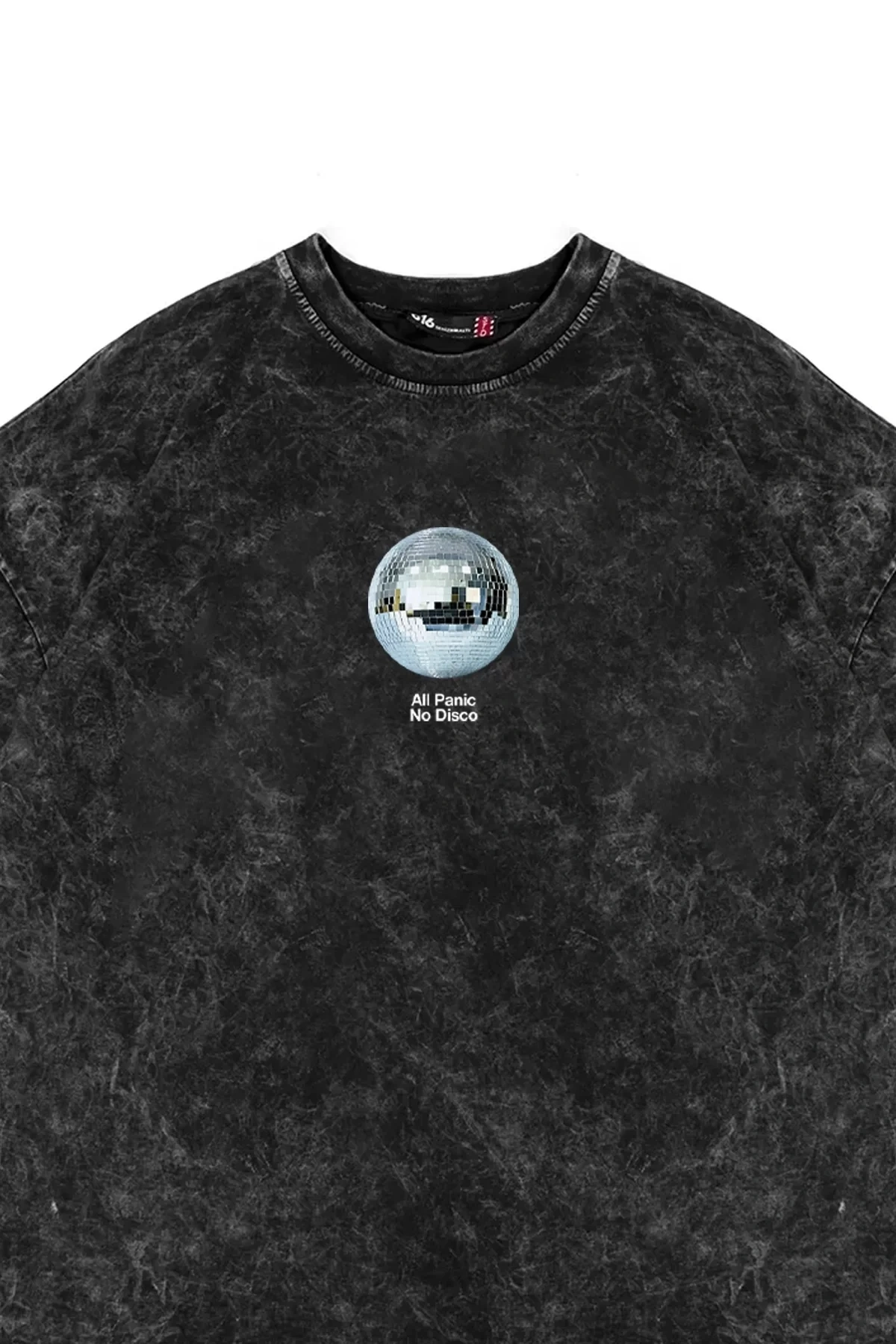All Panic No Disco Baskılı Yıkamalı Siyah Unisex Oversize Tshirt