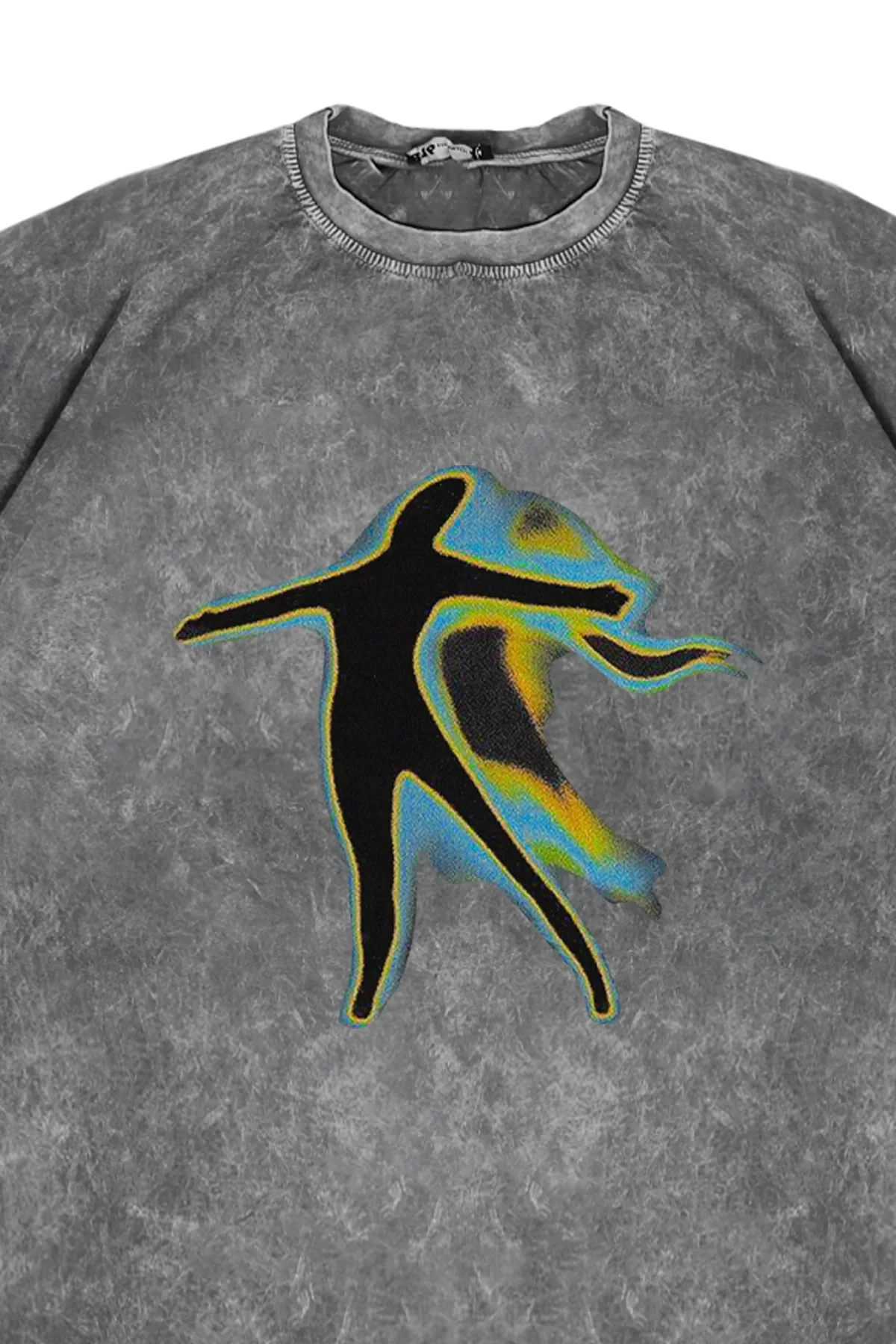 Thermal Hand Baskılı Oversize Unisex Yıkamalı Füme Tshirt