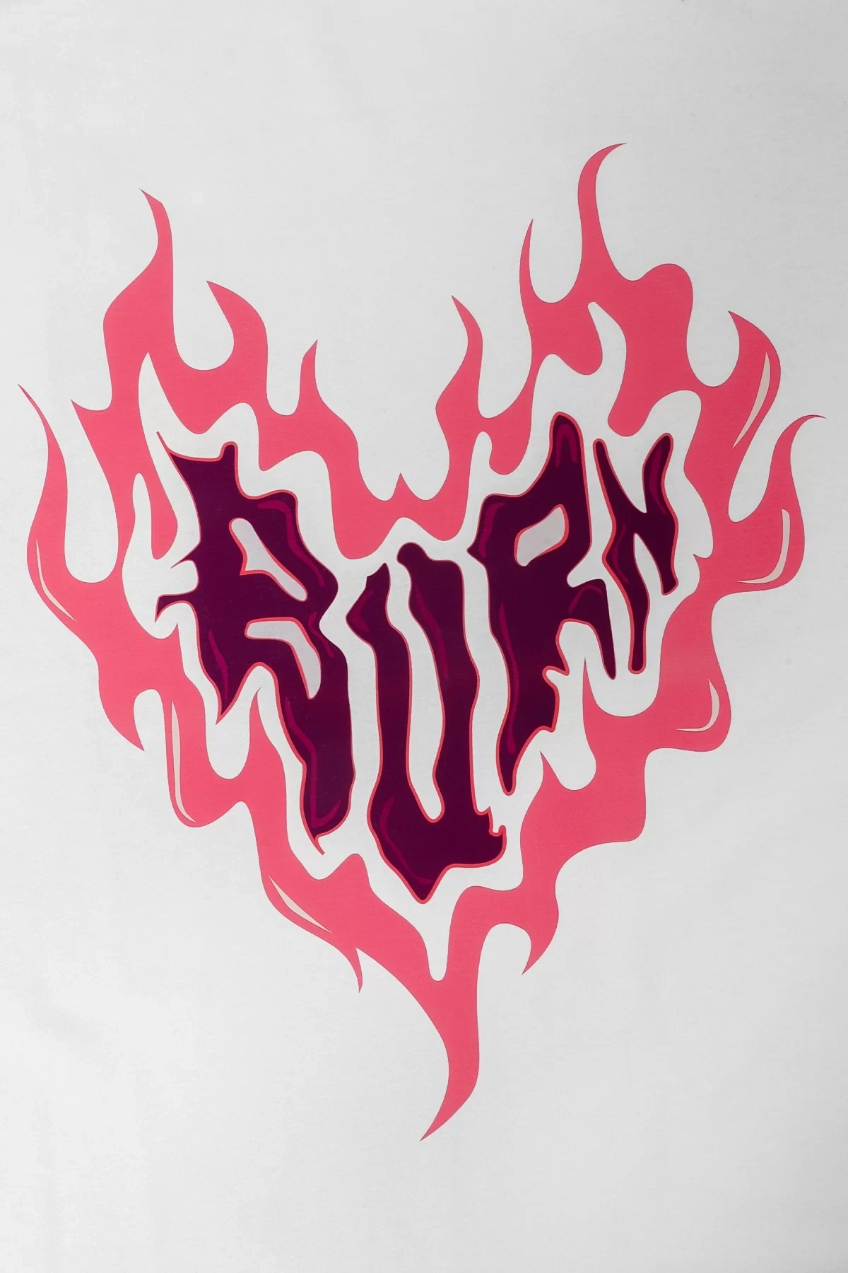 Burn Heart Baskılı Beyaz Unisex Oversize Tshirt