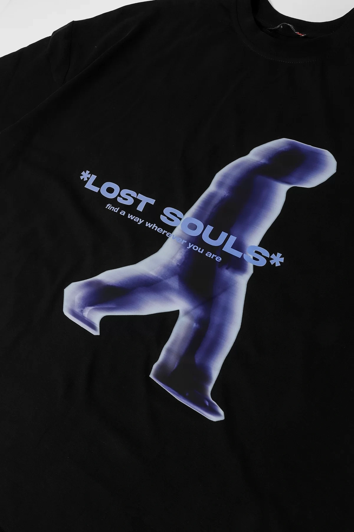 Lost Souls Baskılı Siyah Unisex Oversize Tshirt