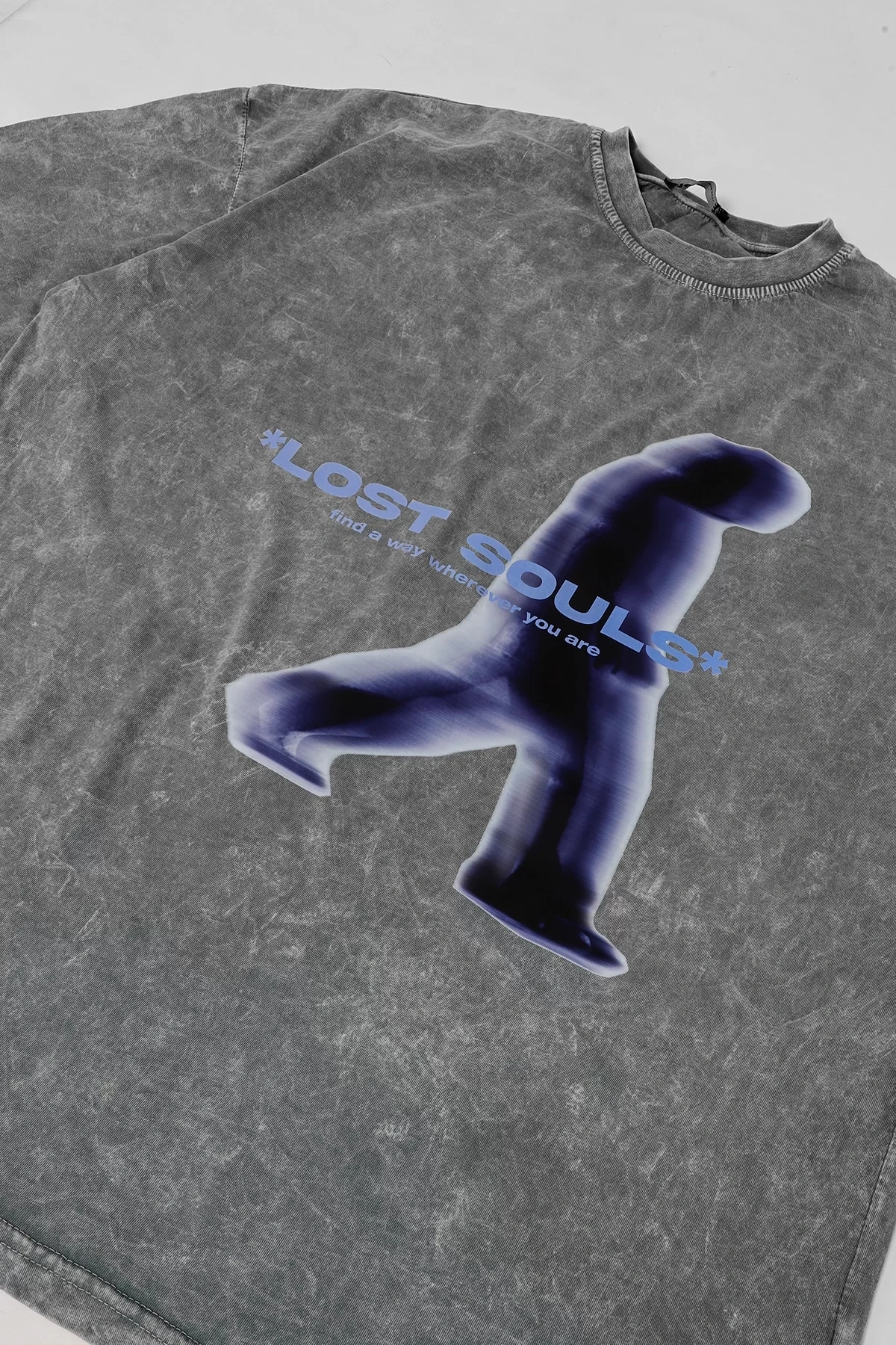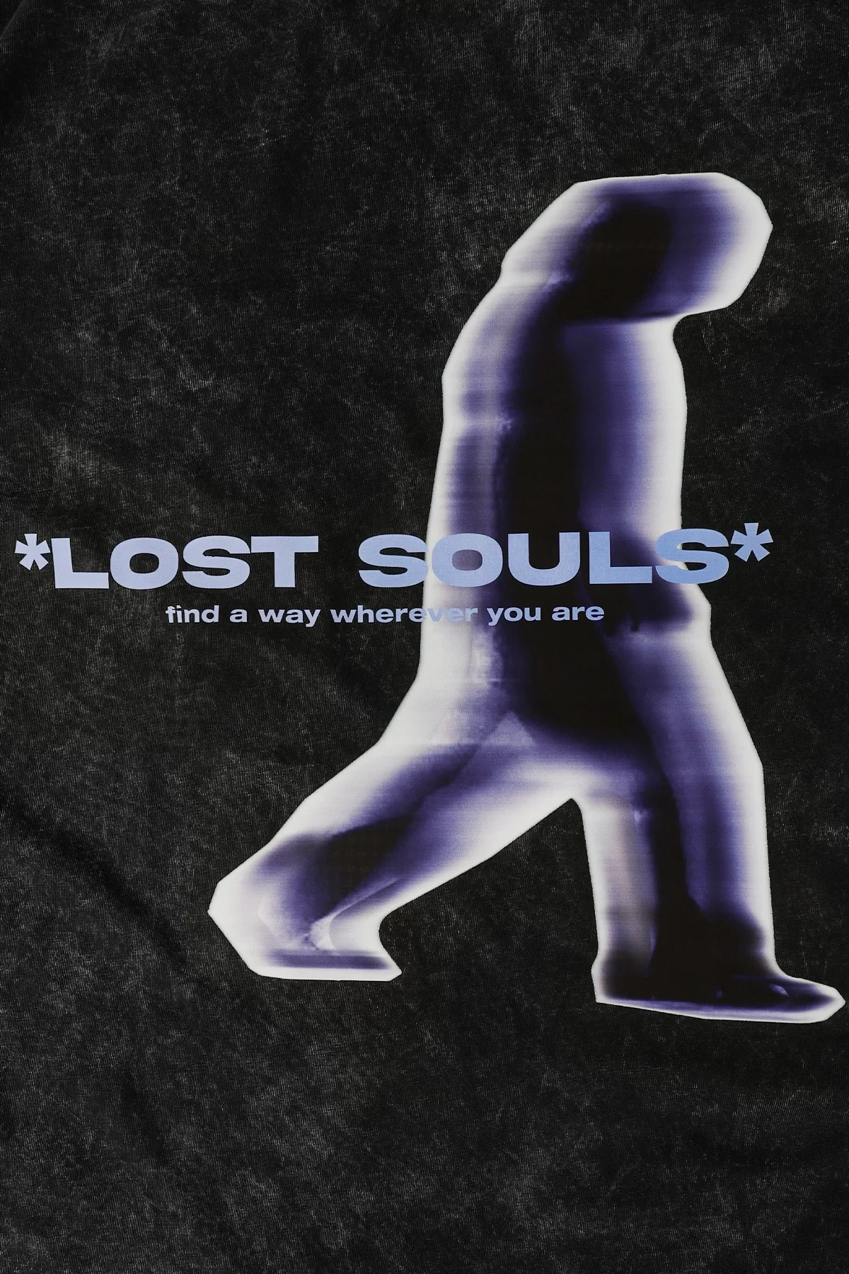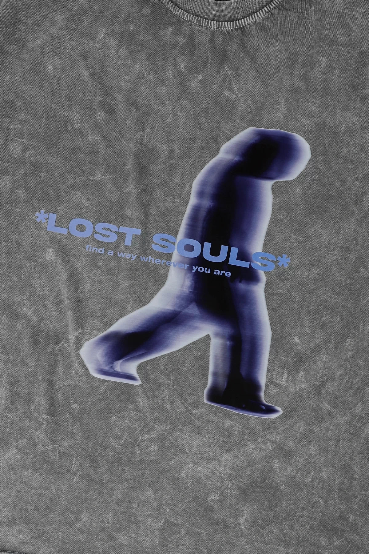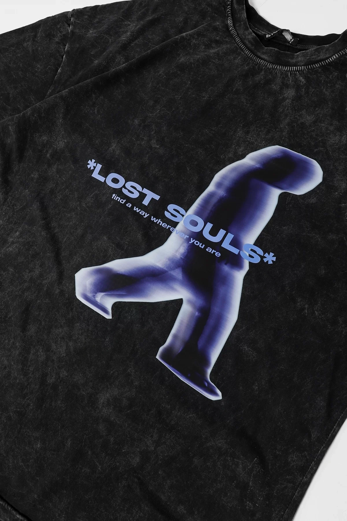 Lost Souls Baskılı Yıkamalı Siyah Unisex Oversize Tshirt