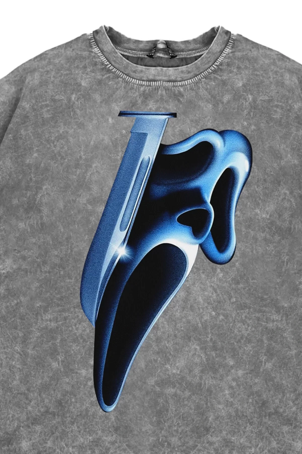 Mask Baskılı Yıkamalı Beyaz Unisex Oversize Tshirt
