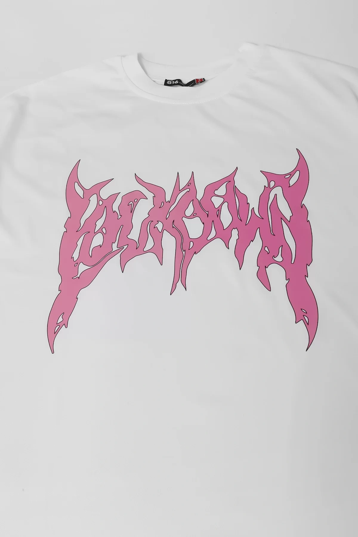 Pink Street Font Baskılı Beyaz Unisex Oversize Tshirt