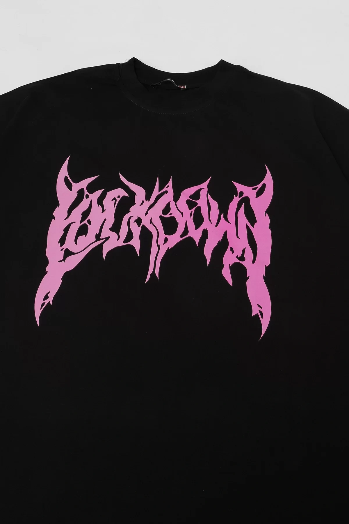 Pink Street Font Baskılı Siyah Unisex Oversize Tshirt