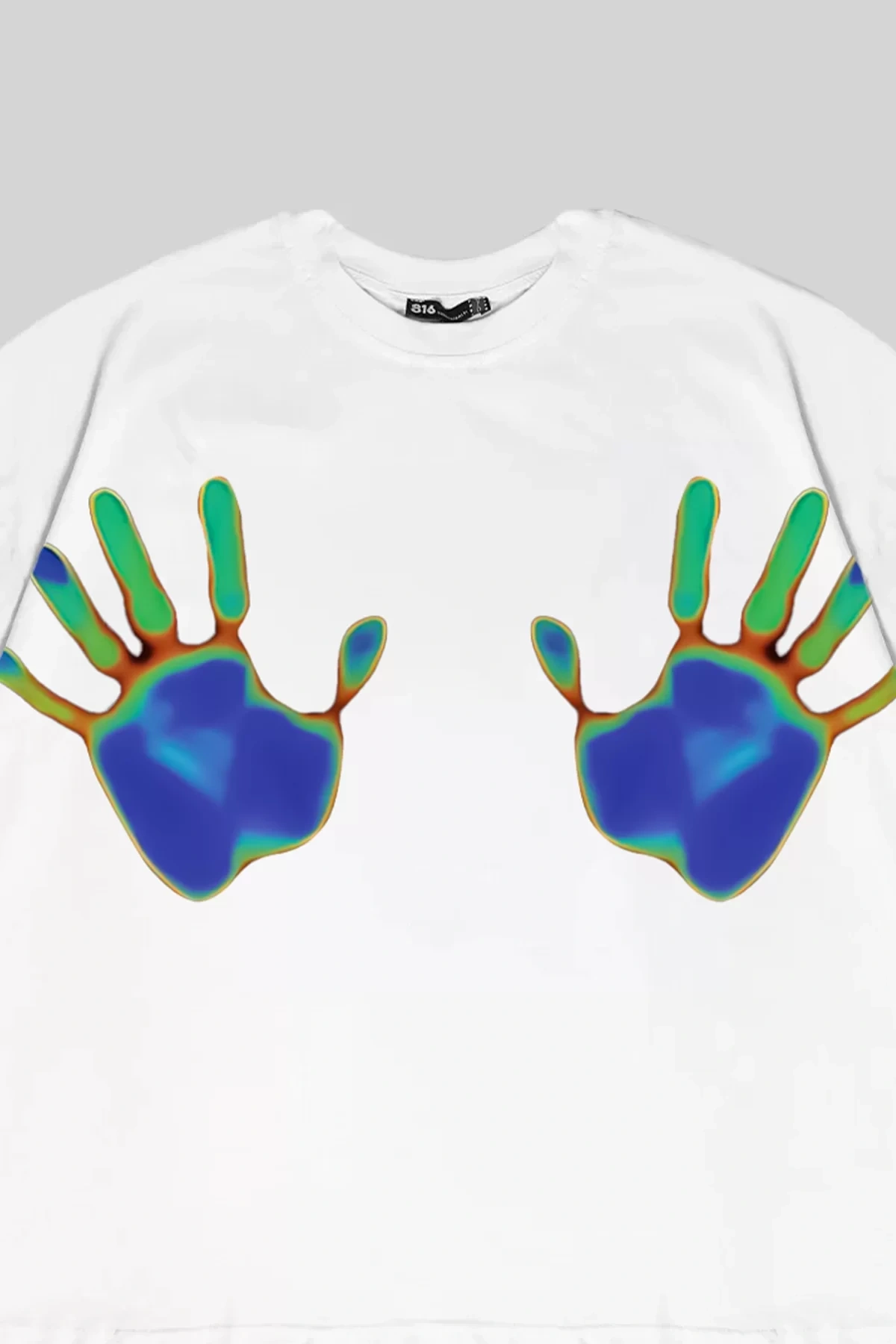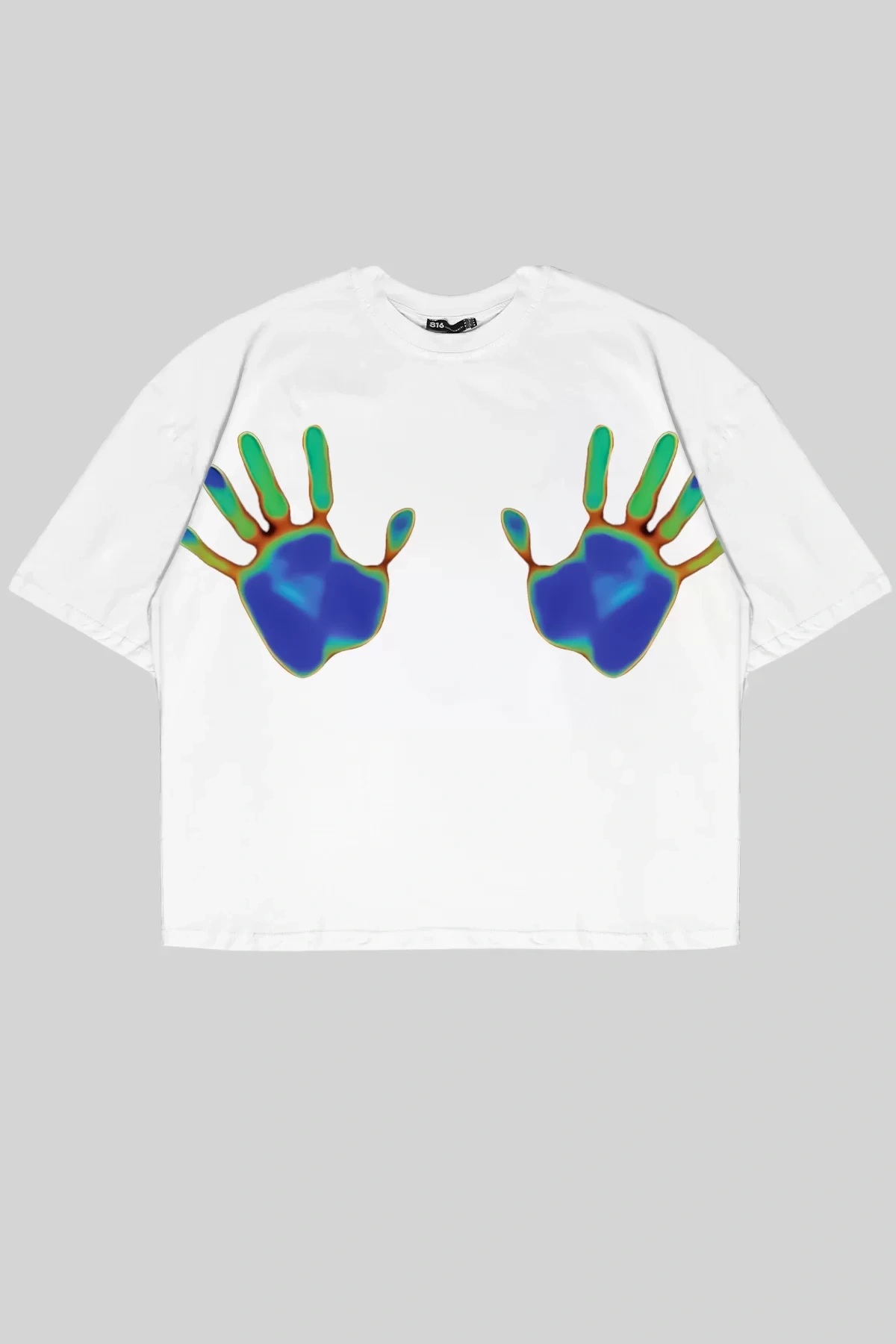 Thermal Hand Baskılı Beyaz Unisex Oversize Tshirt