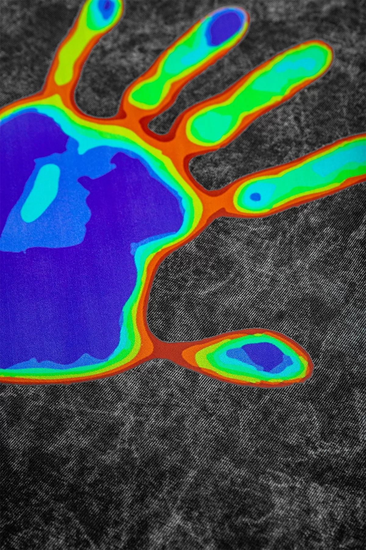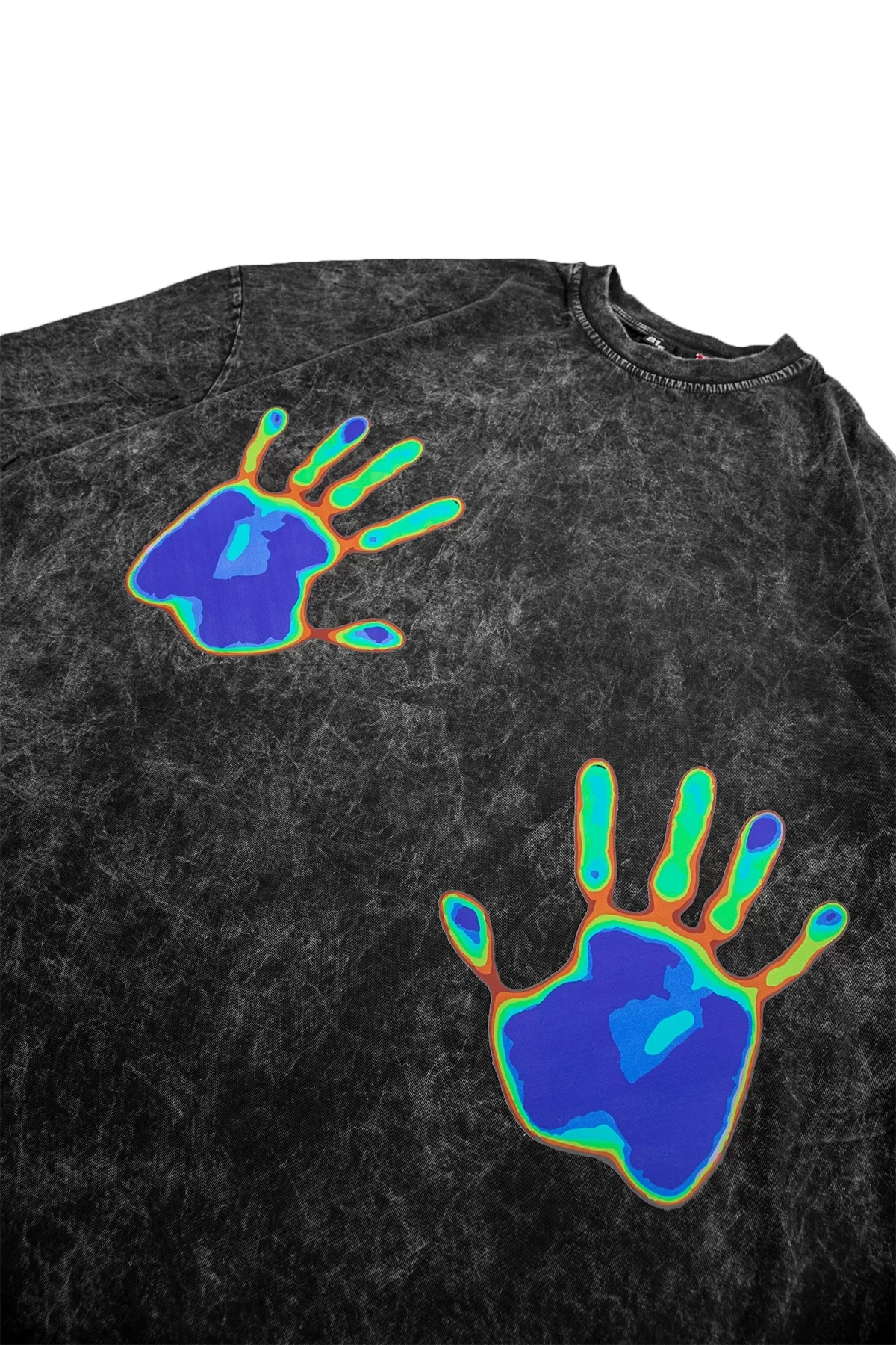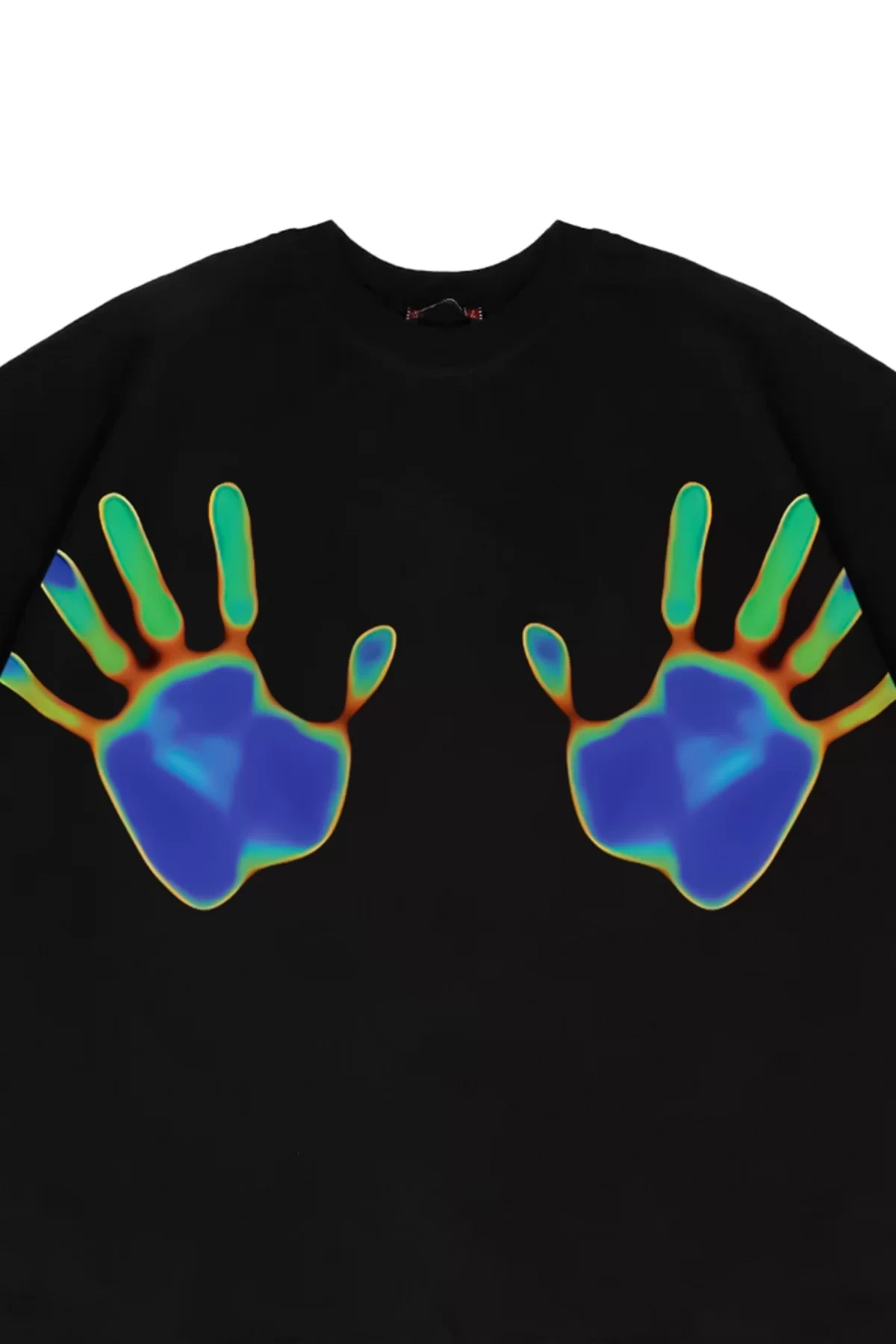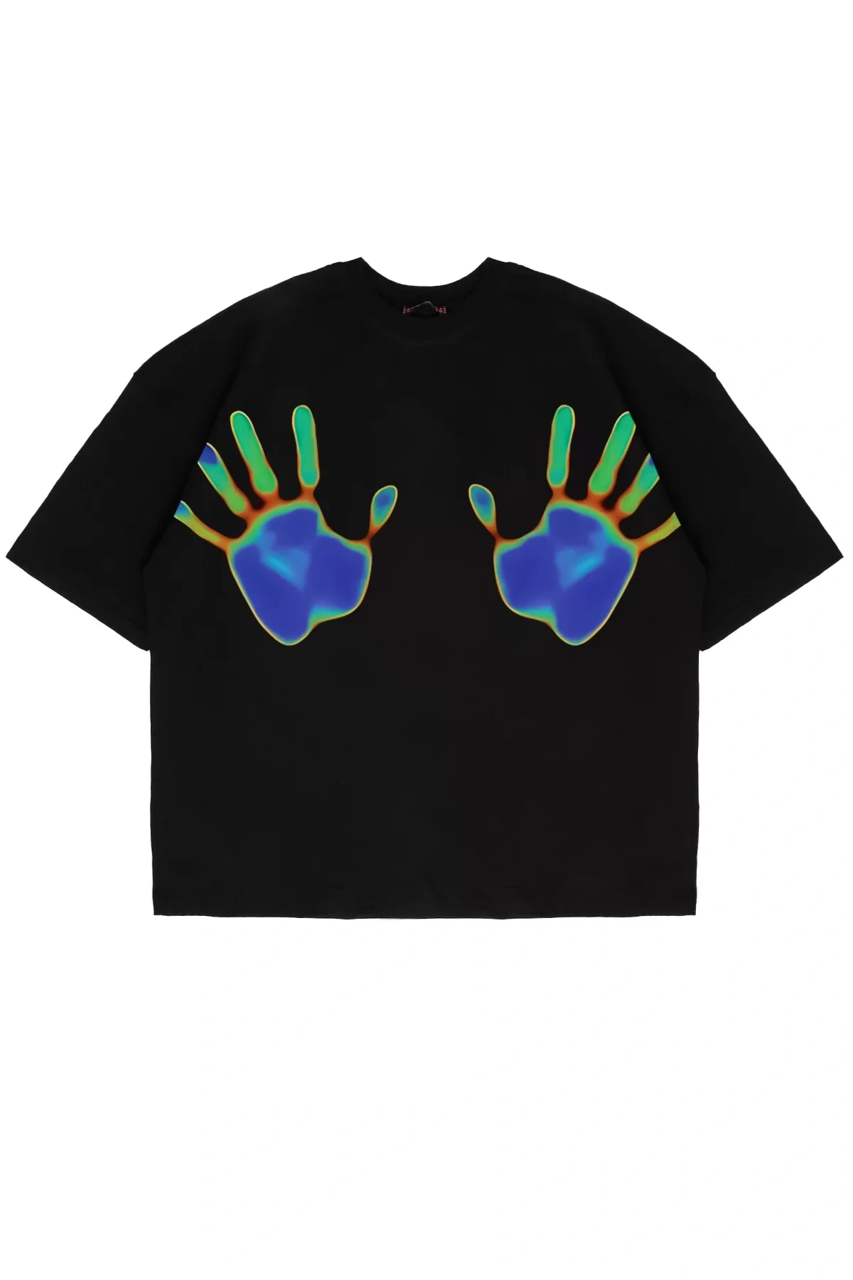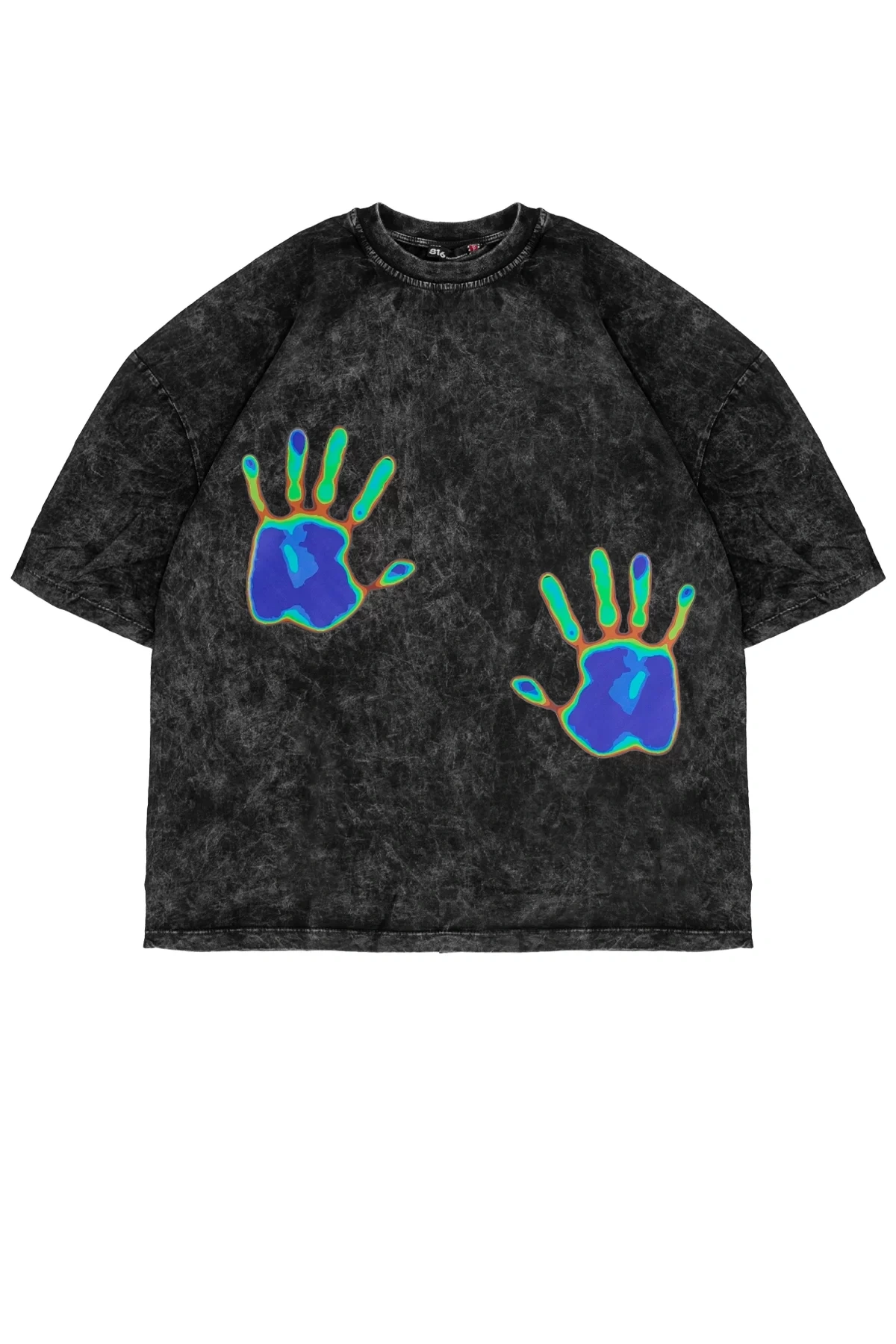 Thermal Hand Baskılı Siyah Unisex Oversize Tshirt