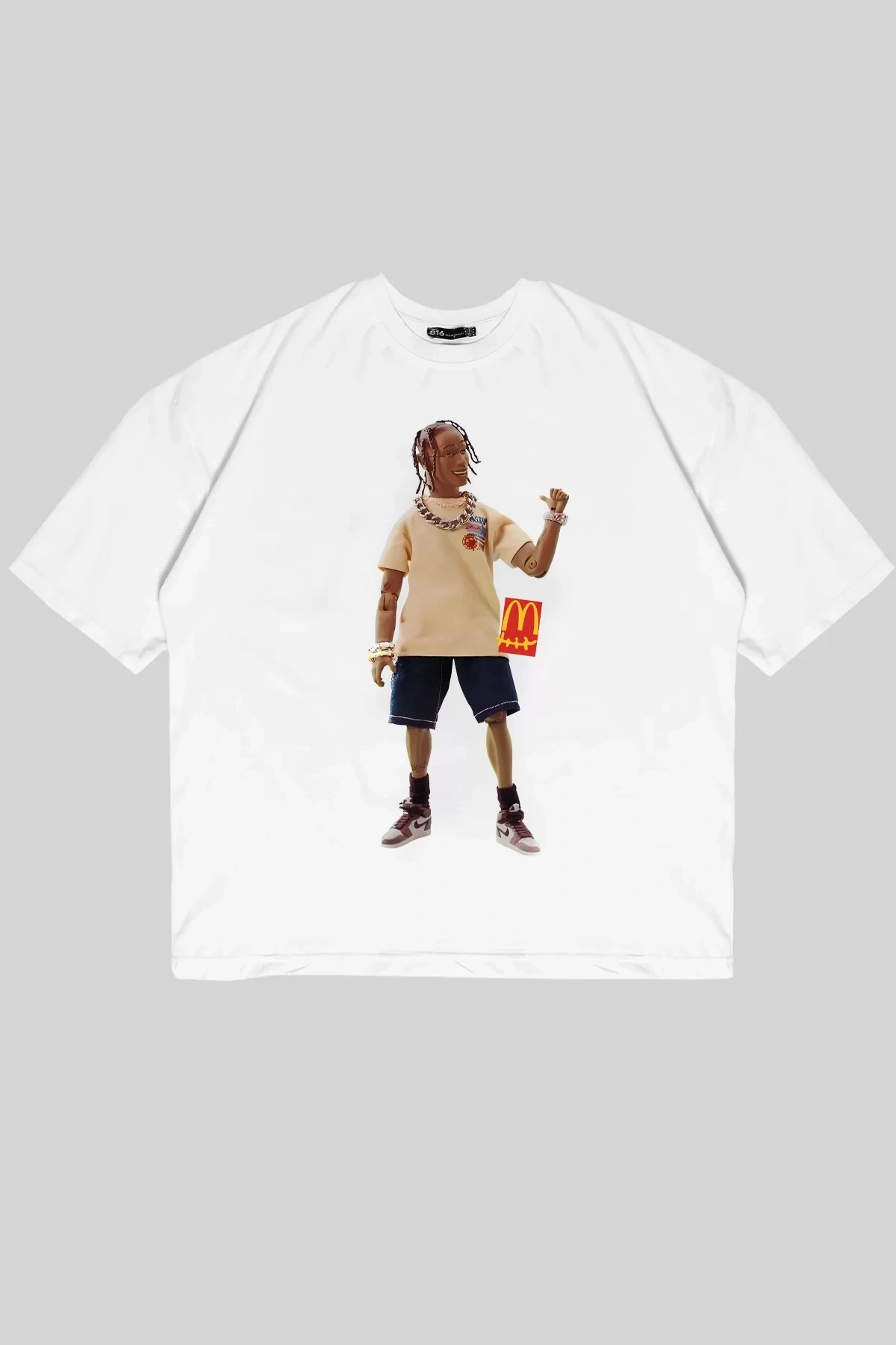 Travis Mc Baskılı Oversize Unisex Beyaz Tshirt
