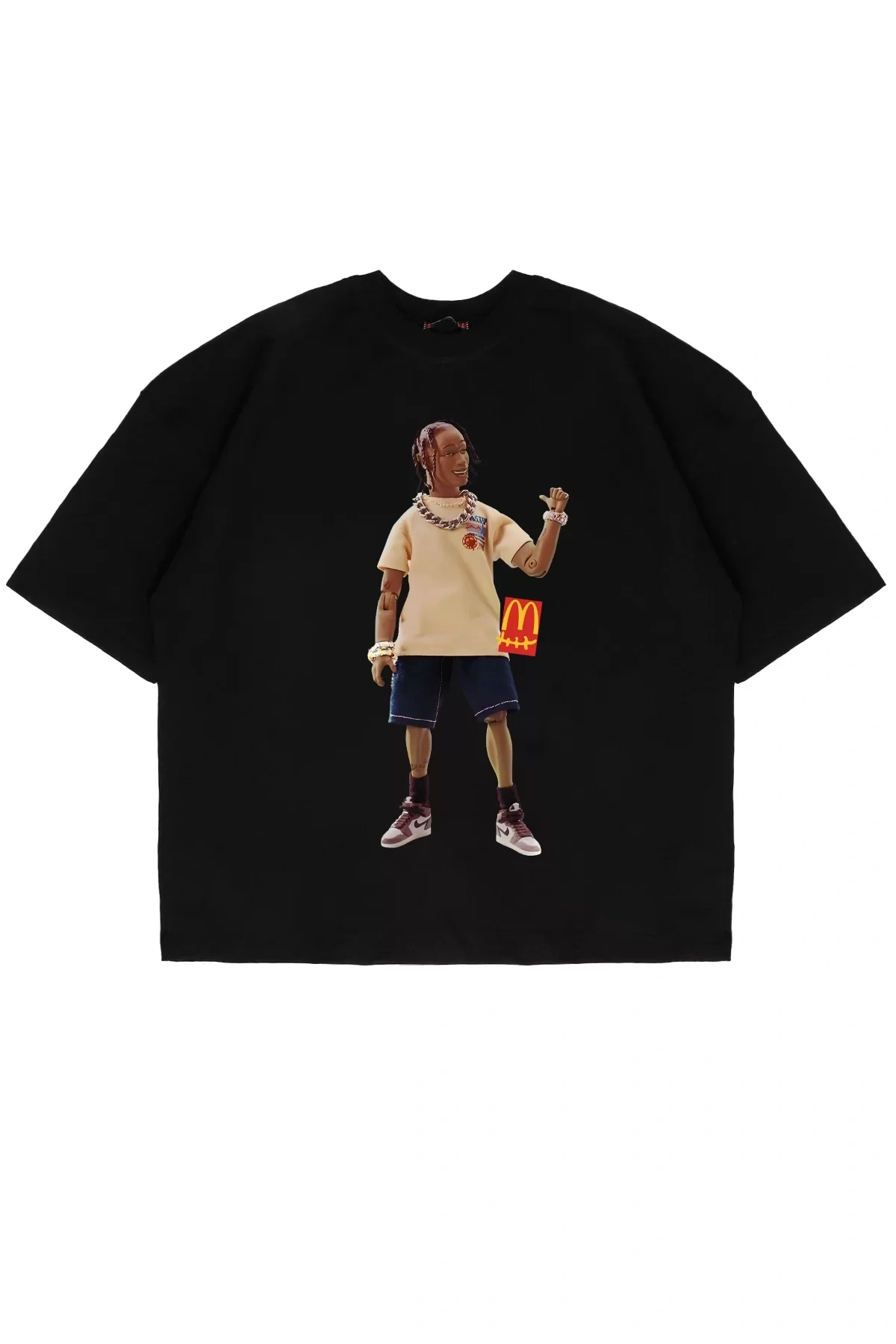 Travis Mc Baskılı Oversize Unisex Siyah Tshirt