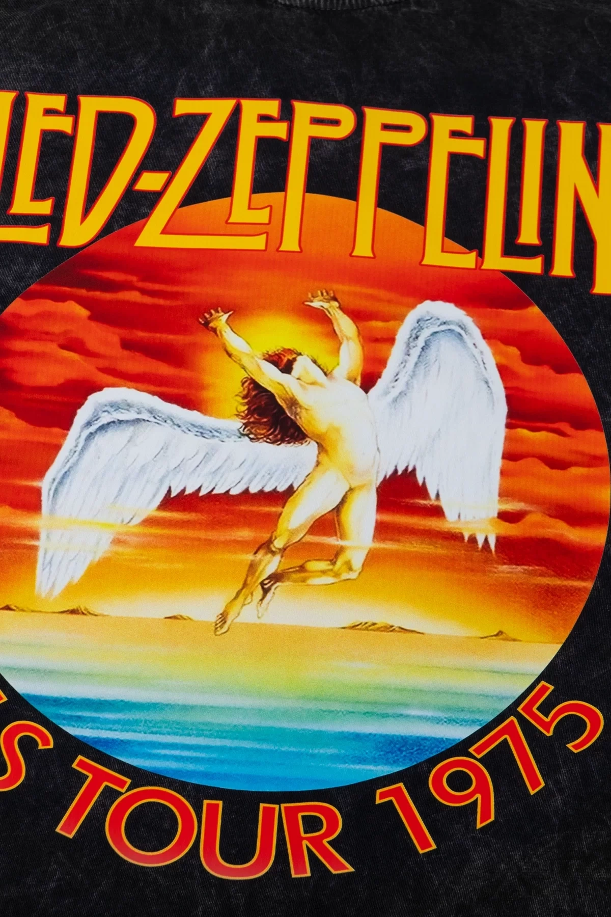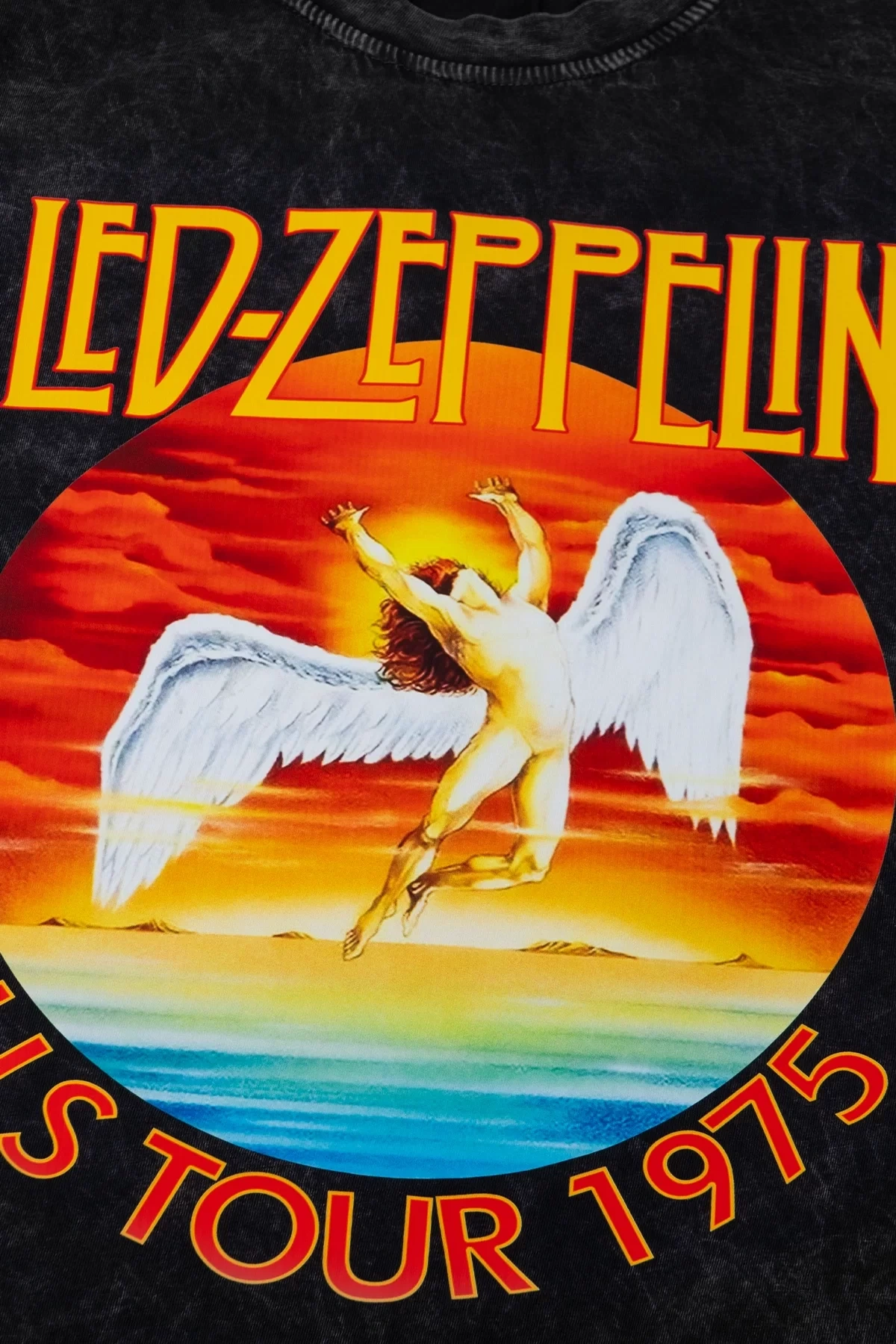 Led Zeppelin Baskılı Yıkamalı Siyah Oversize Tshirt
