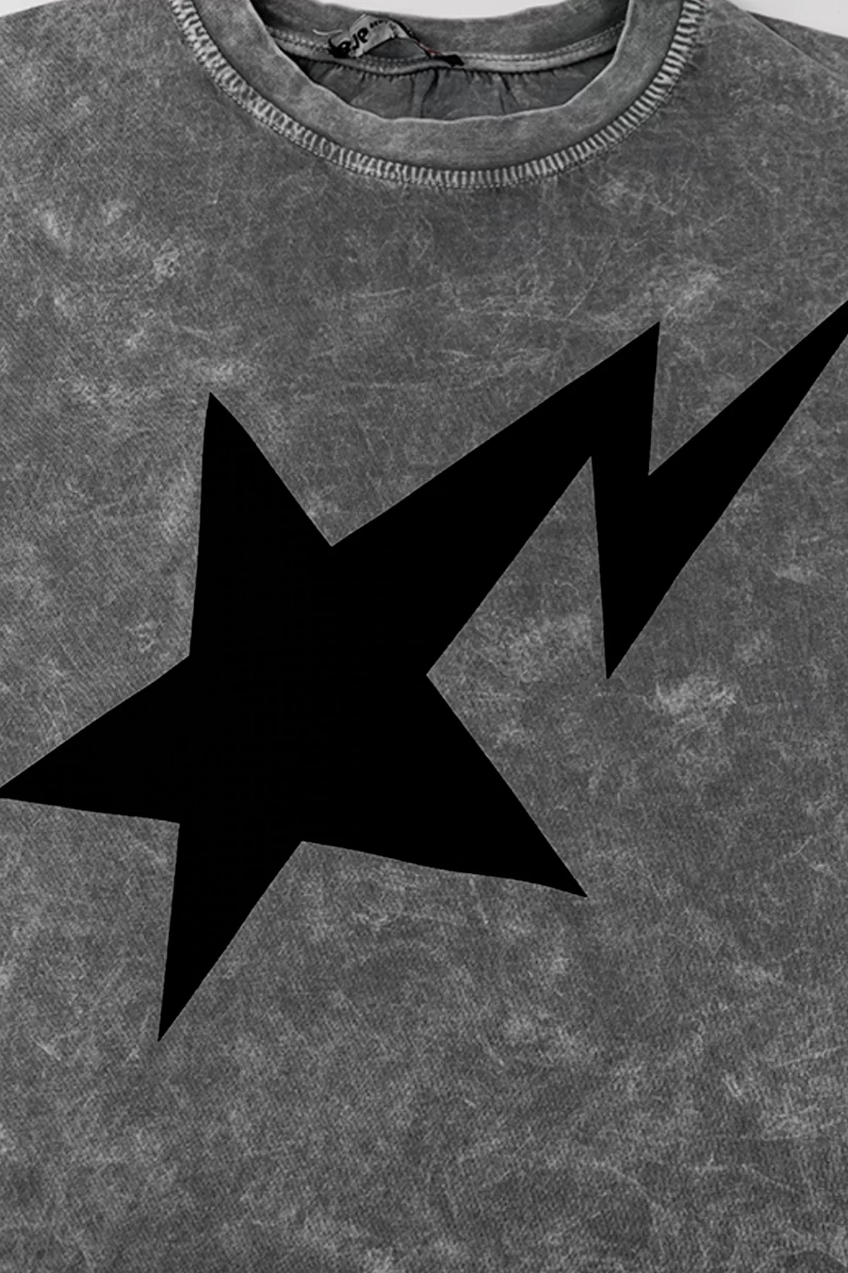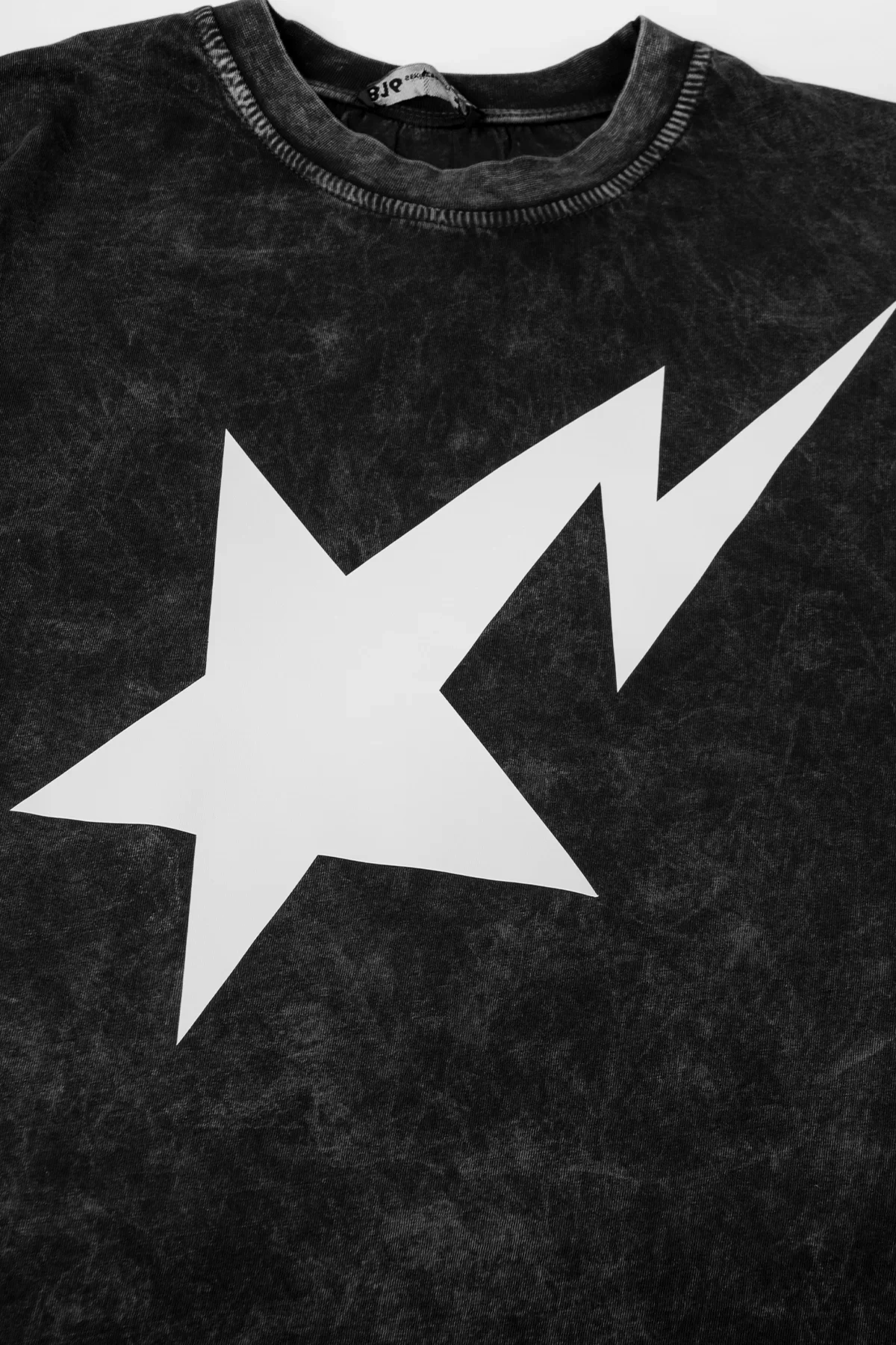 Falling Star Oversize Unisex Yıkamalı Siyah Tshirt
