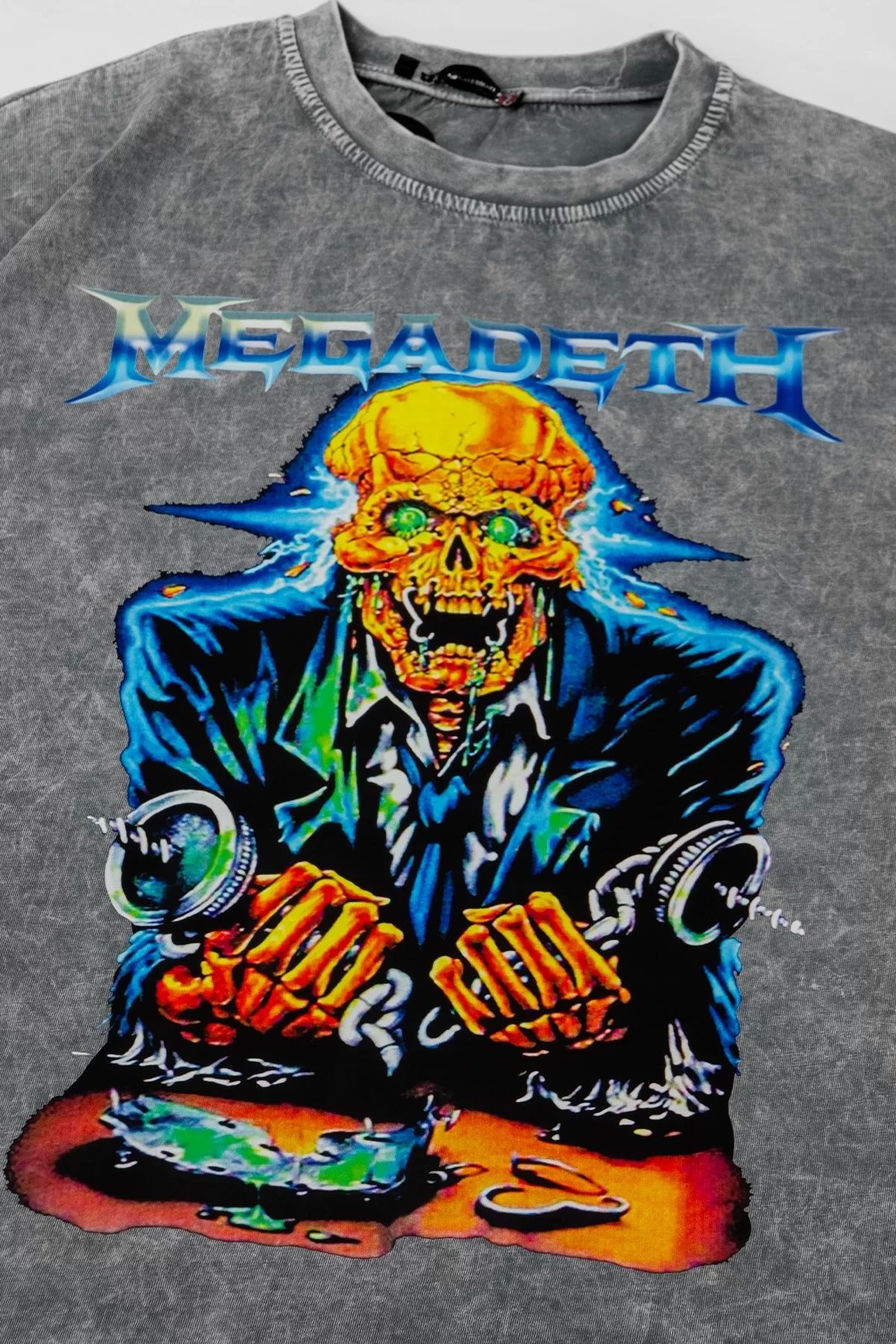 Megadeth Baskılı Beyaz Yıkamalı Unisex Oversize Tshirt