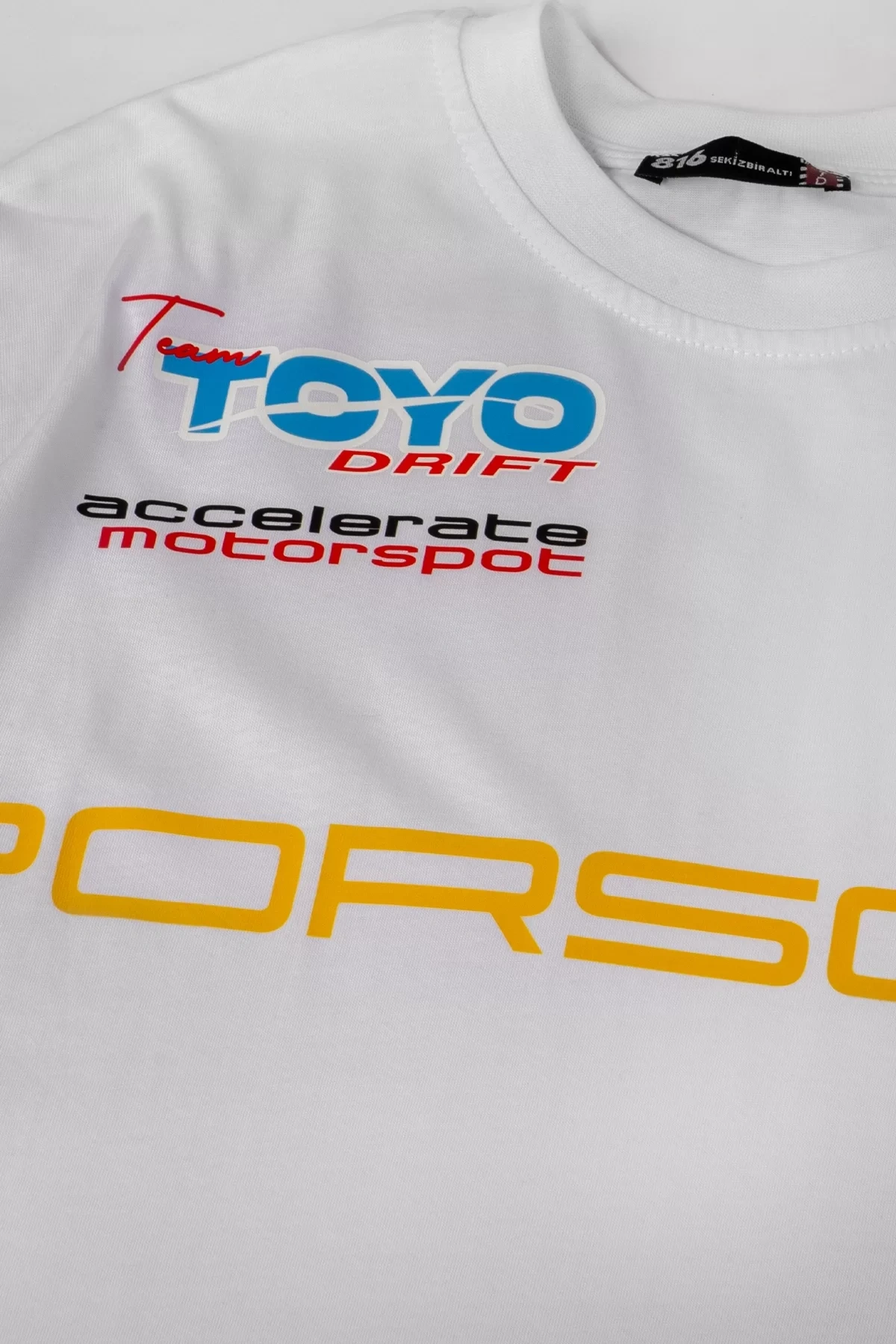 Racing Motorsport Car Baskılı Oversize Unisex Beyaz Tshirt