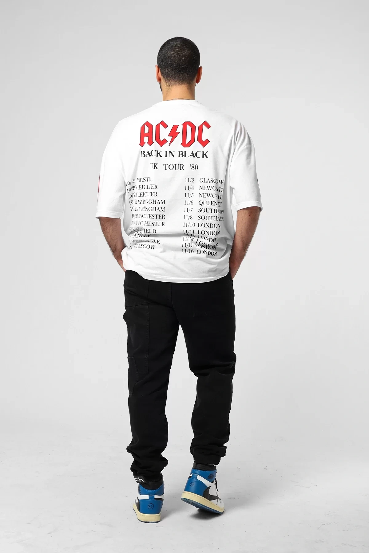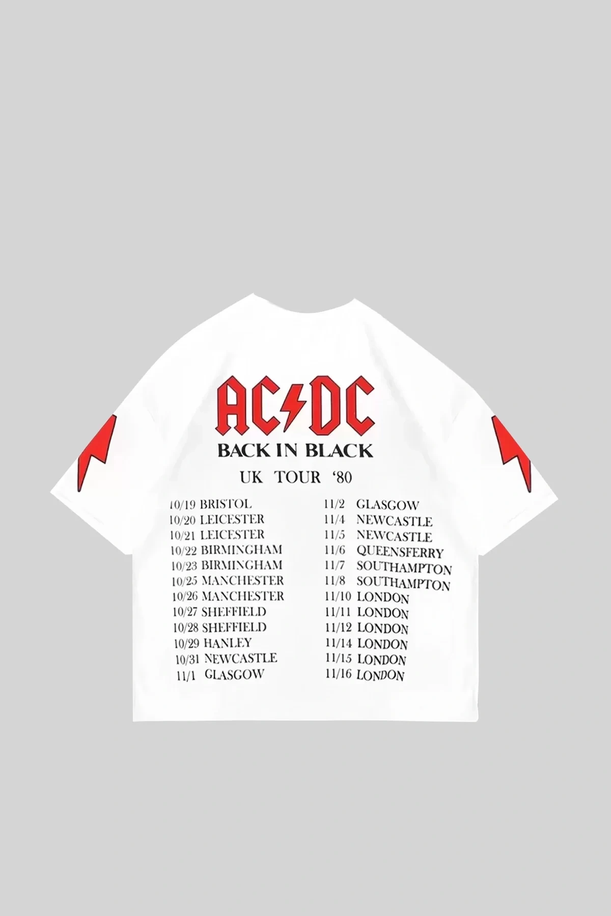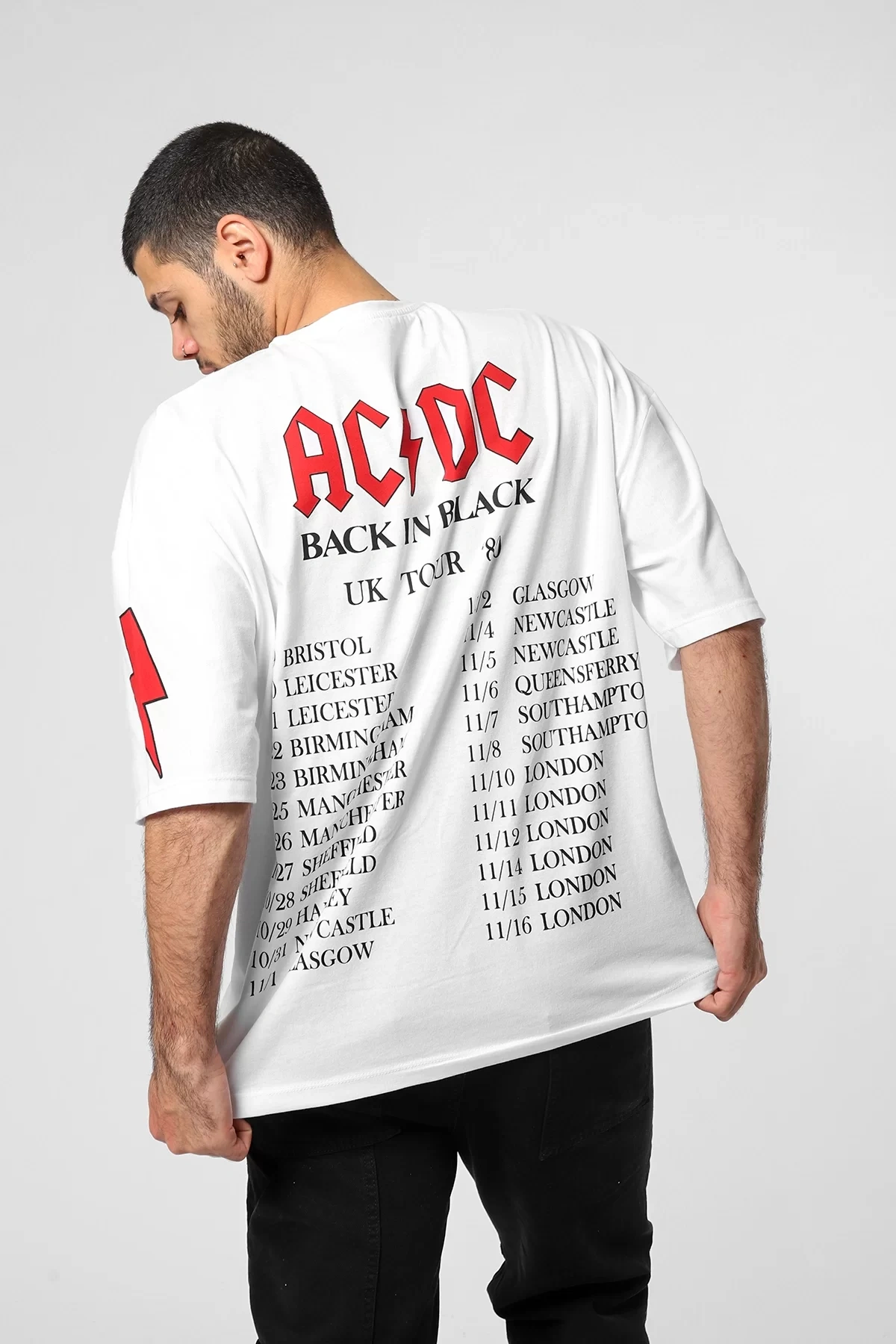 AC DC Sırt Baskılı Unisex Oversize Beyaz Tshirt