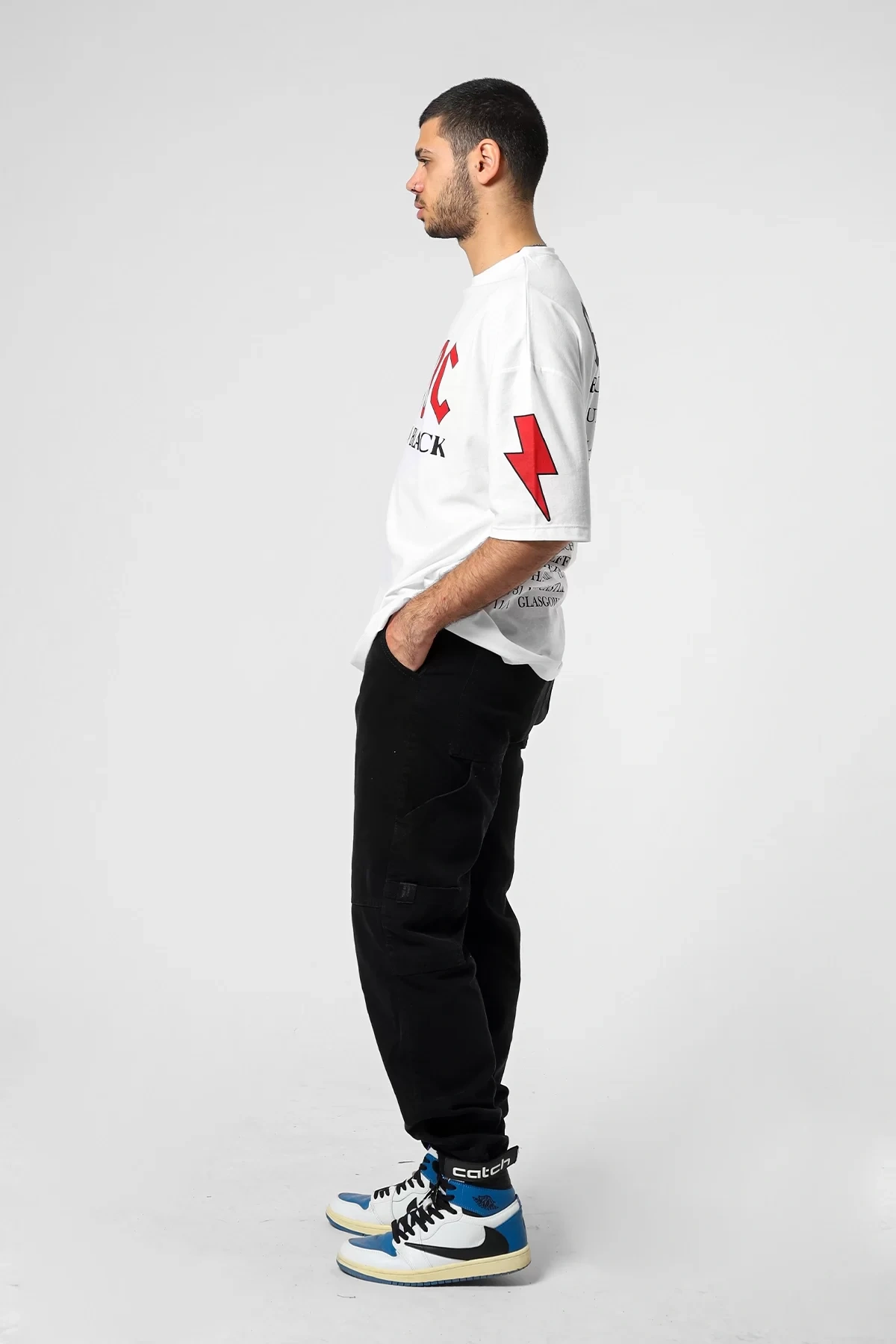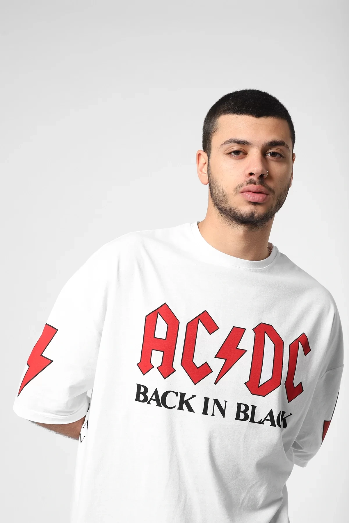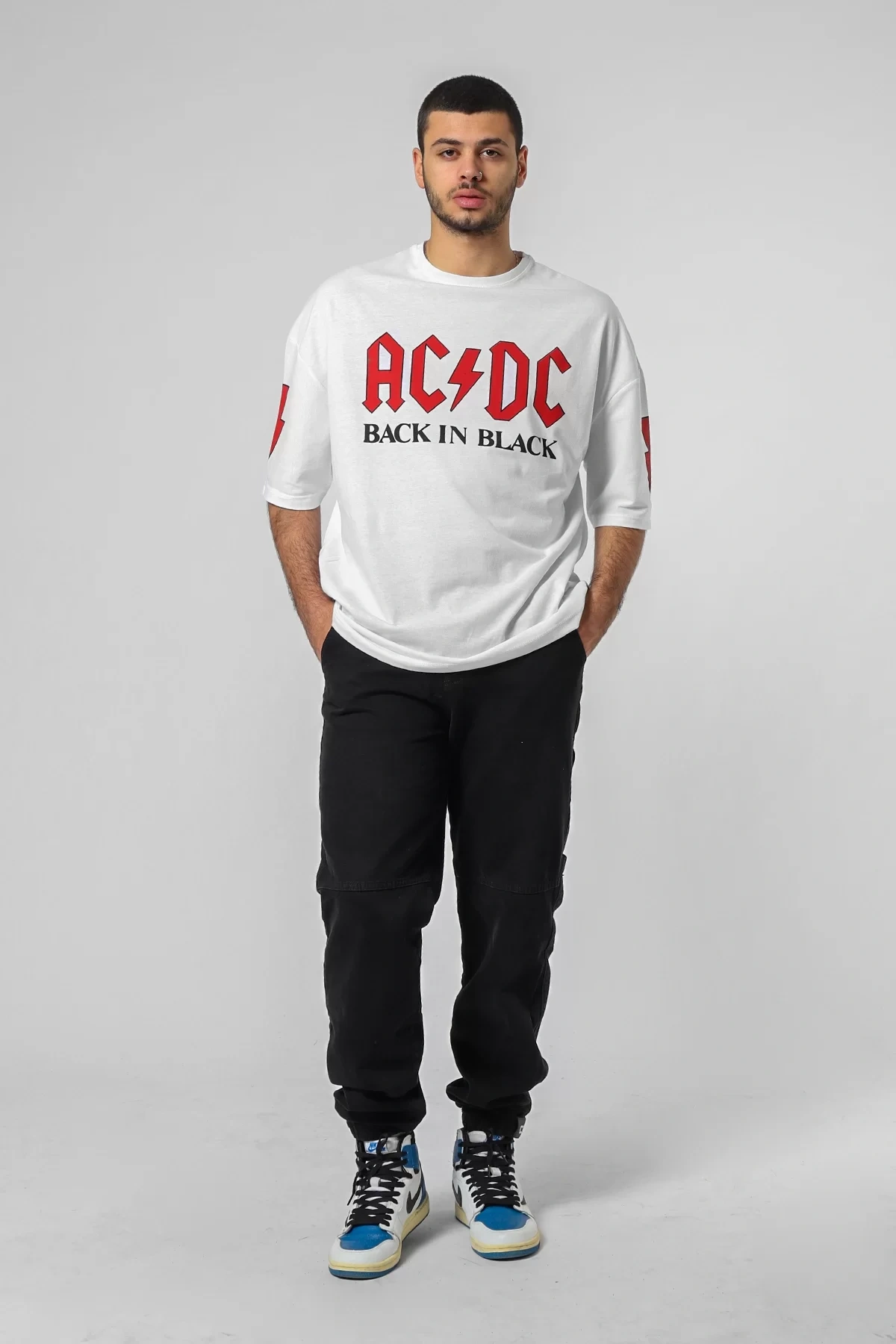 AC DC Sırt Baskılı Unisex Oversize Beyaz Tshirt