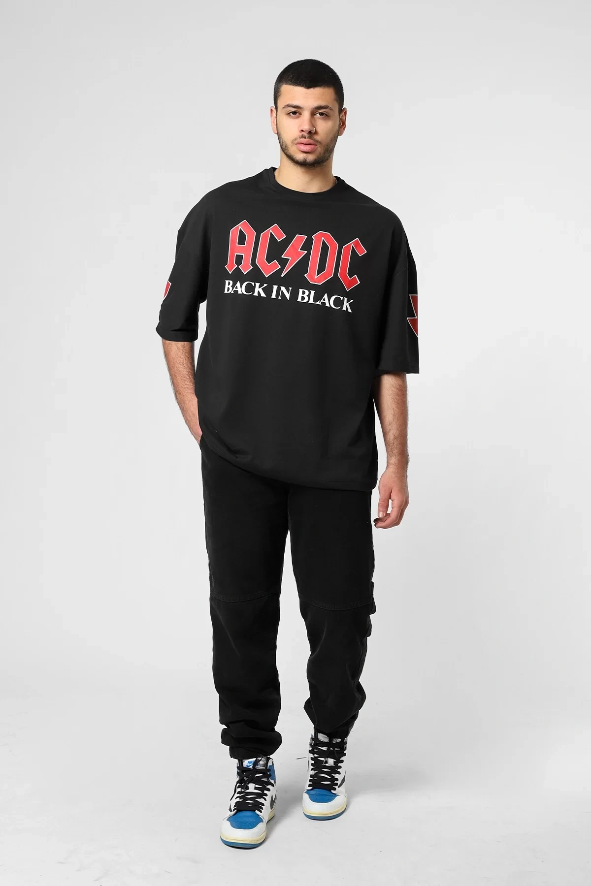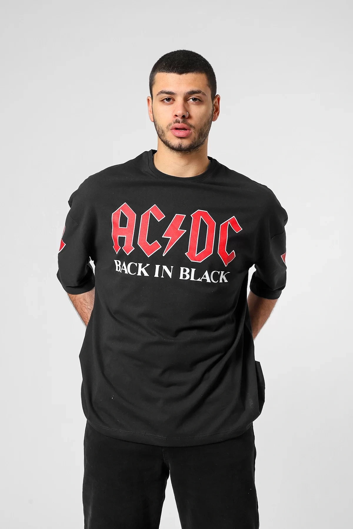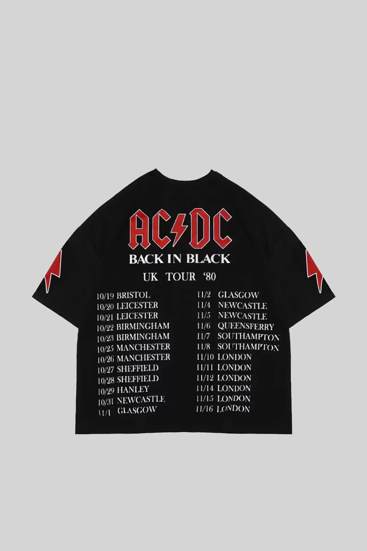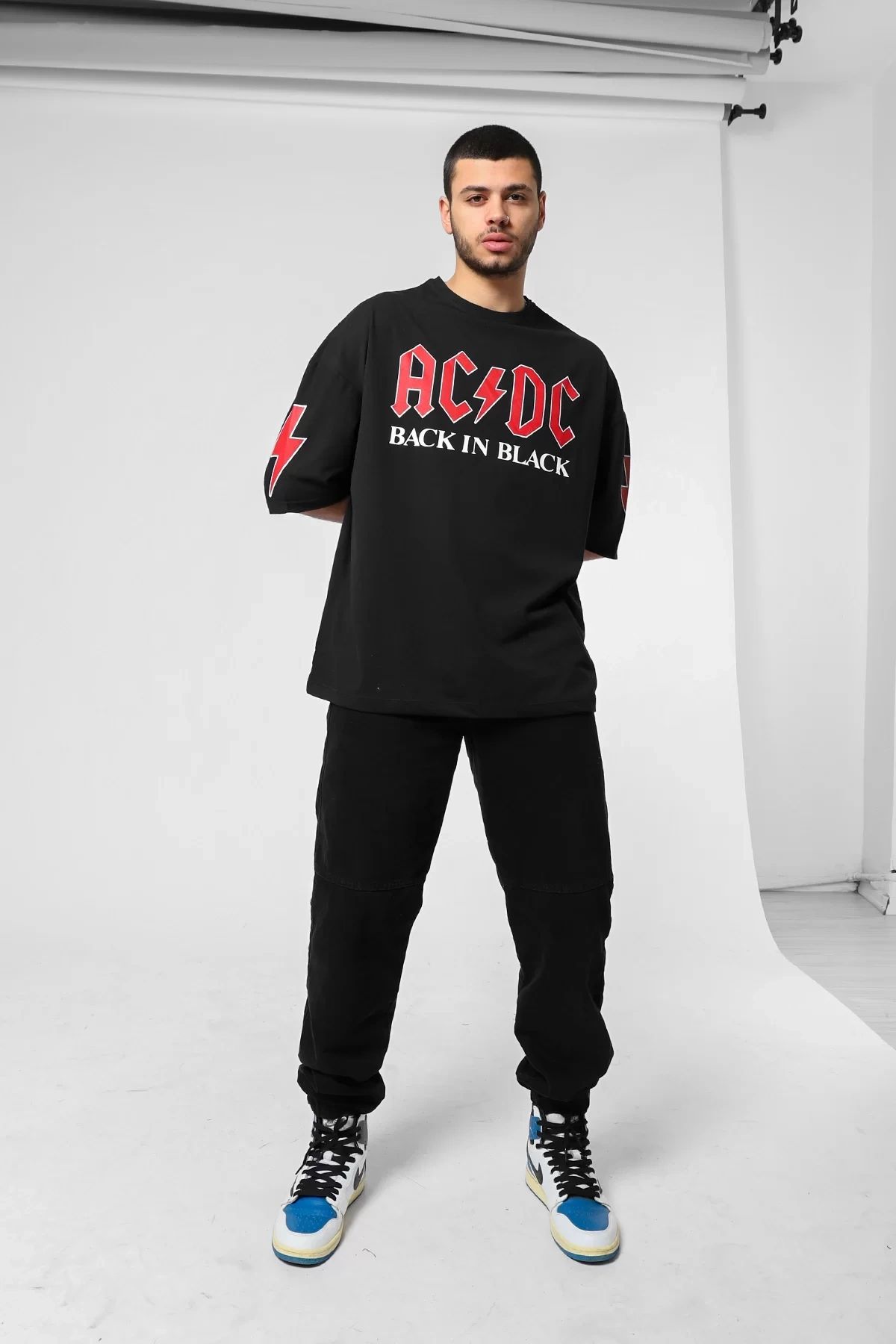 AC DC Sırt Baskılı Unisex Oversize Siyah Tshirt