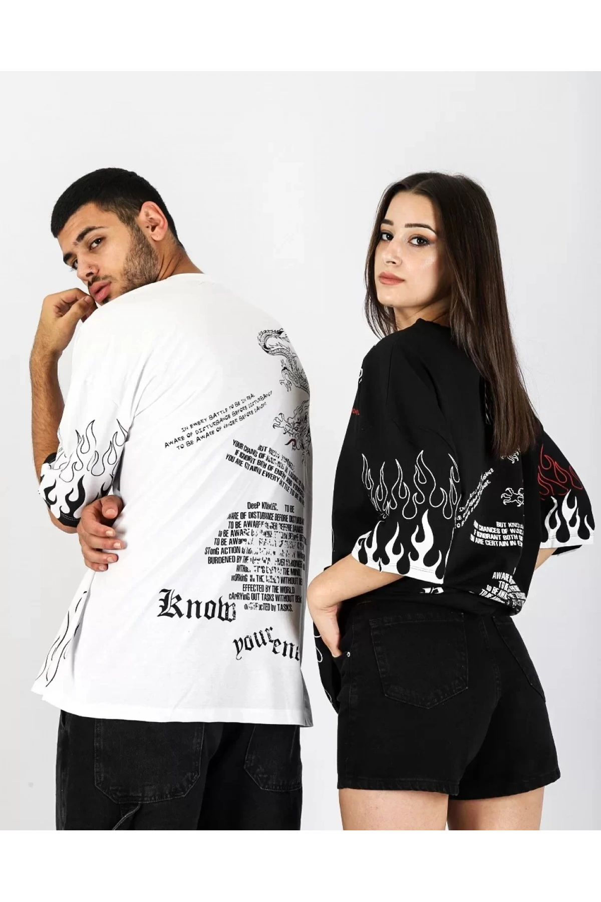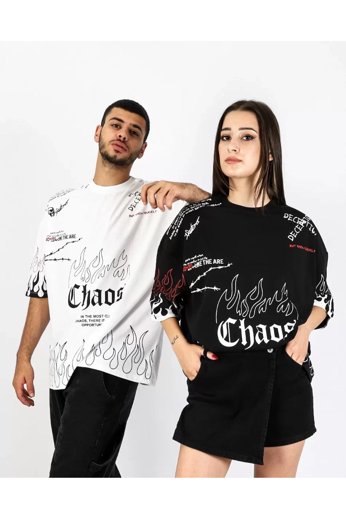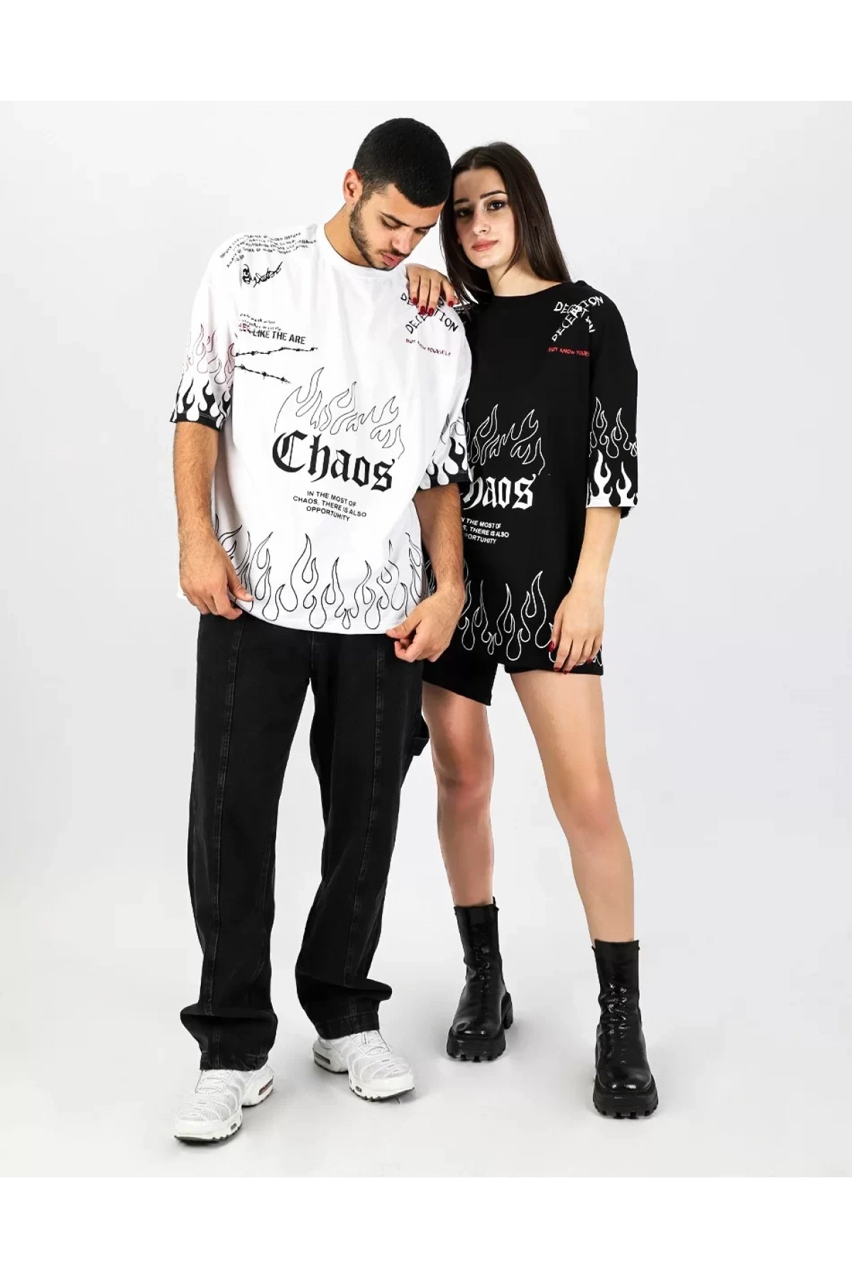 Chaos Karma Baskı Oversize Beyaz Unisex Tshirt