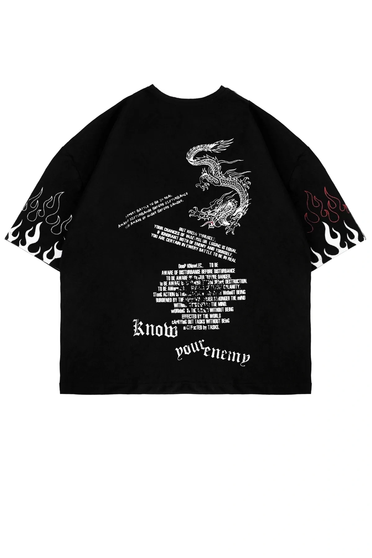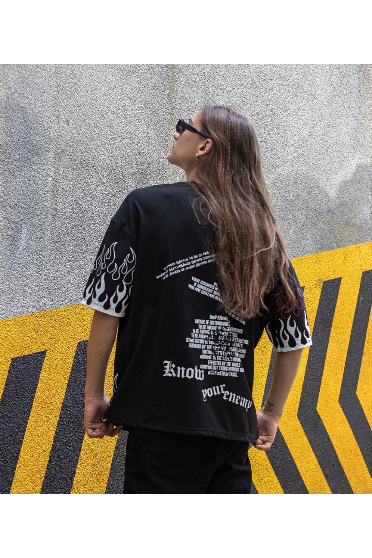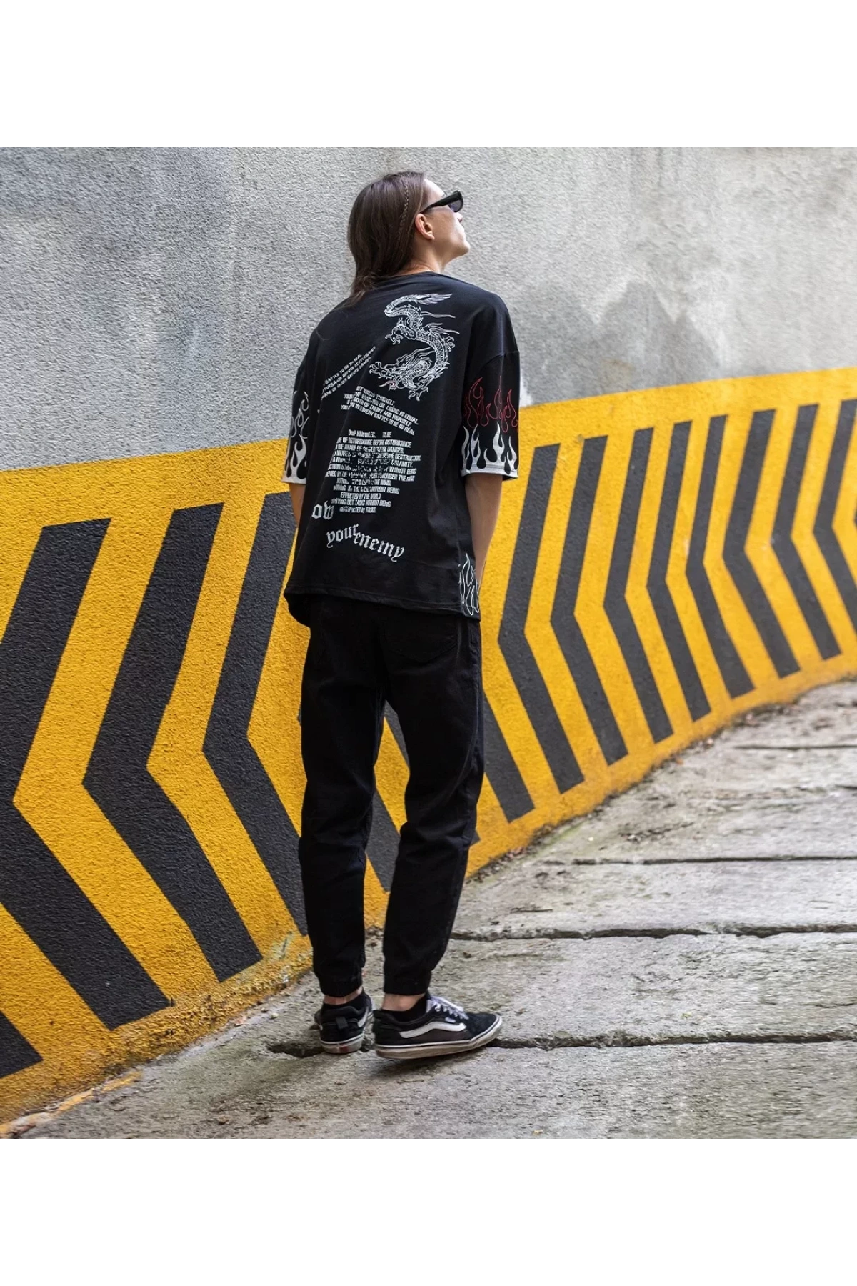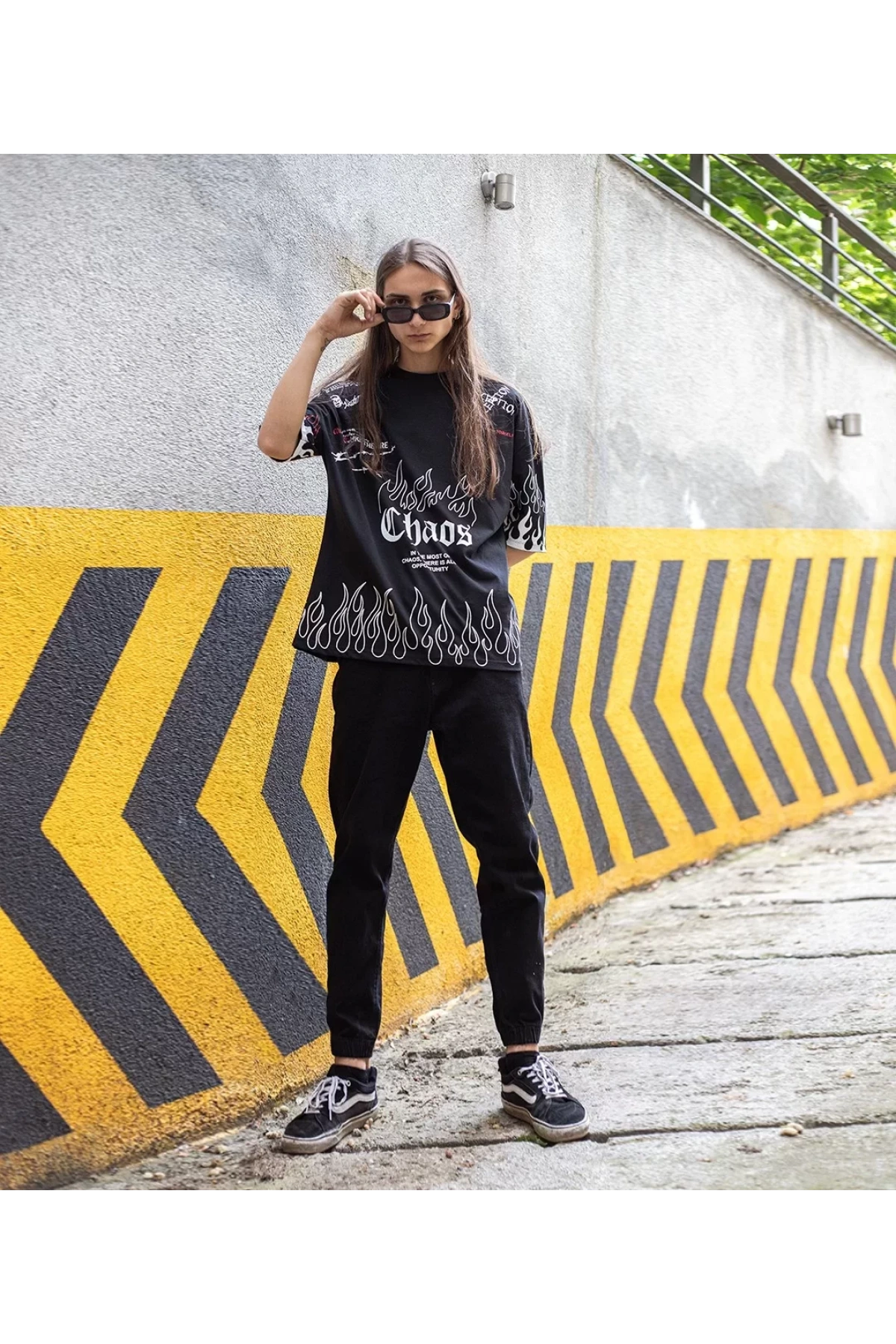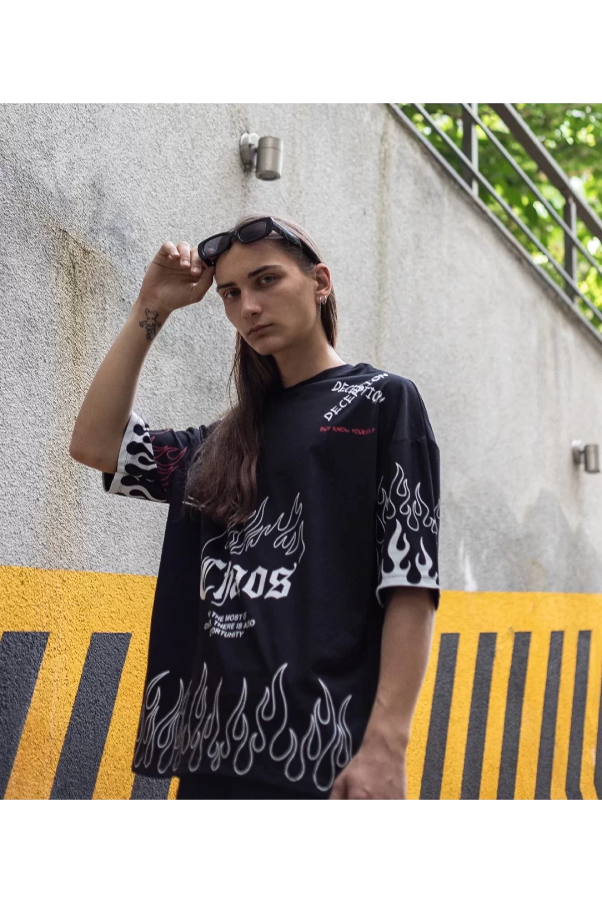 Chaos Karma Baskı Oversize Siyah Unisex Tshirt