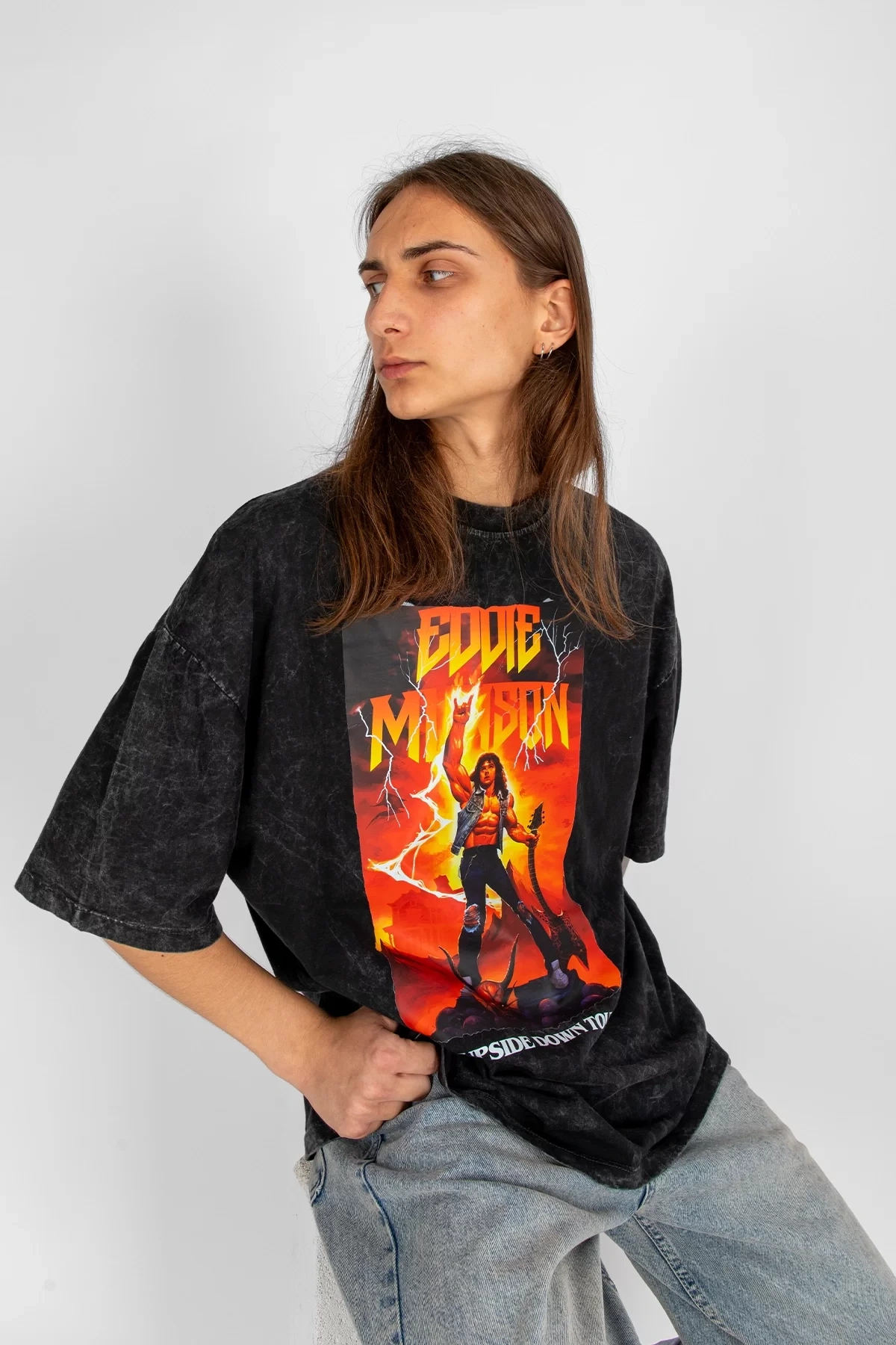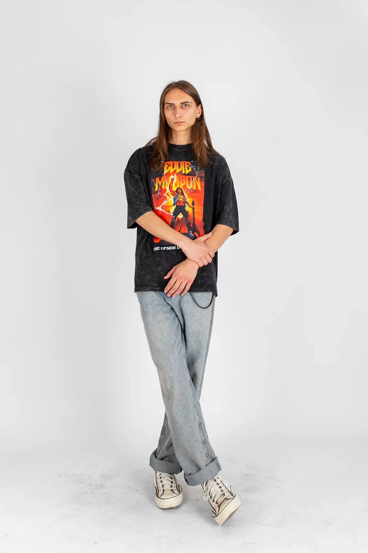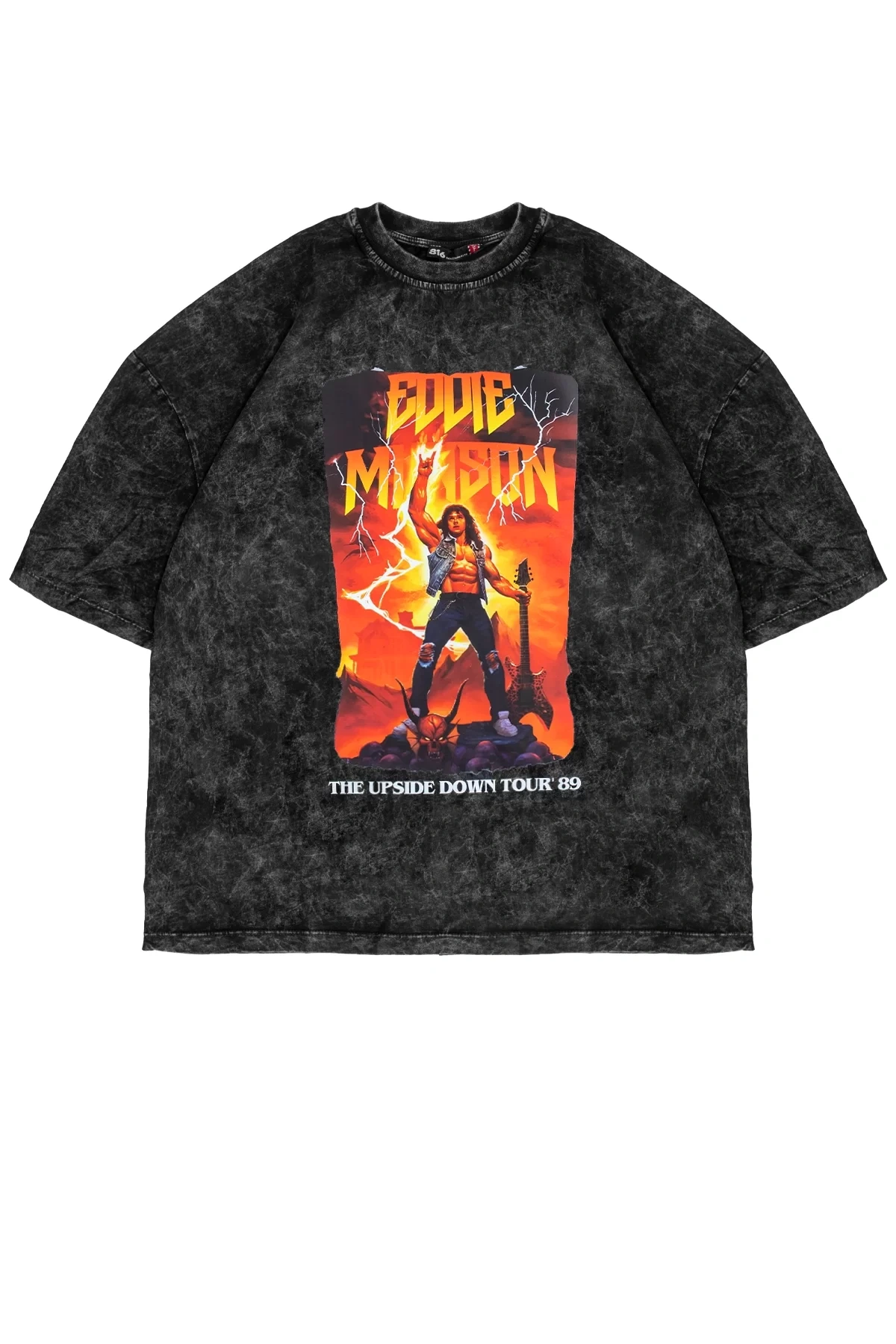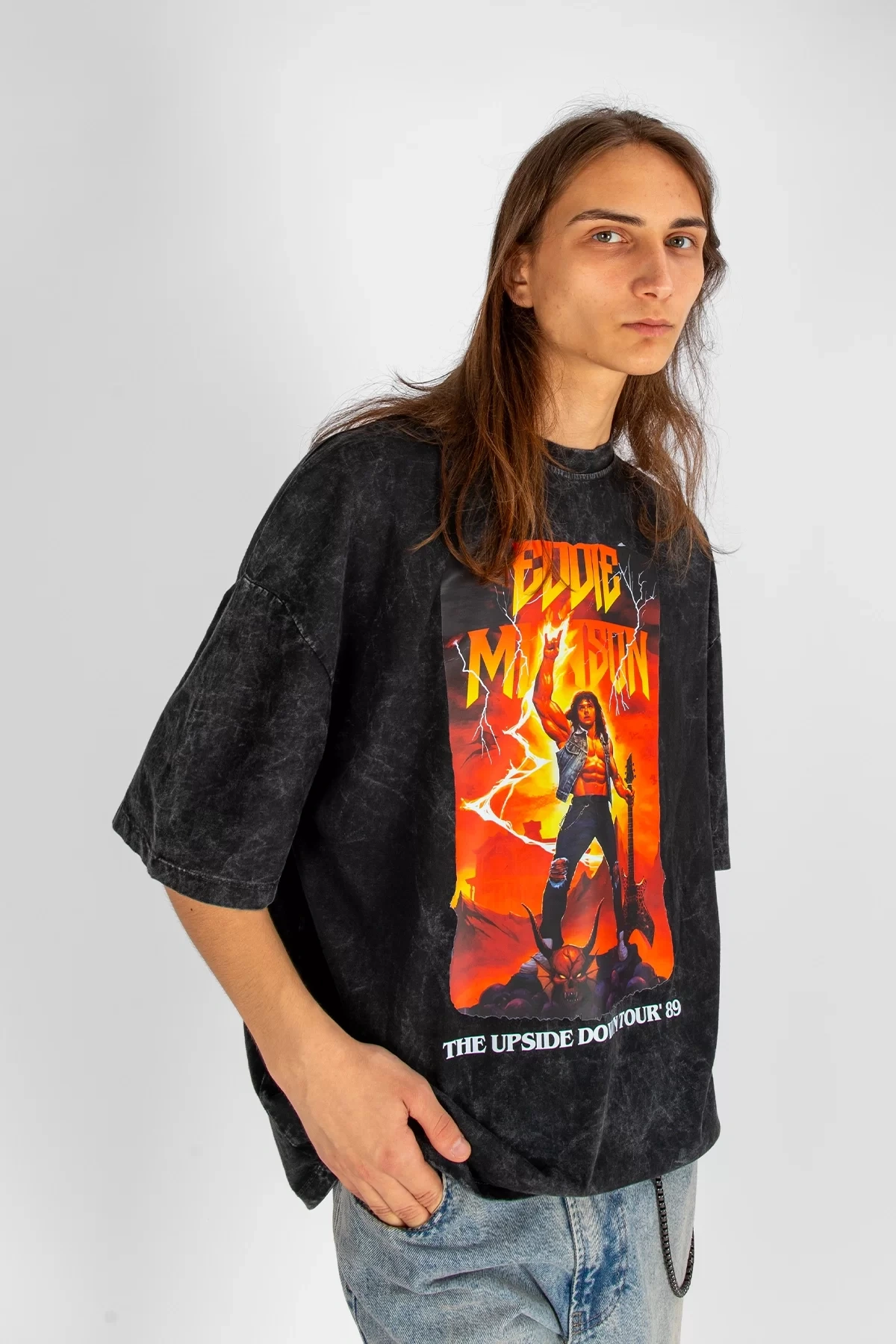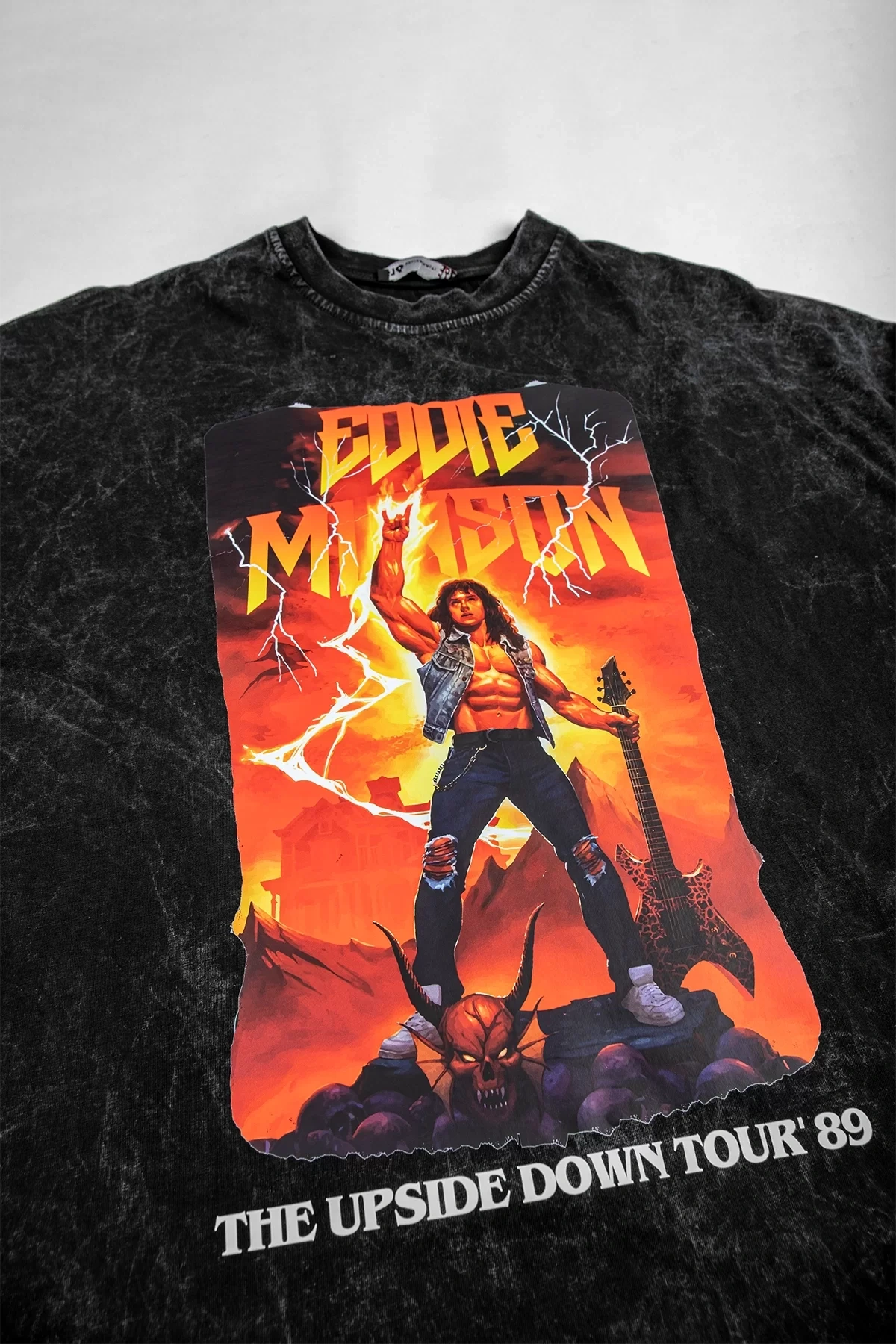 Eddie Munson Baskılı Füme Yıkamalı Oversize Unisex Tshirt