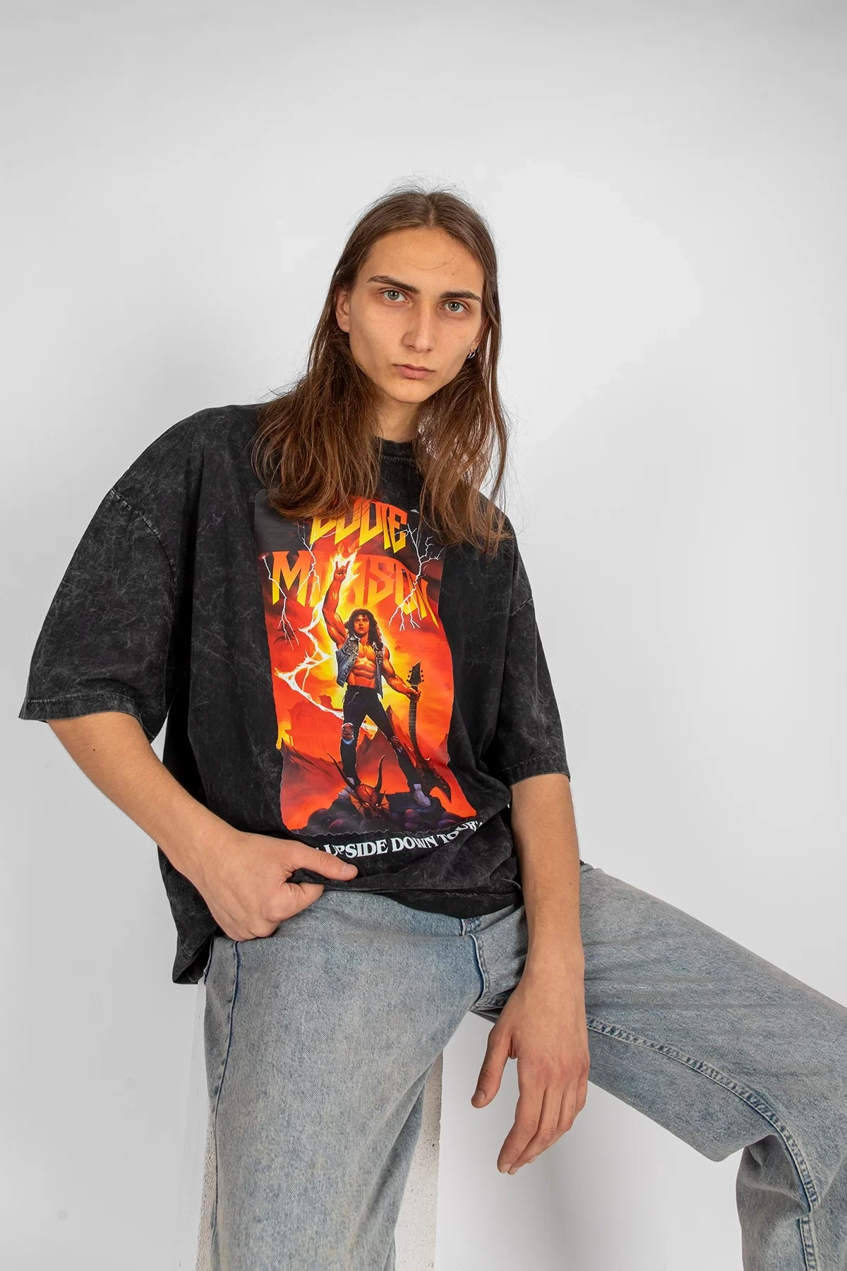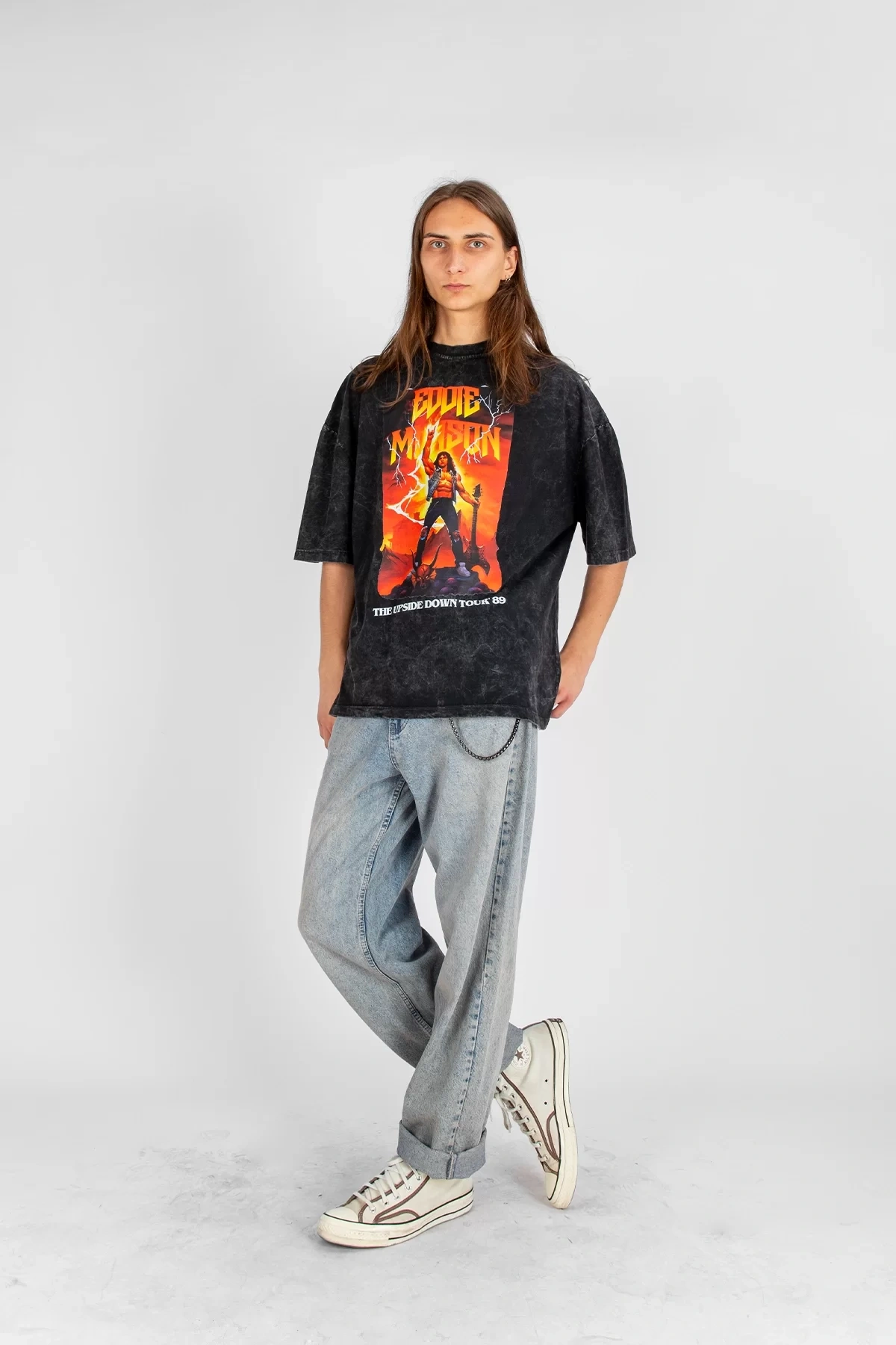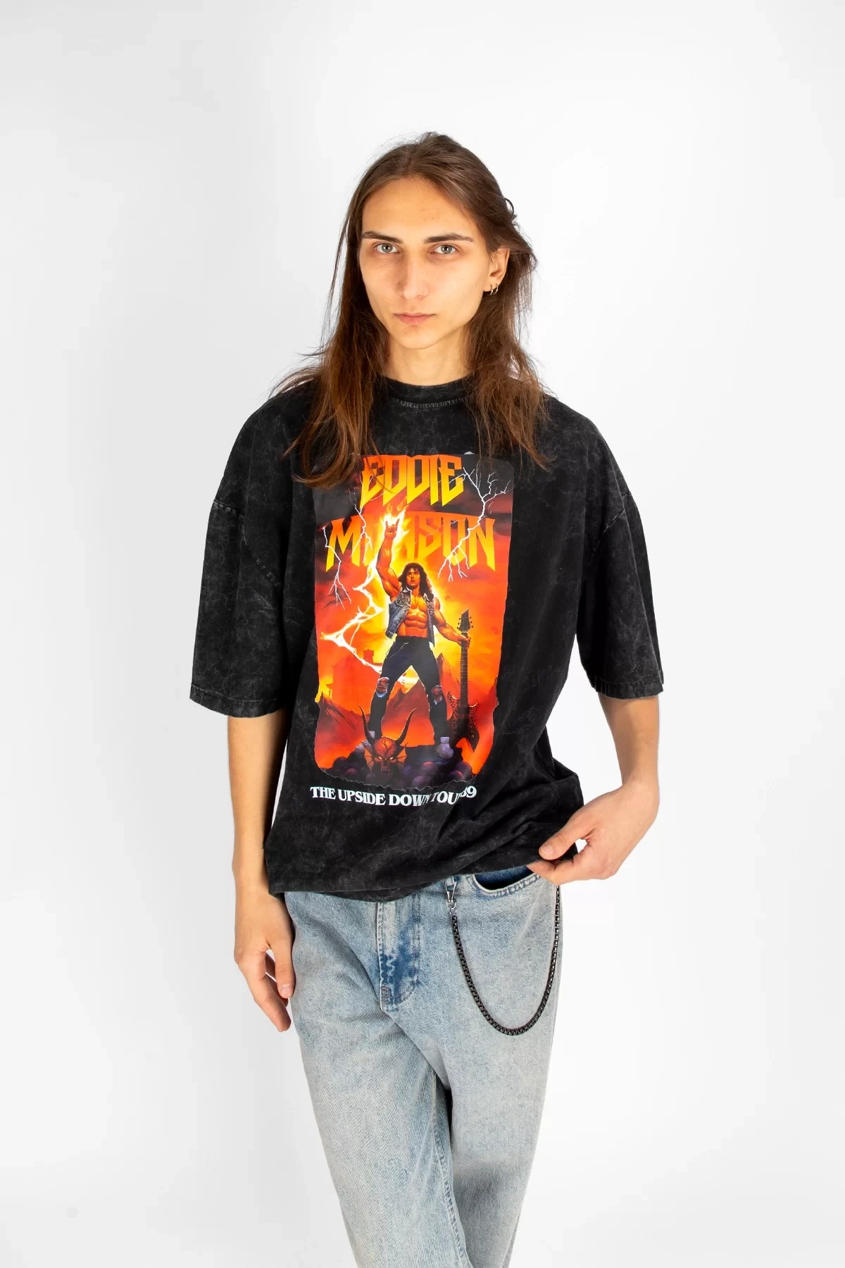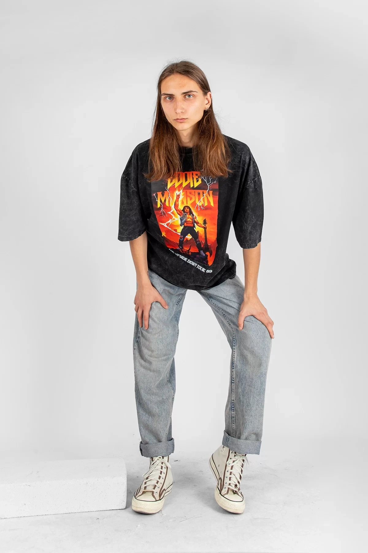 Eddie Munson Baskılı Füme Yıkamalı Oversize Unisex Tshirt