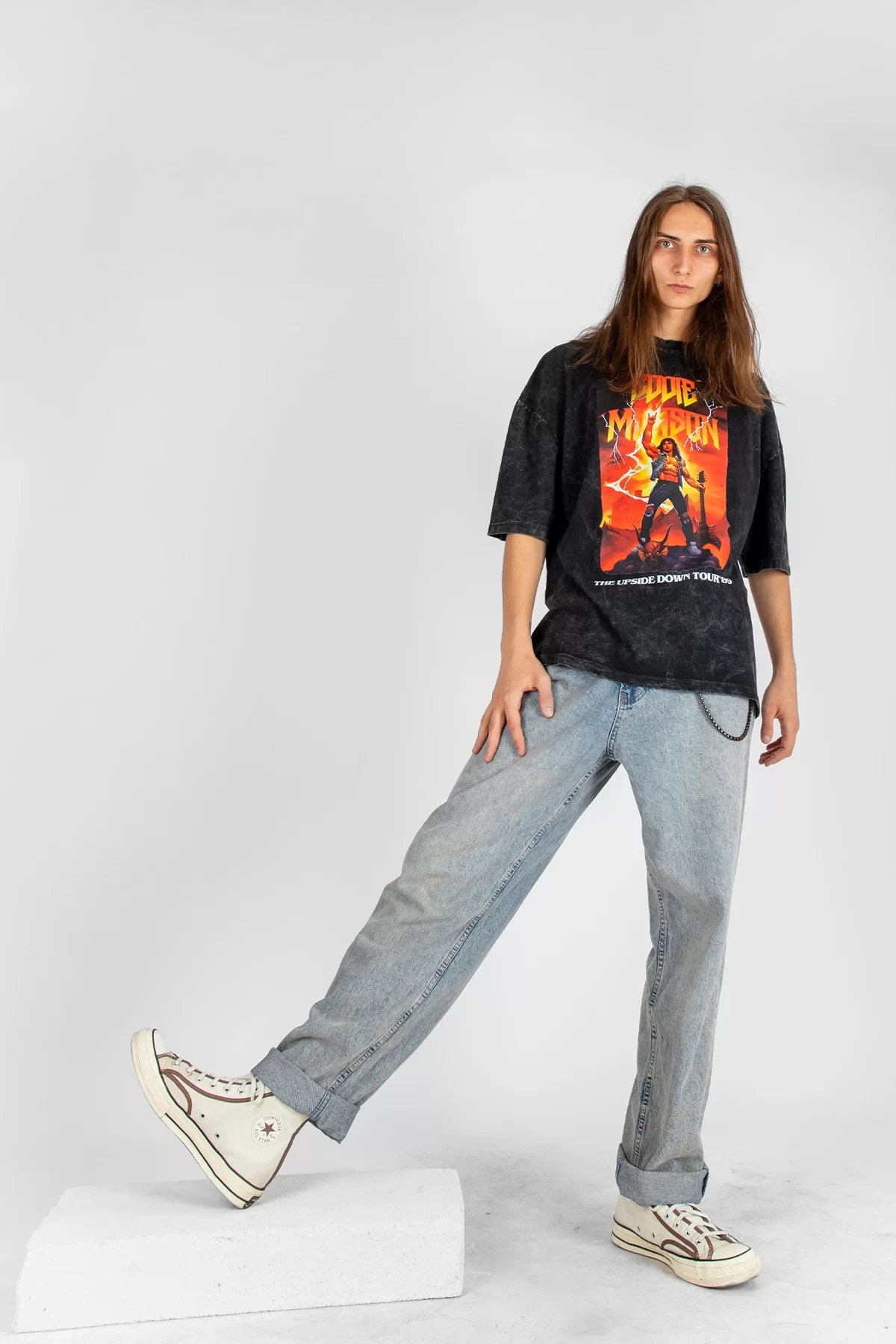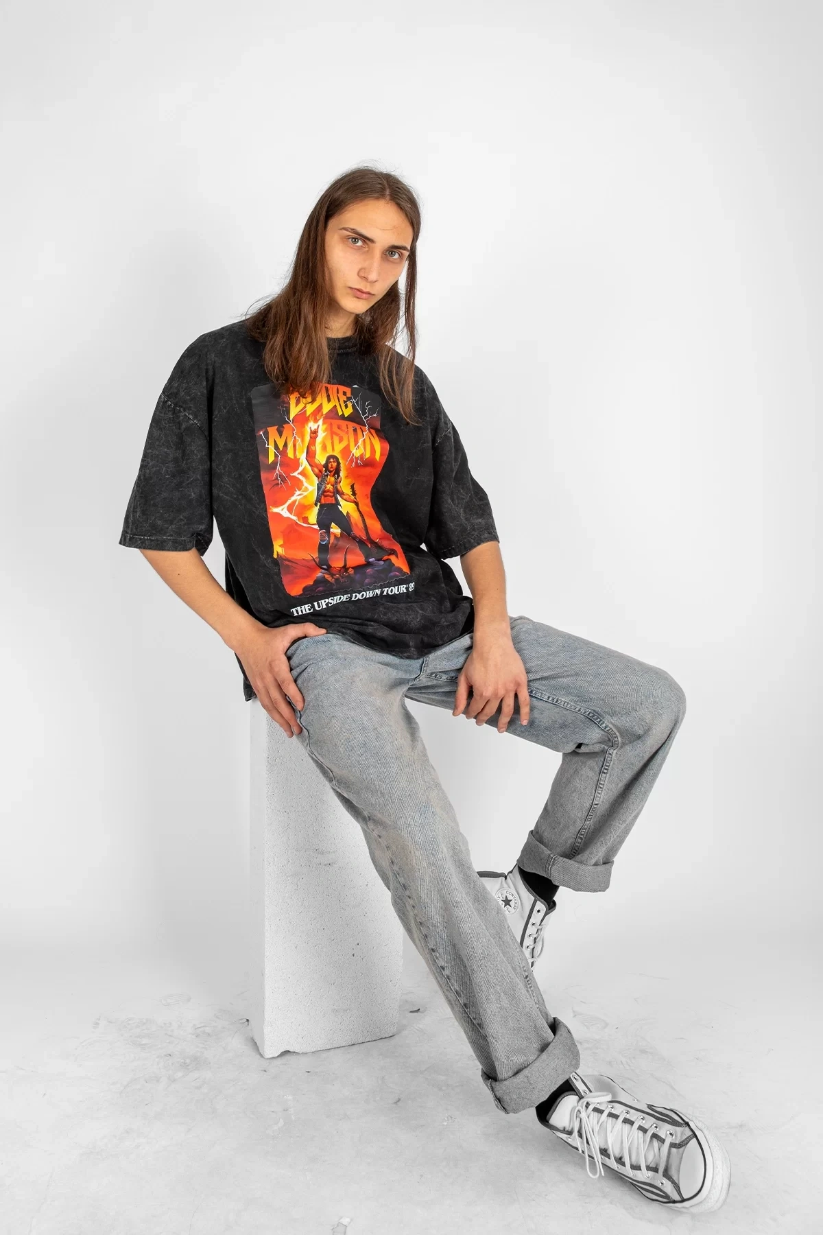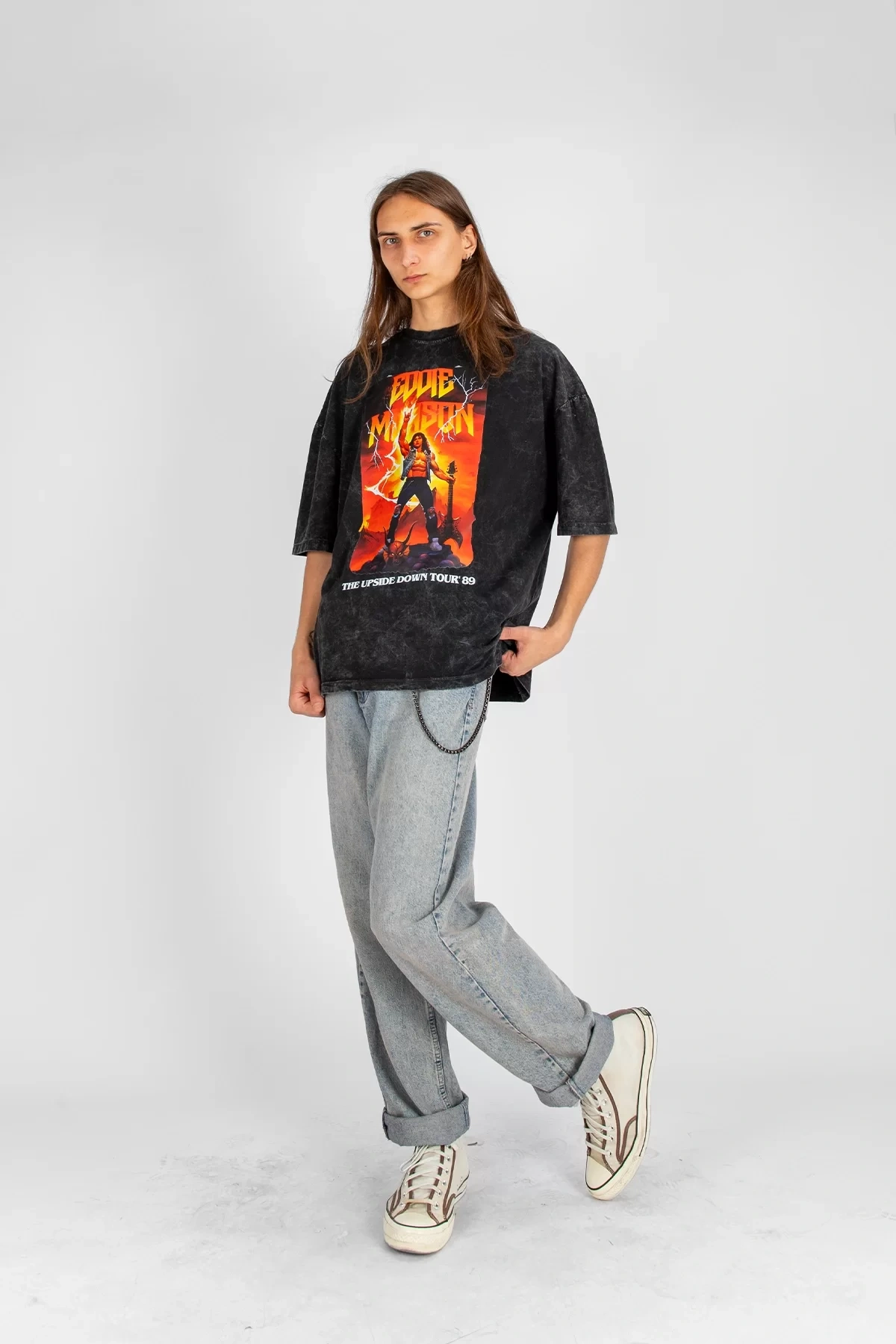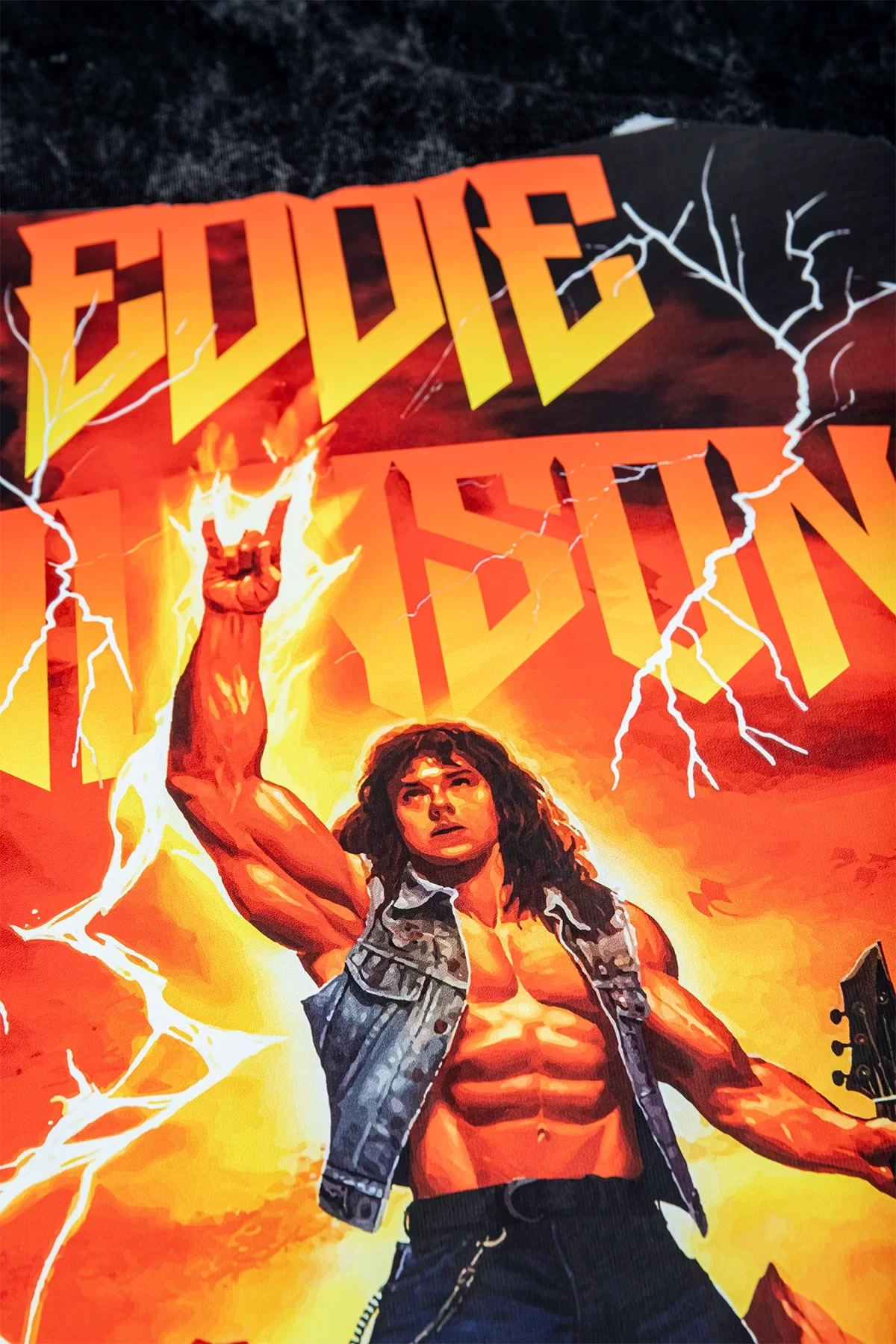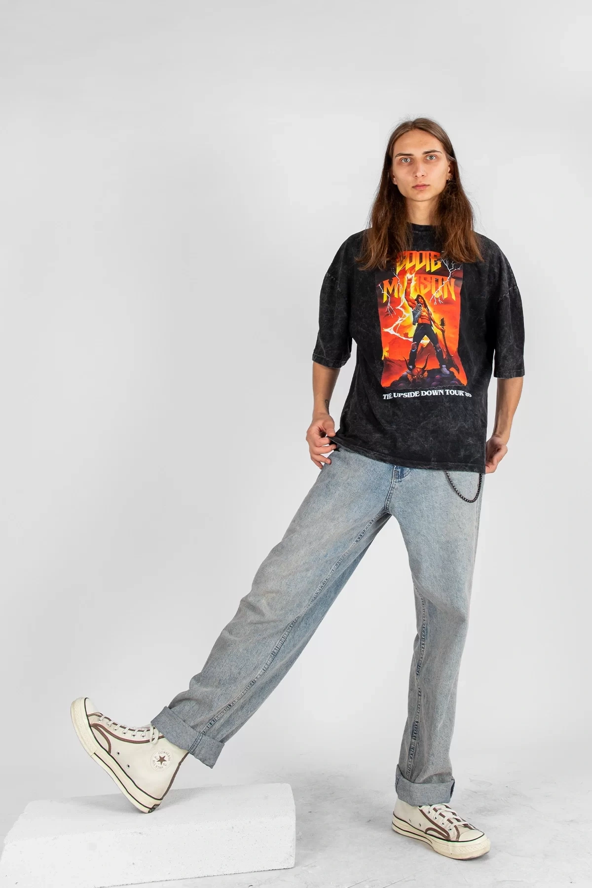 Eddie Munson Baskılı Füme Yıkamalı Oversize Unisex Tshirt