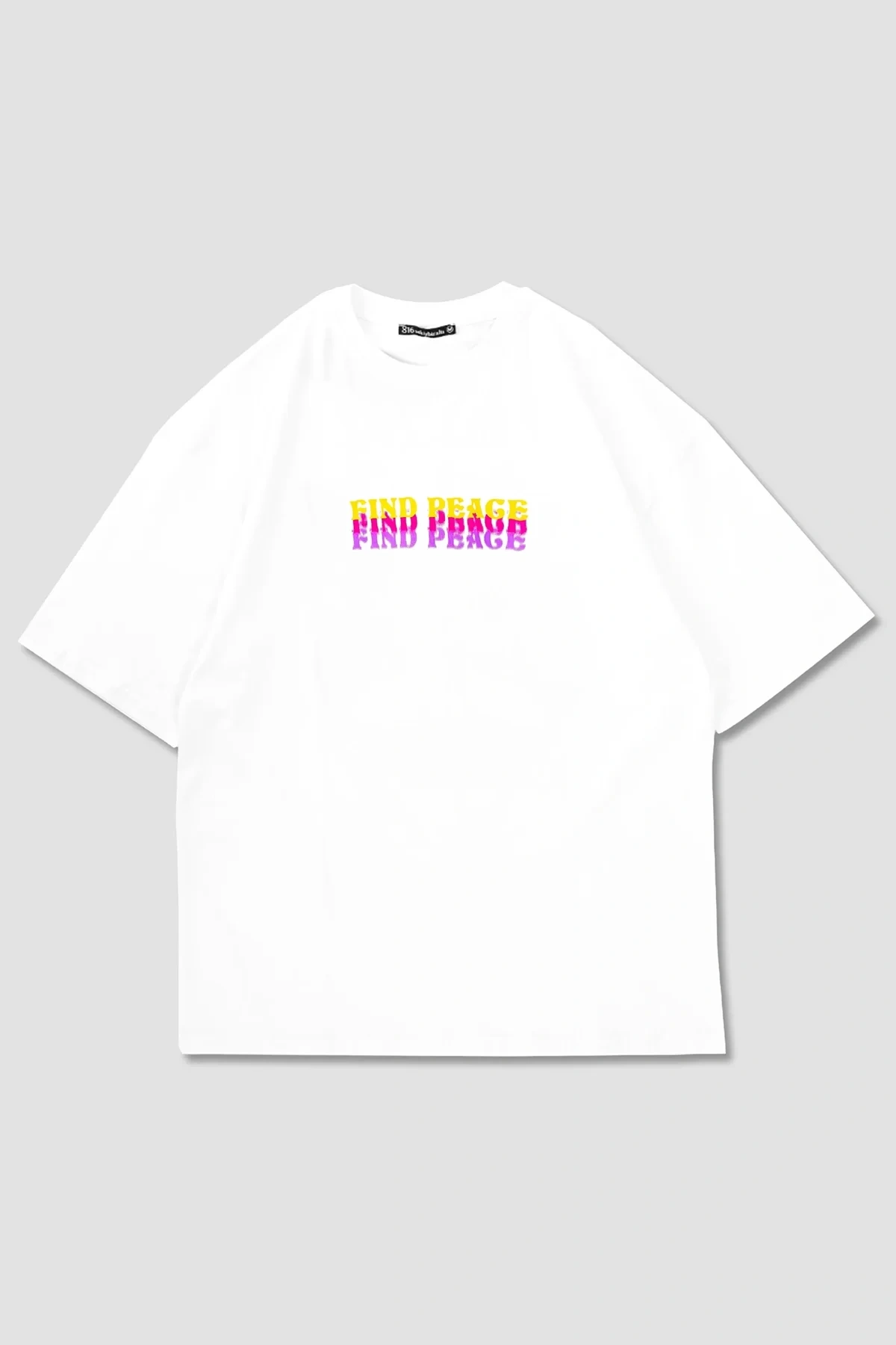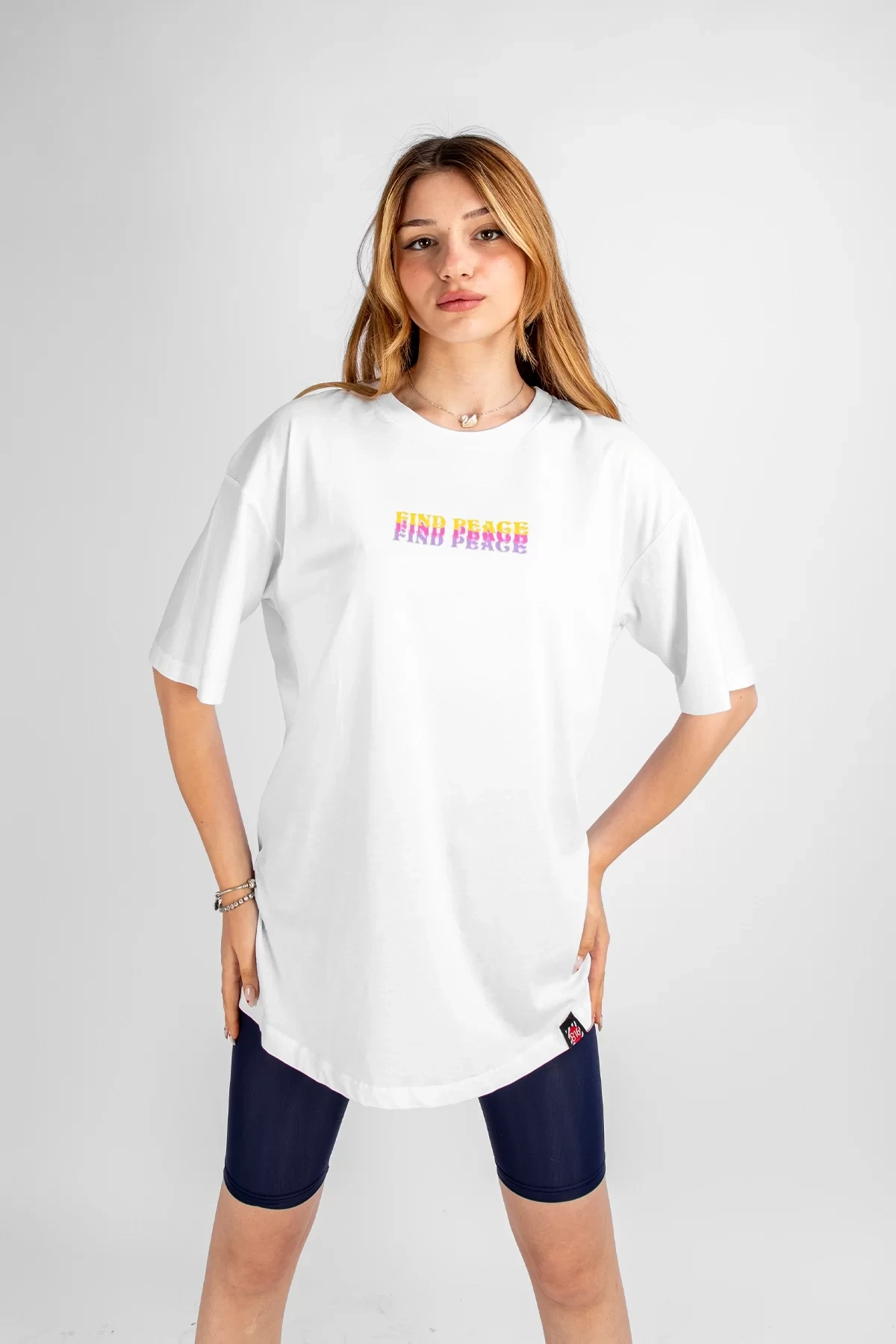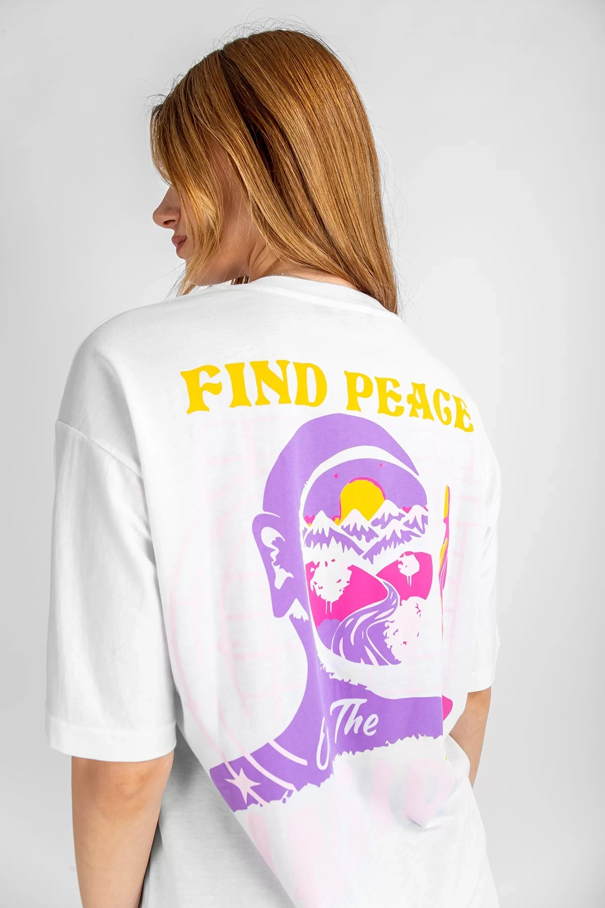 Find Peace Baskılı Beyaz Oversize Unisex Tshirt
