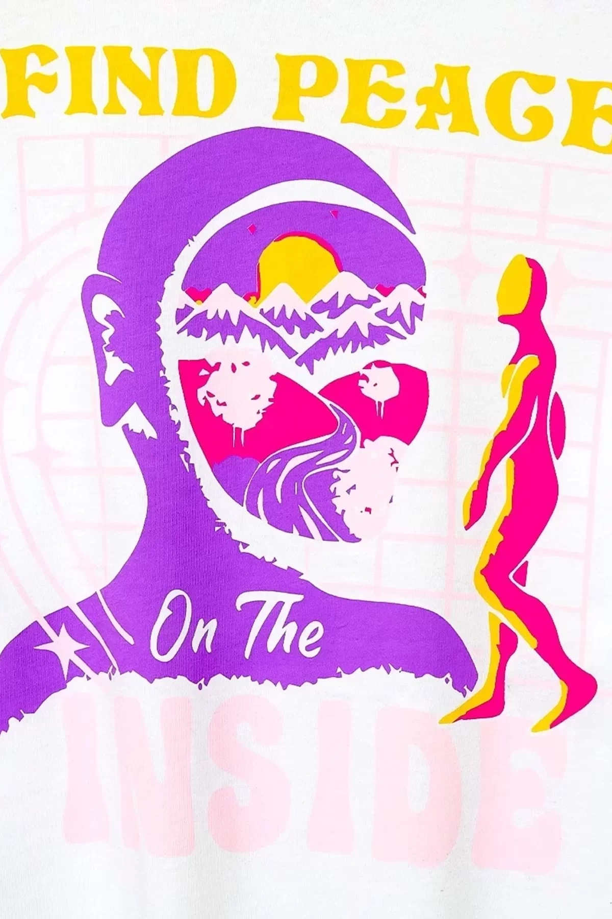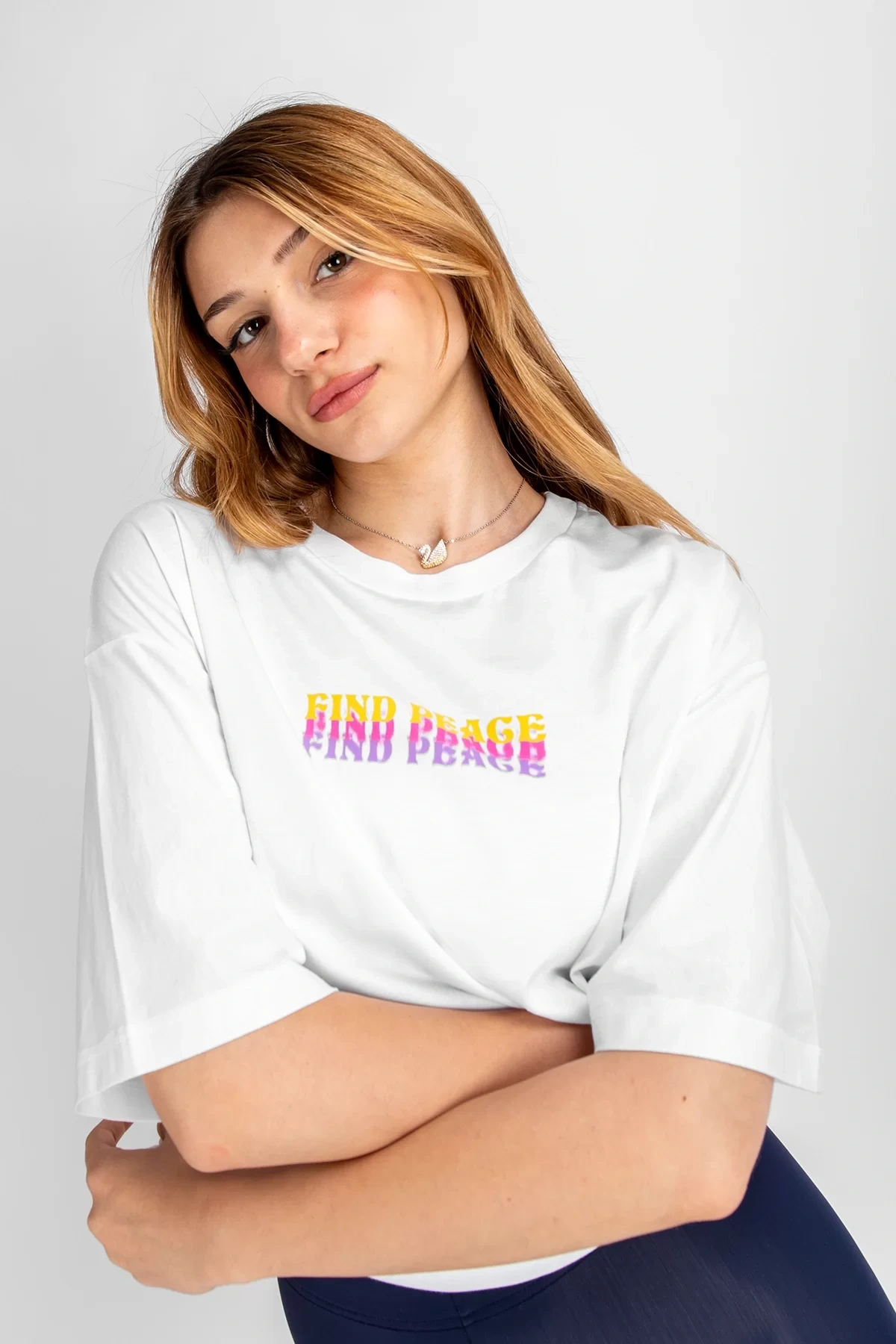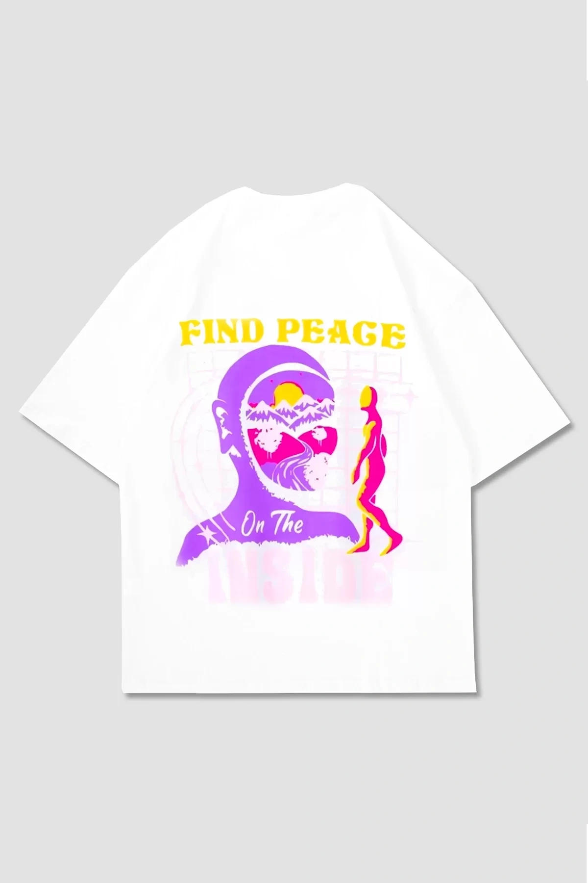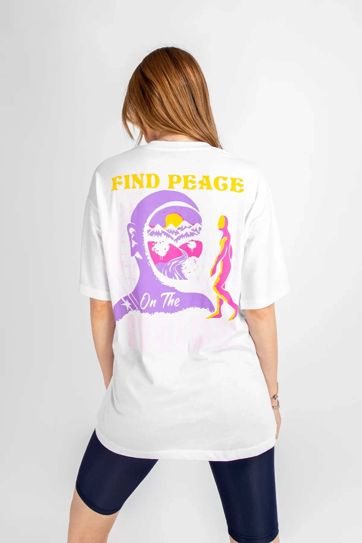 Find Peace Baskılı Beyaz Oversize Unisex Tshirt