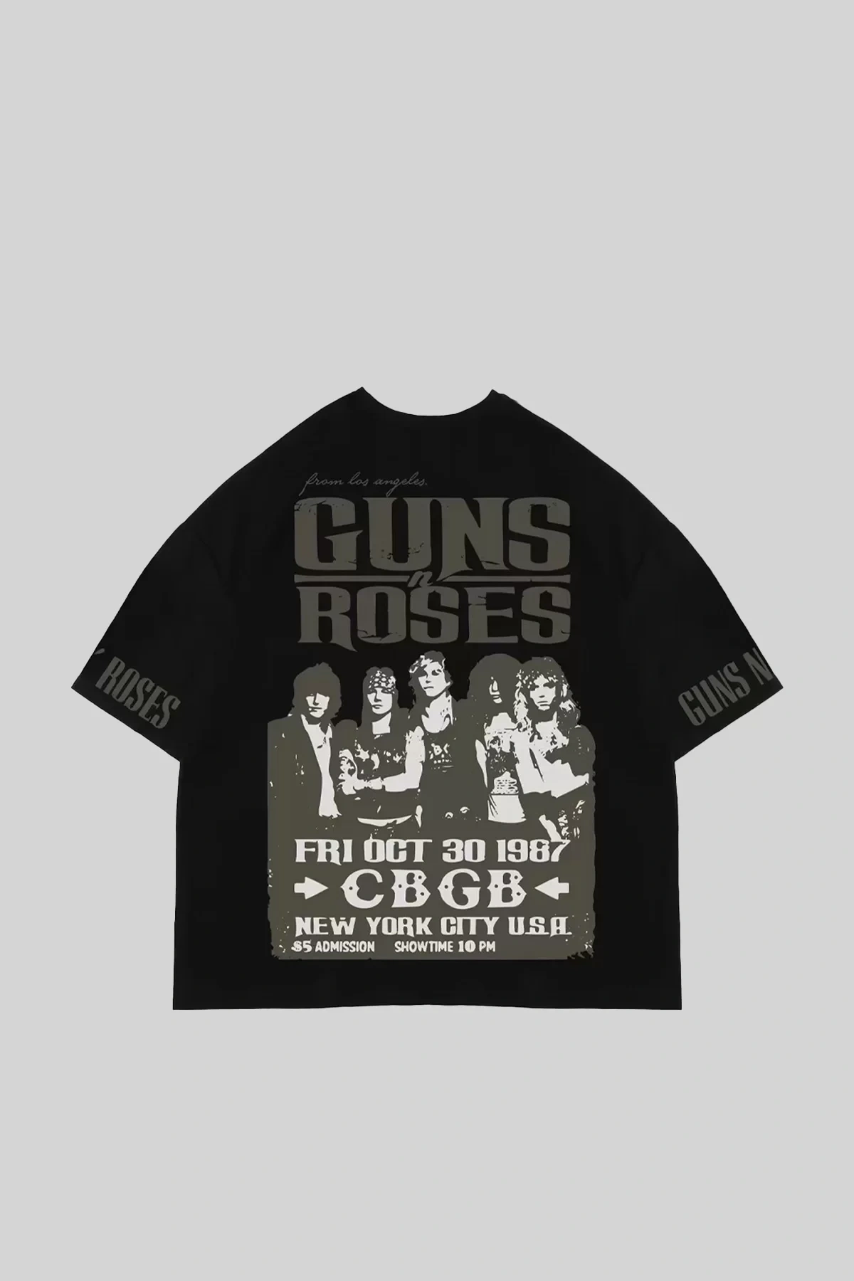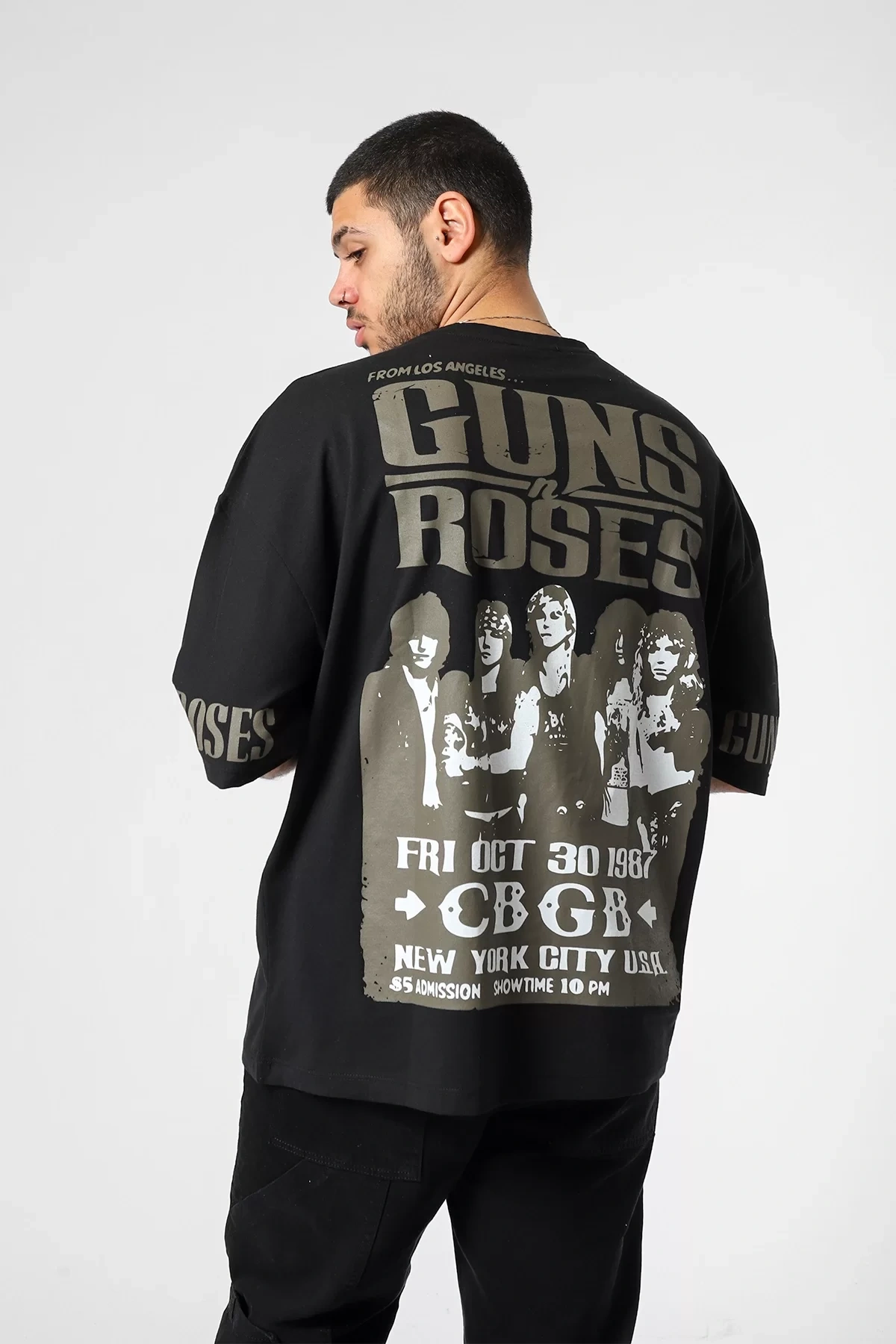 Guns N Roses Sırt Baskılı Unisex Oversize Siyah Tshirt