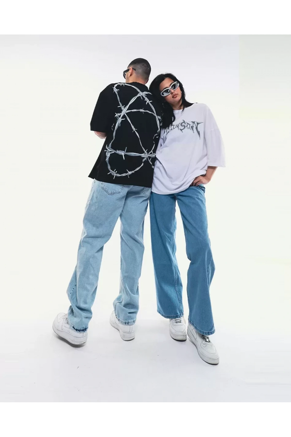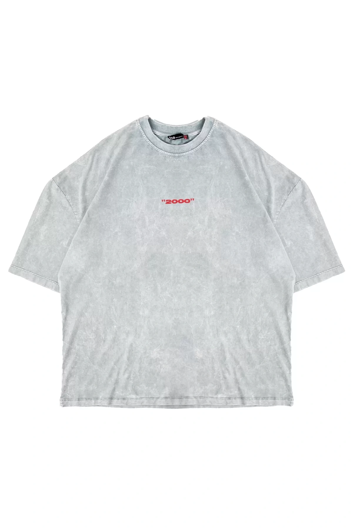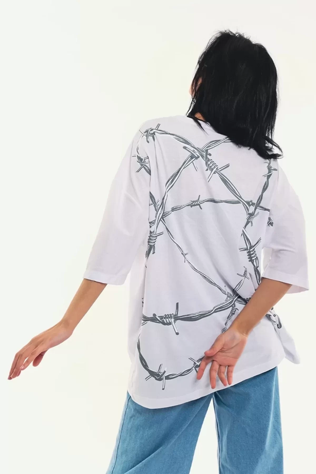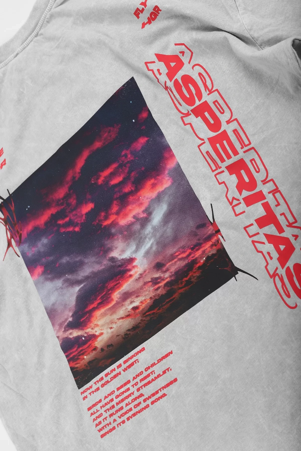 Yıkamalı Beyaz Asperitas Sırt Baskılı Oversize Unisex Tshirt