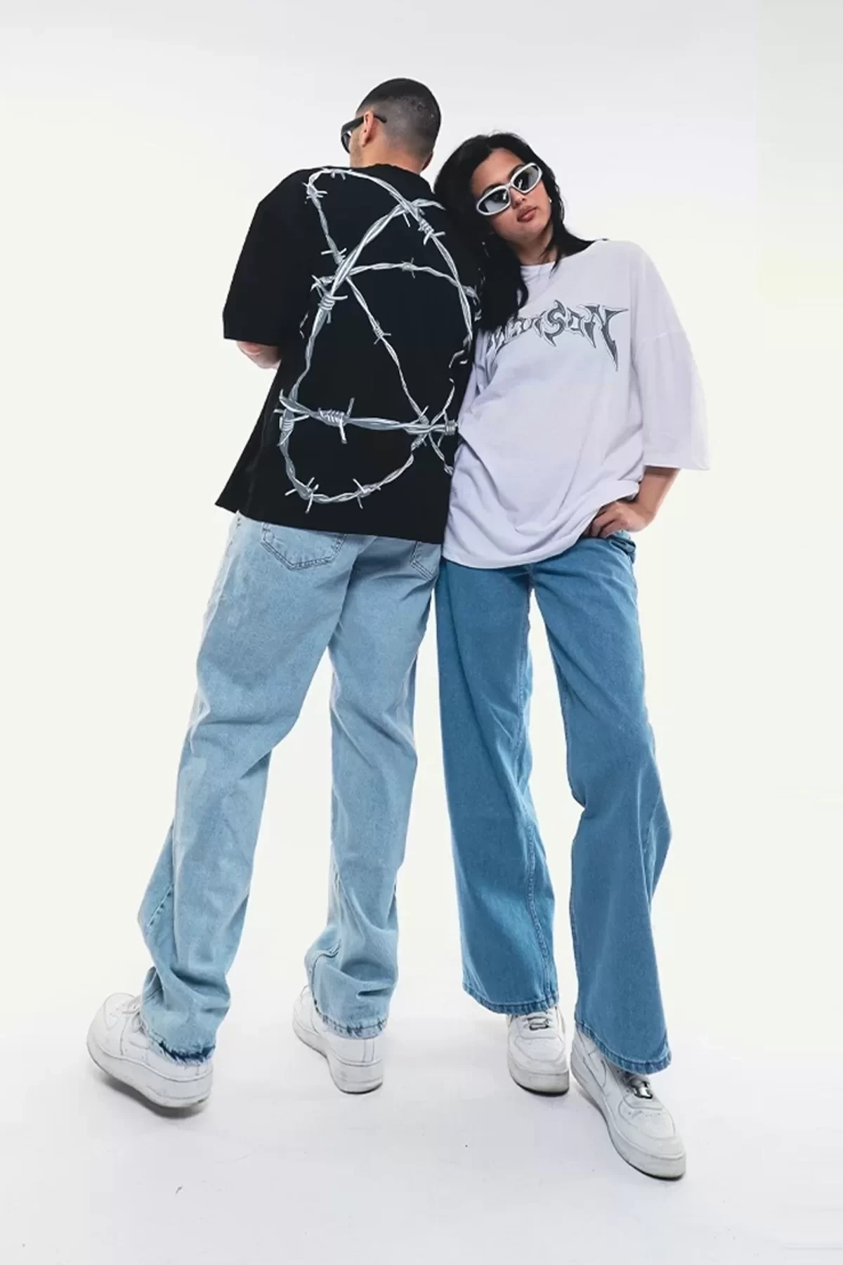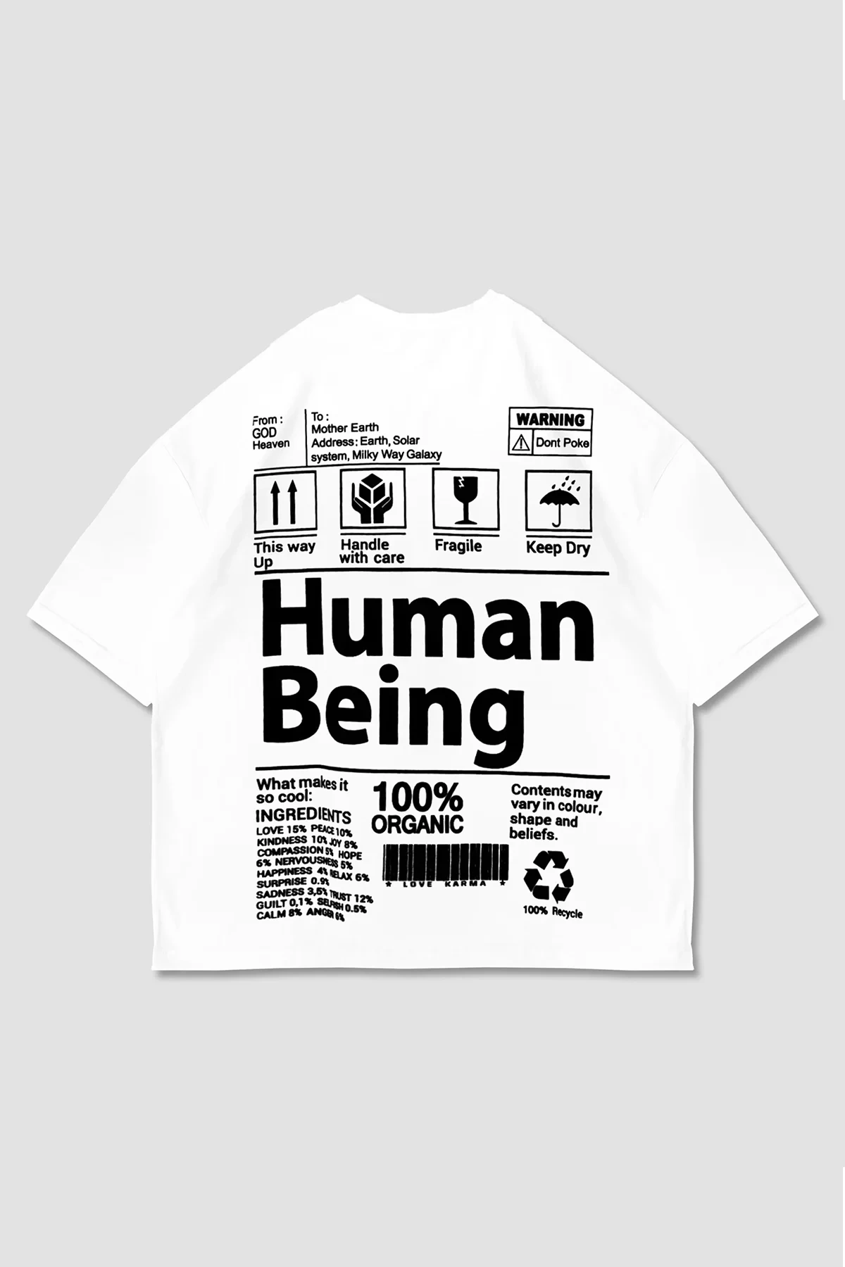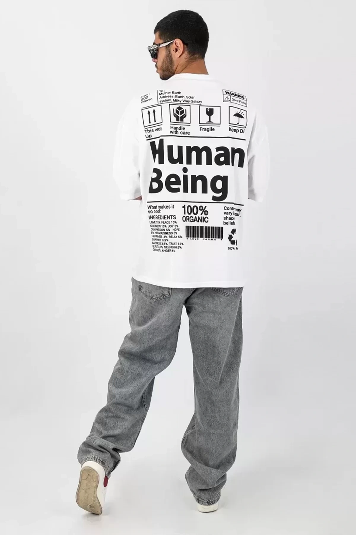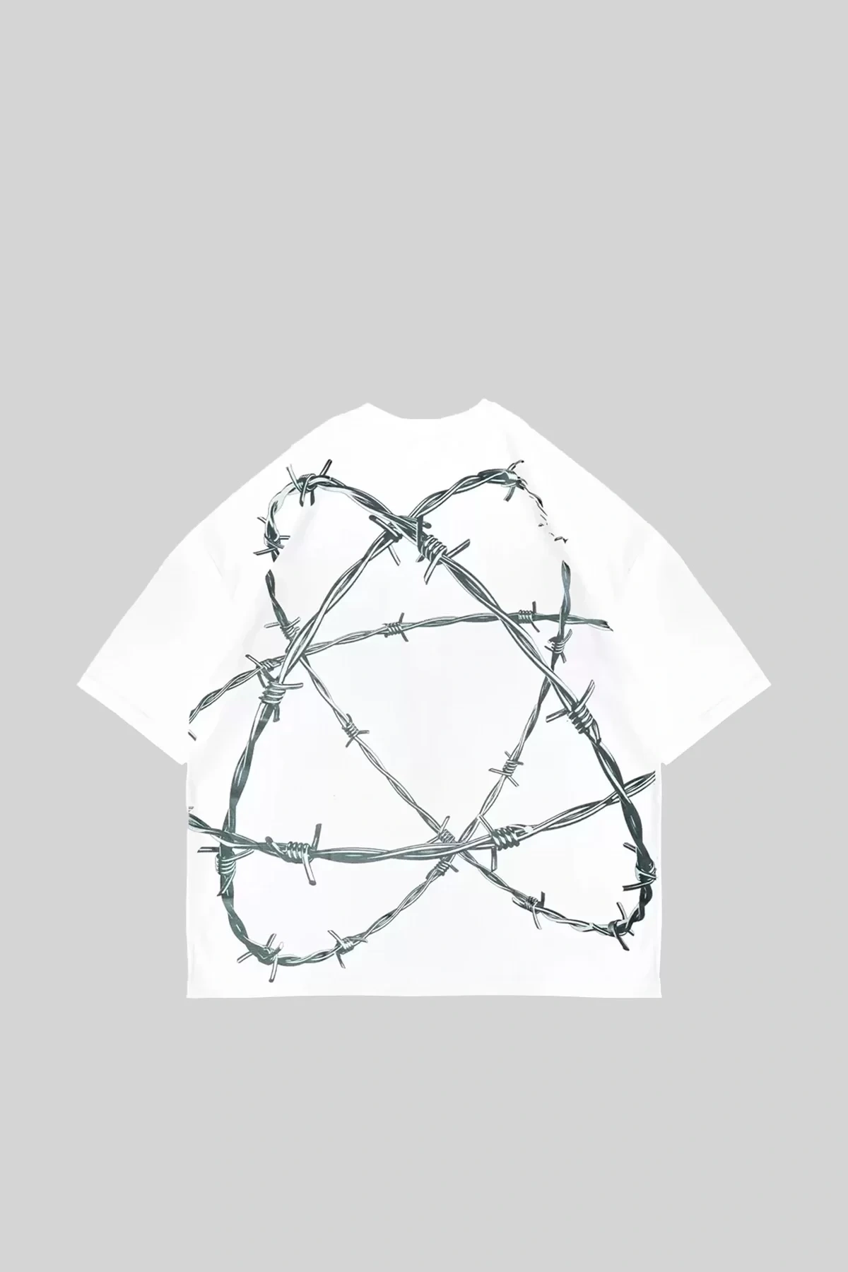 Yıkamalı Beyaz Asperitas Sırt Baskılı Oversize Unisex Tshirt