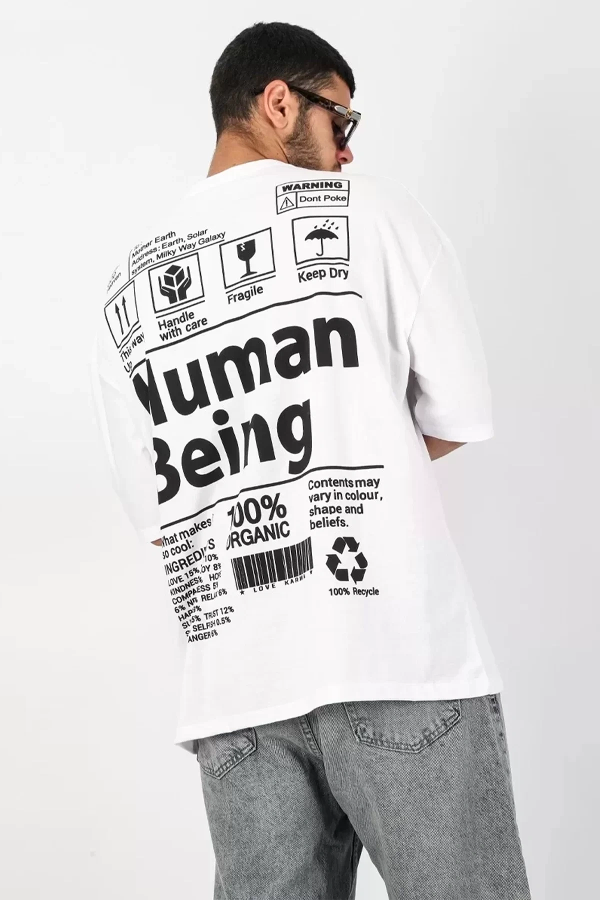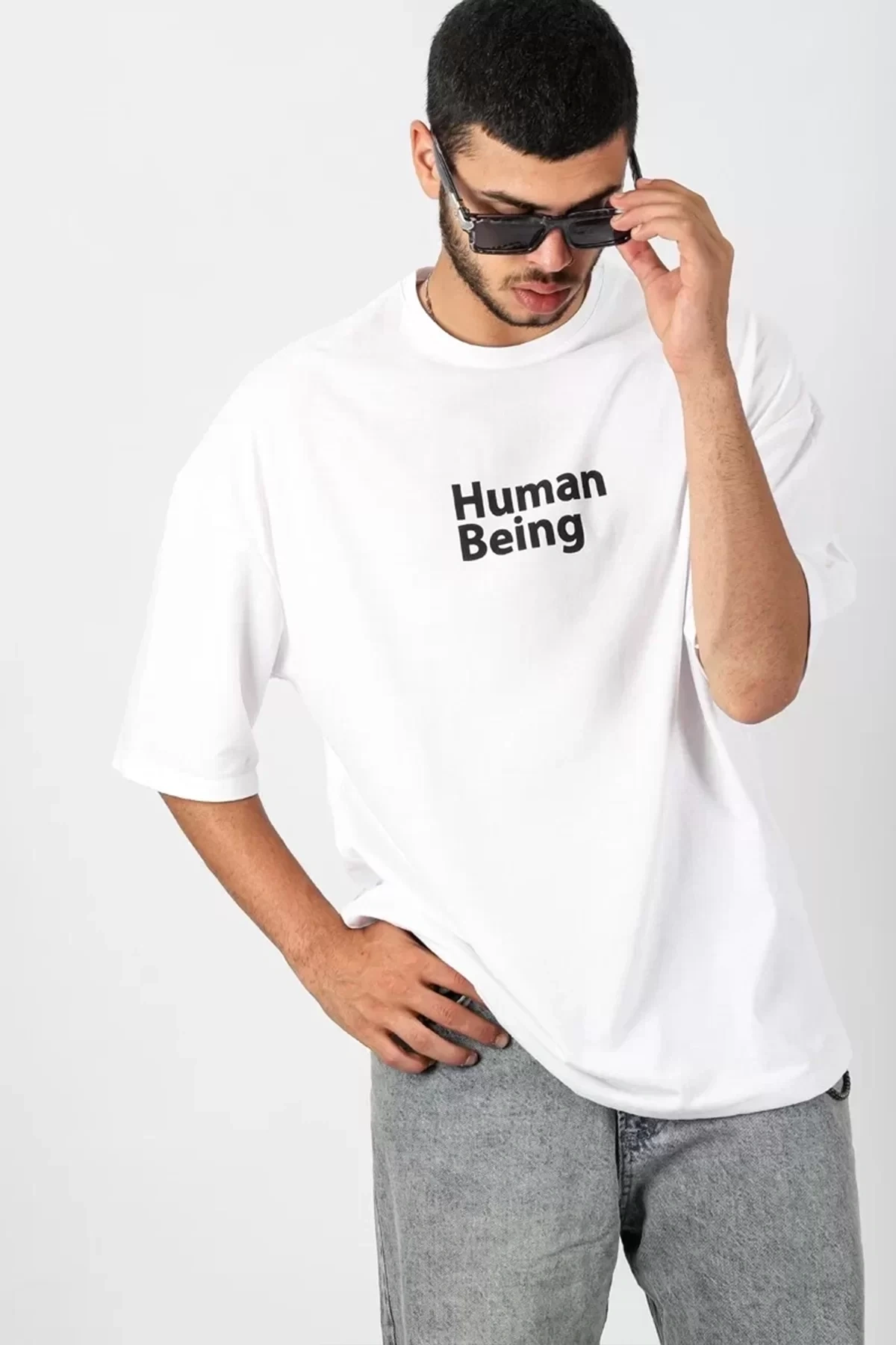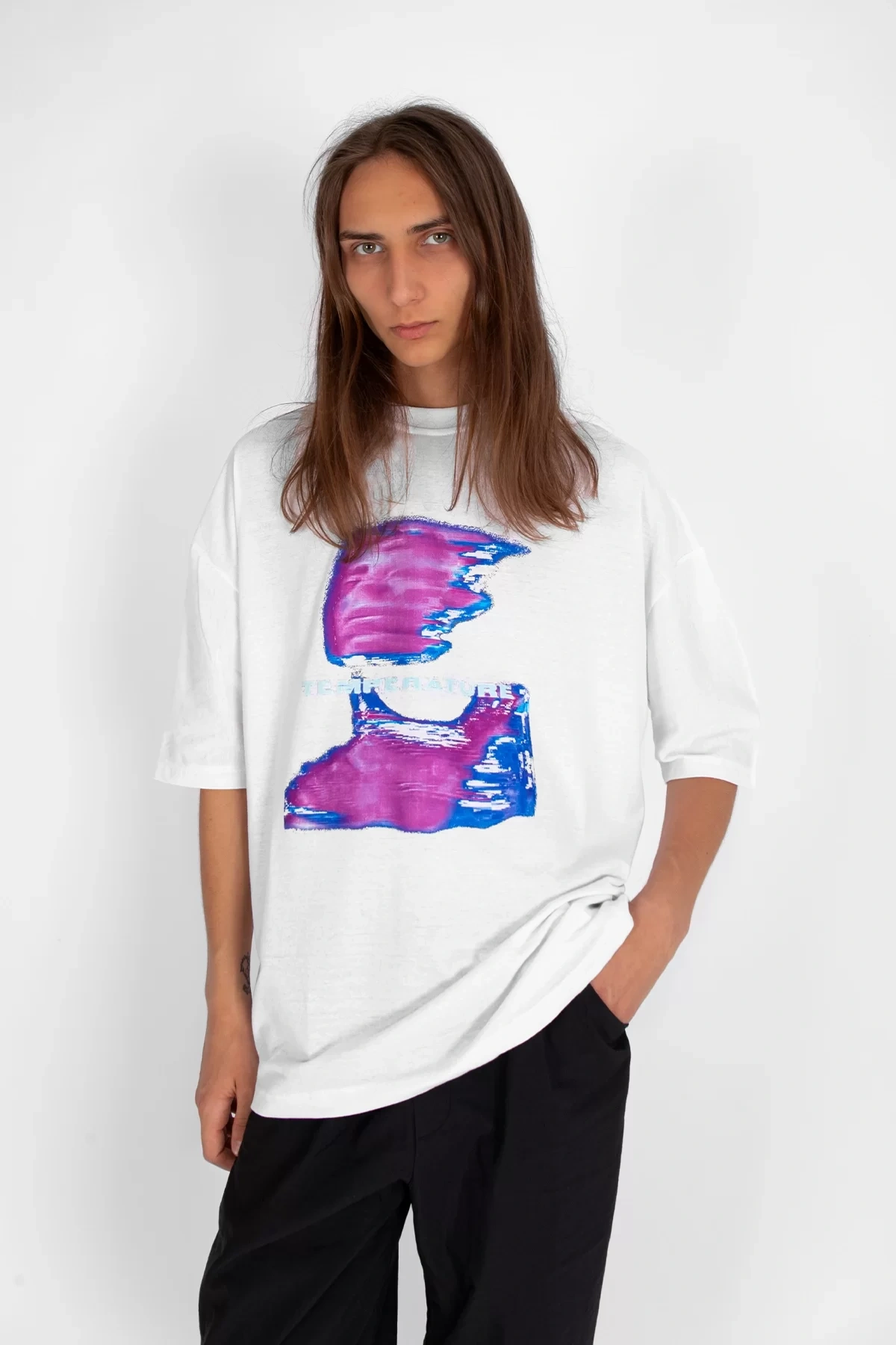 Temperature Baskılı Oversize Unisex Beyaz Tshirt