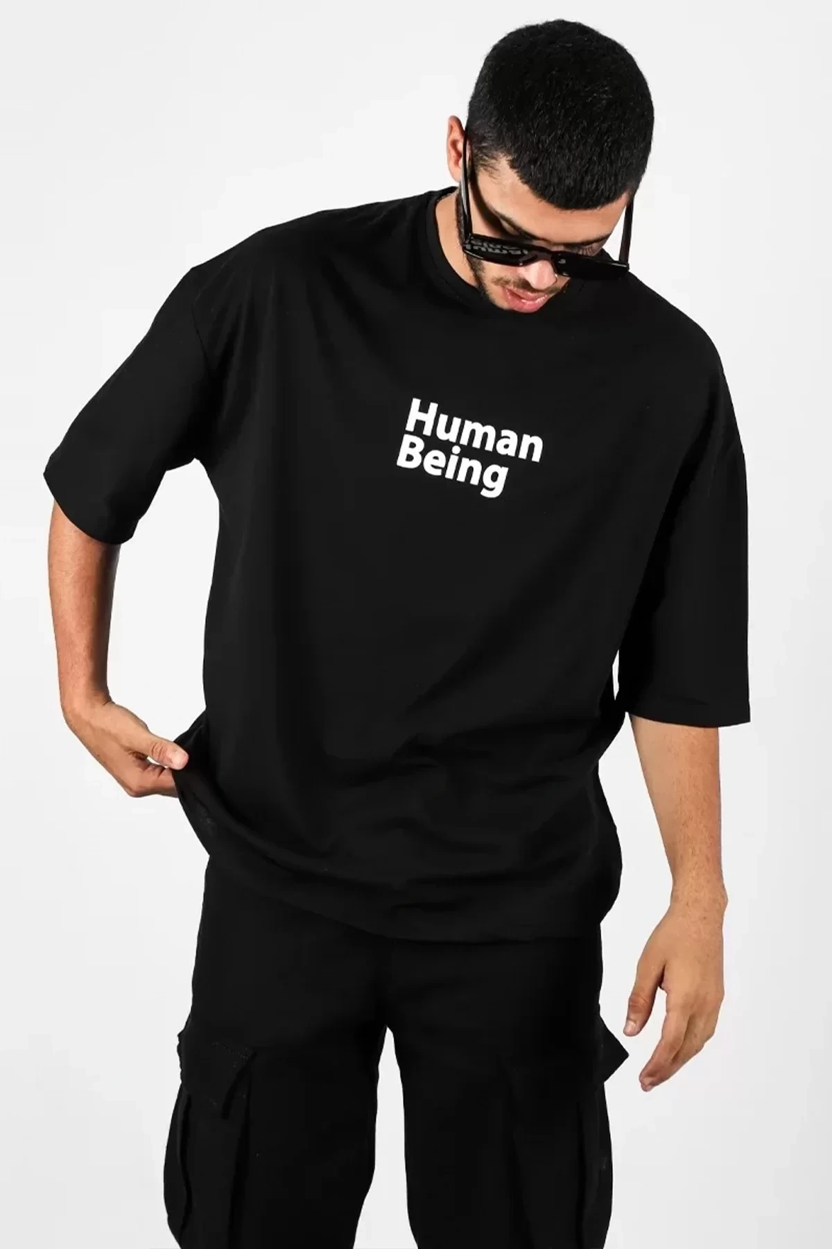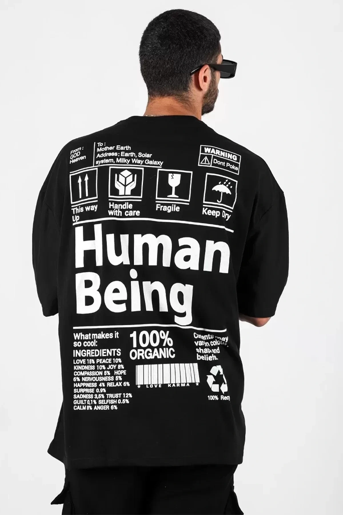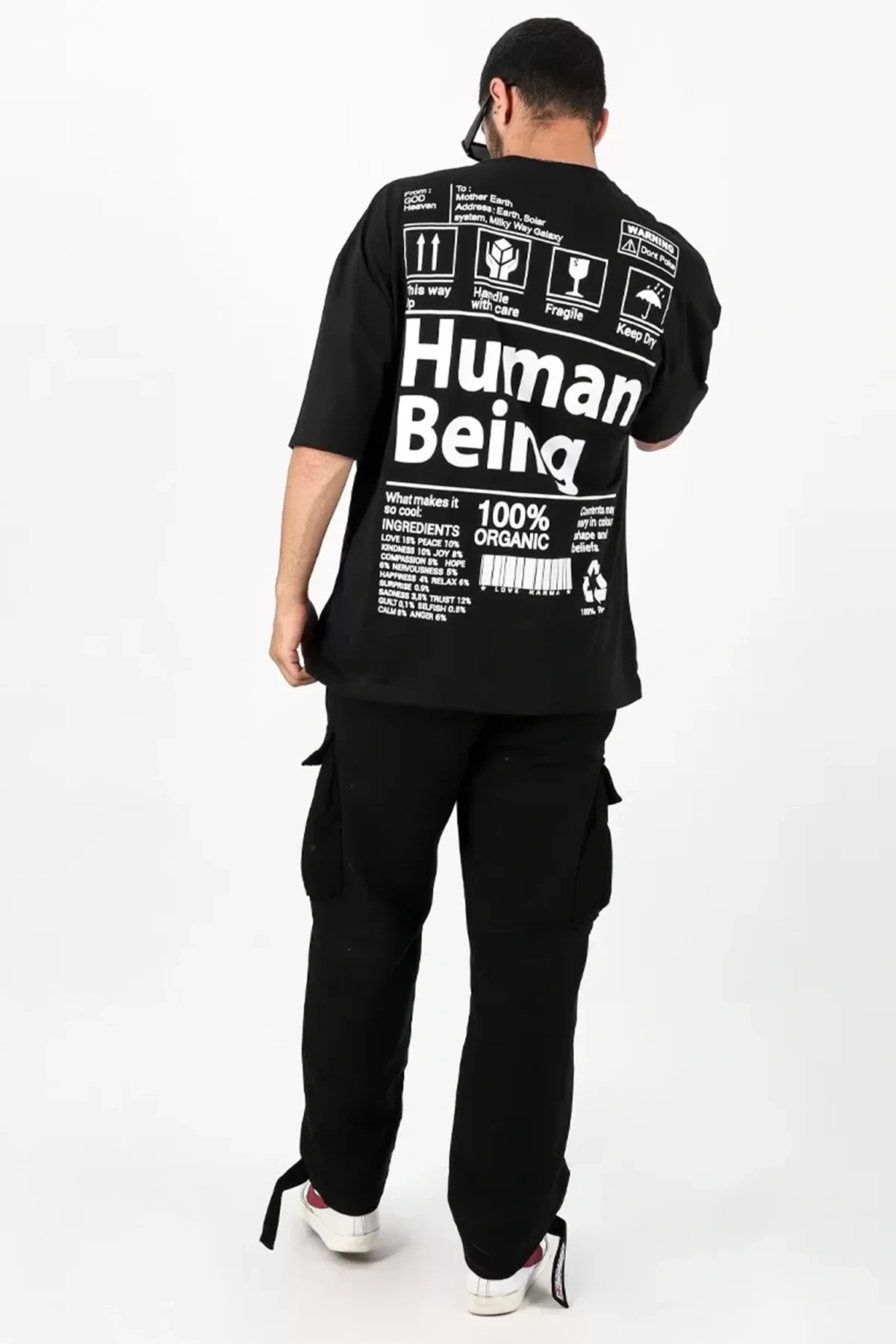 Temperature Baskılı Oversize Unisex Siyah Tshirt