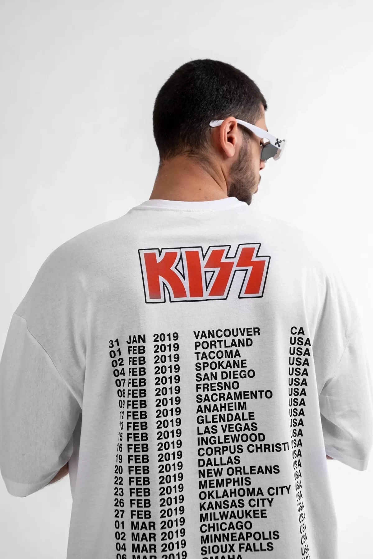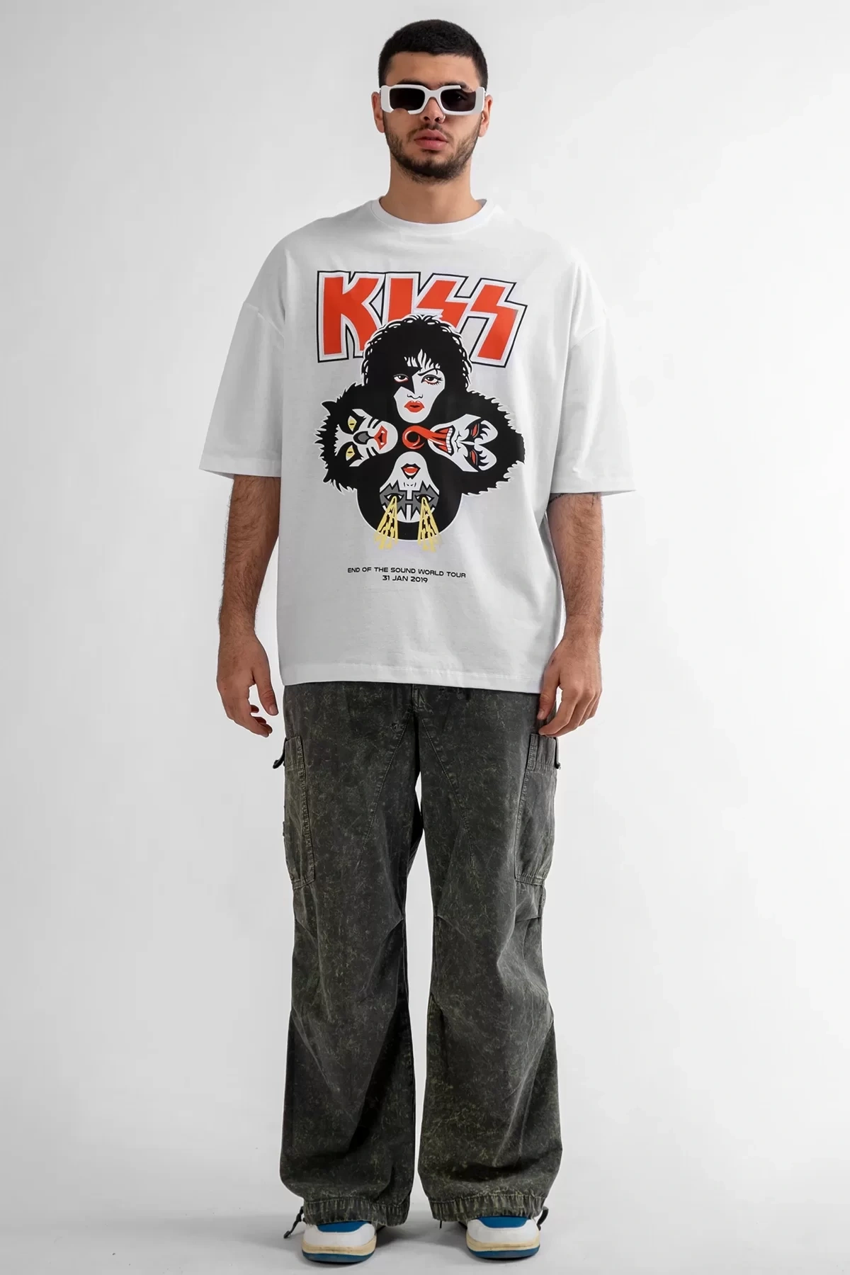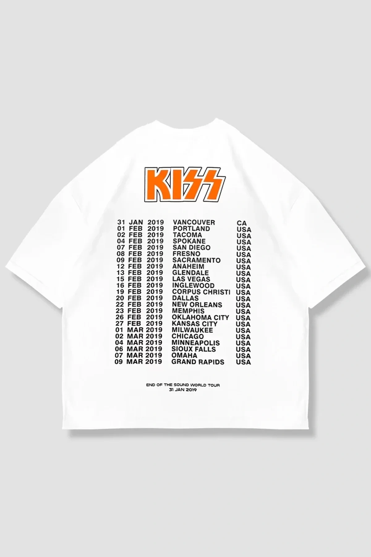 Kiss Tour Baskılı Beyaz Unisex Oversize Tshirt