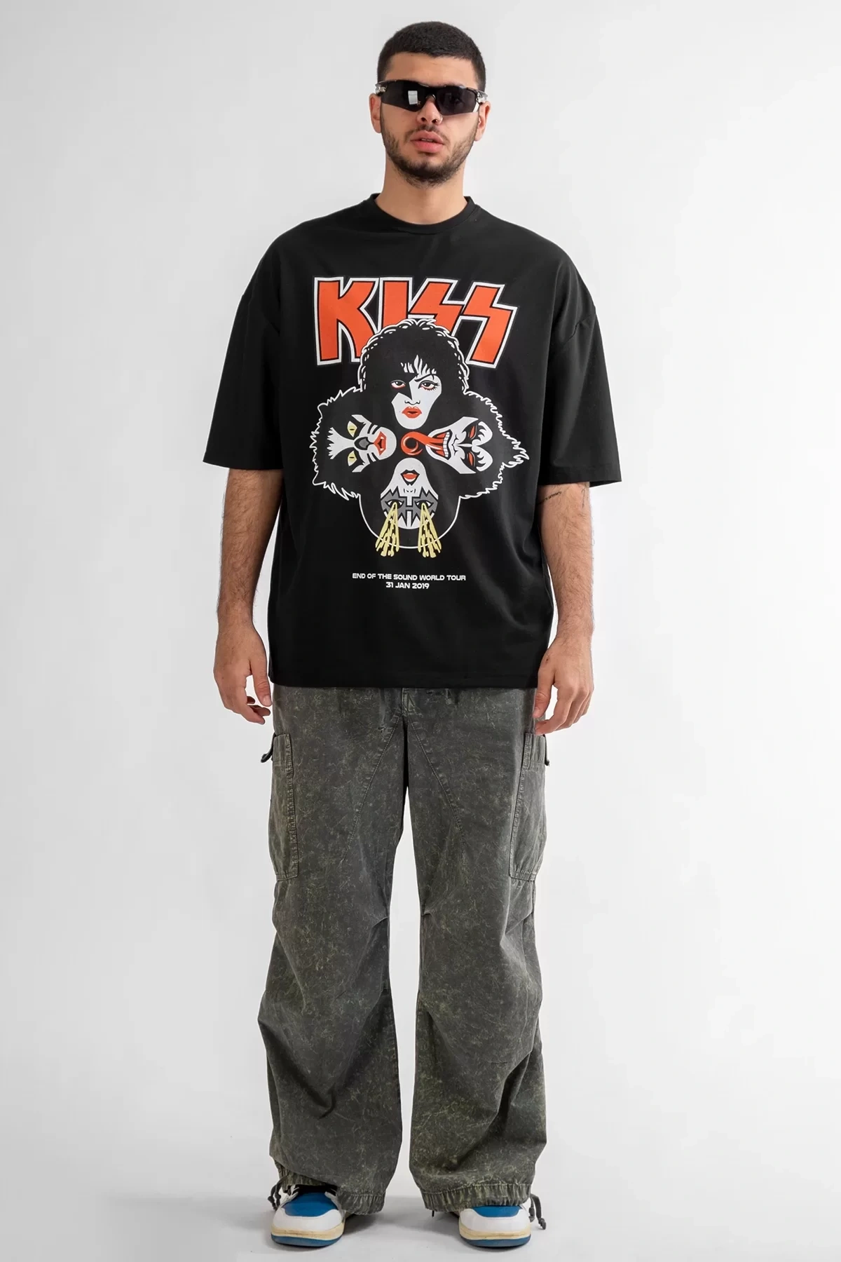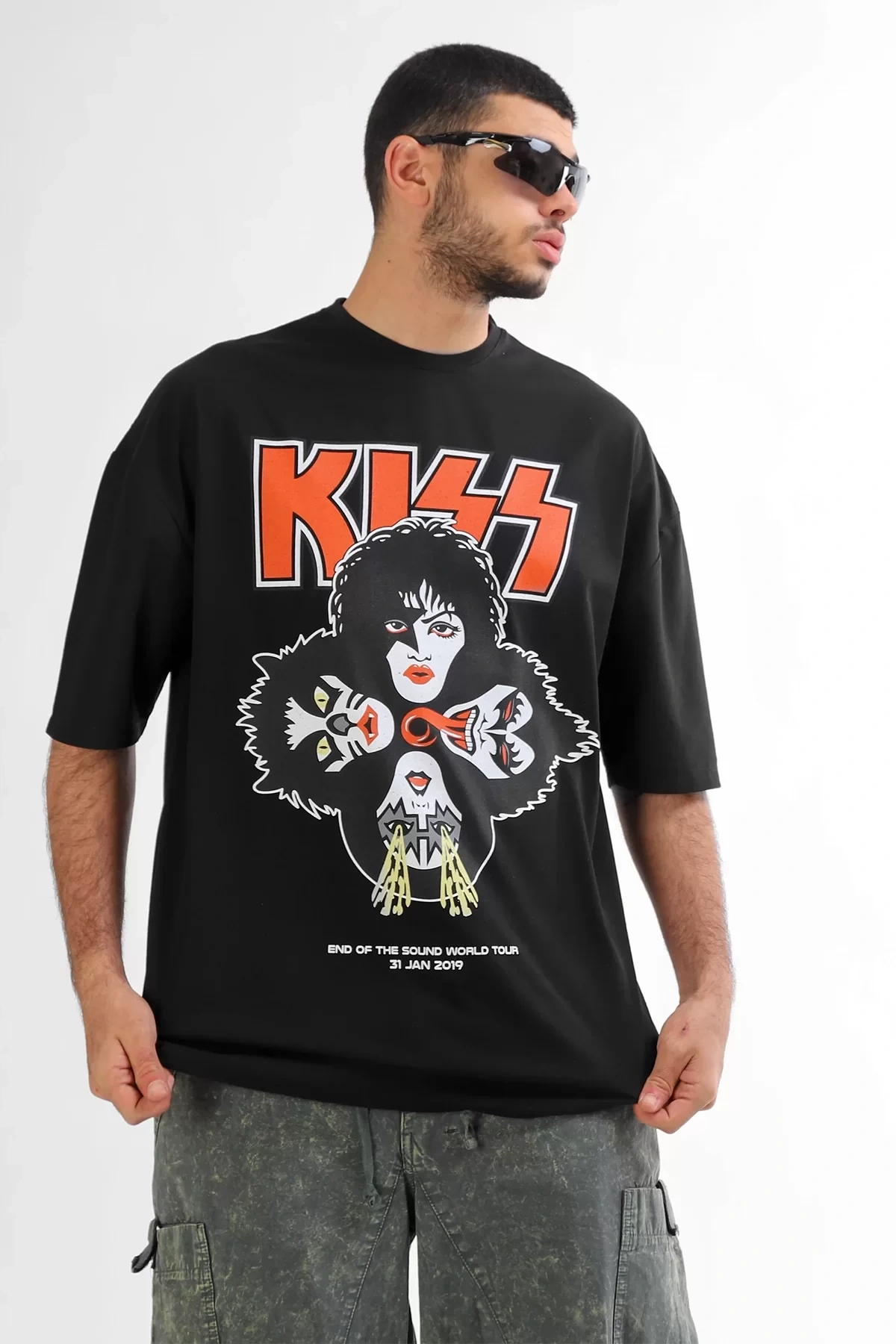 Kiss Tour Baskılı Siyah Unisex Oversize Tshirt