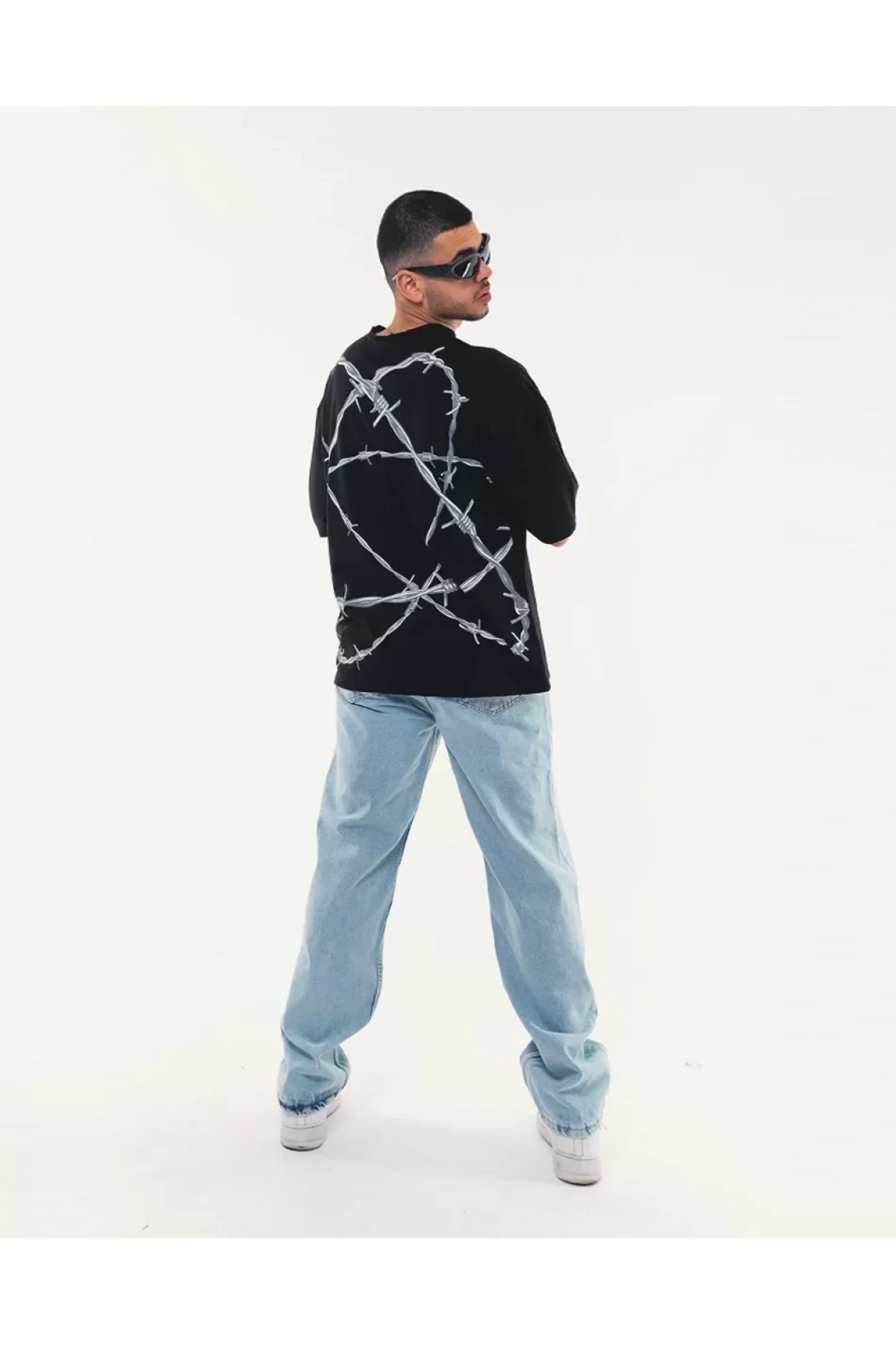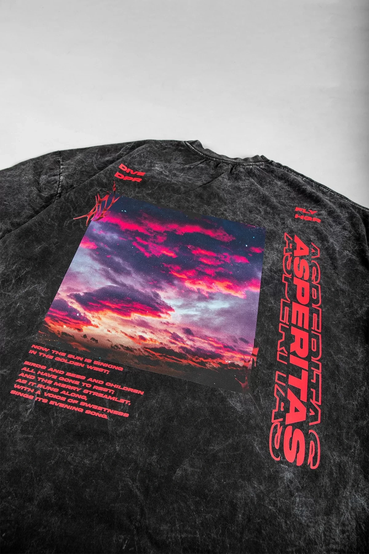 Yıkamalı Asperitas Sırt Baskılı Siyah Oversize Unisex Tshirt