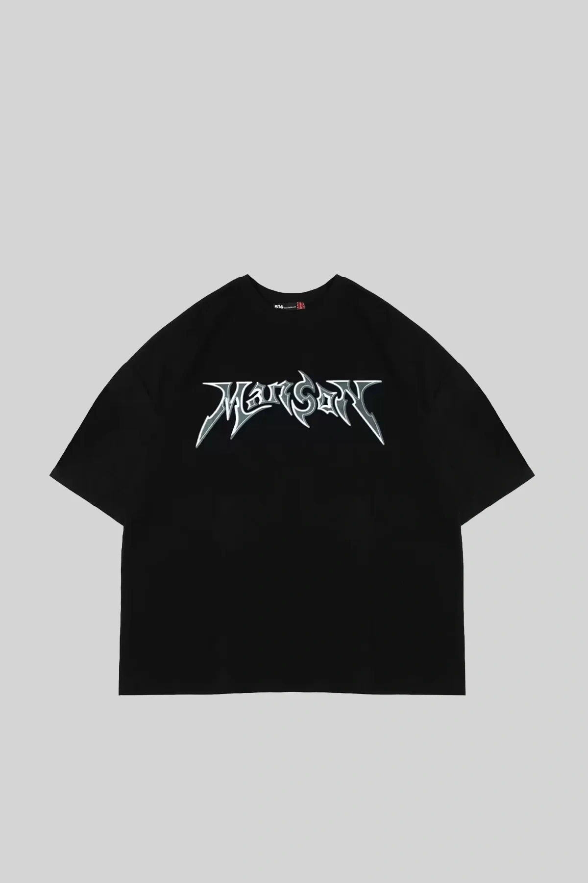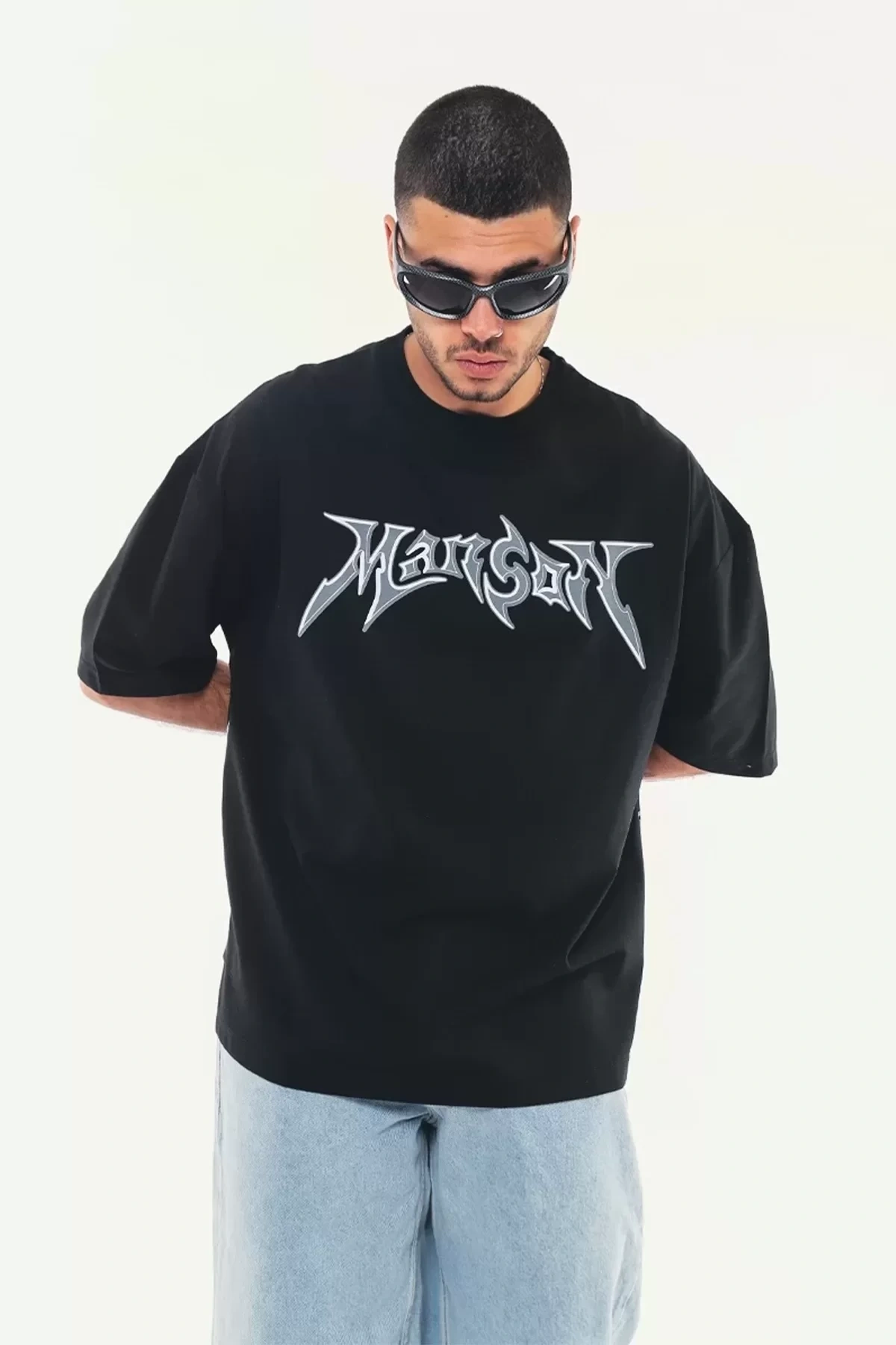 Manson Sırt Baskılı Siyah Unisex Oversize Tshirt