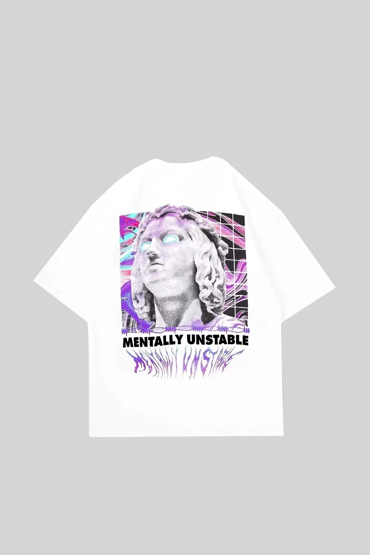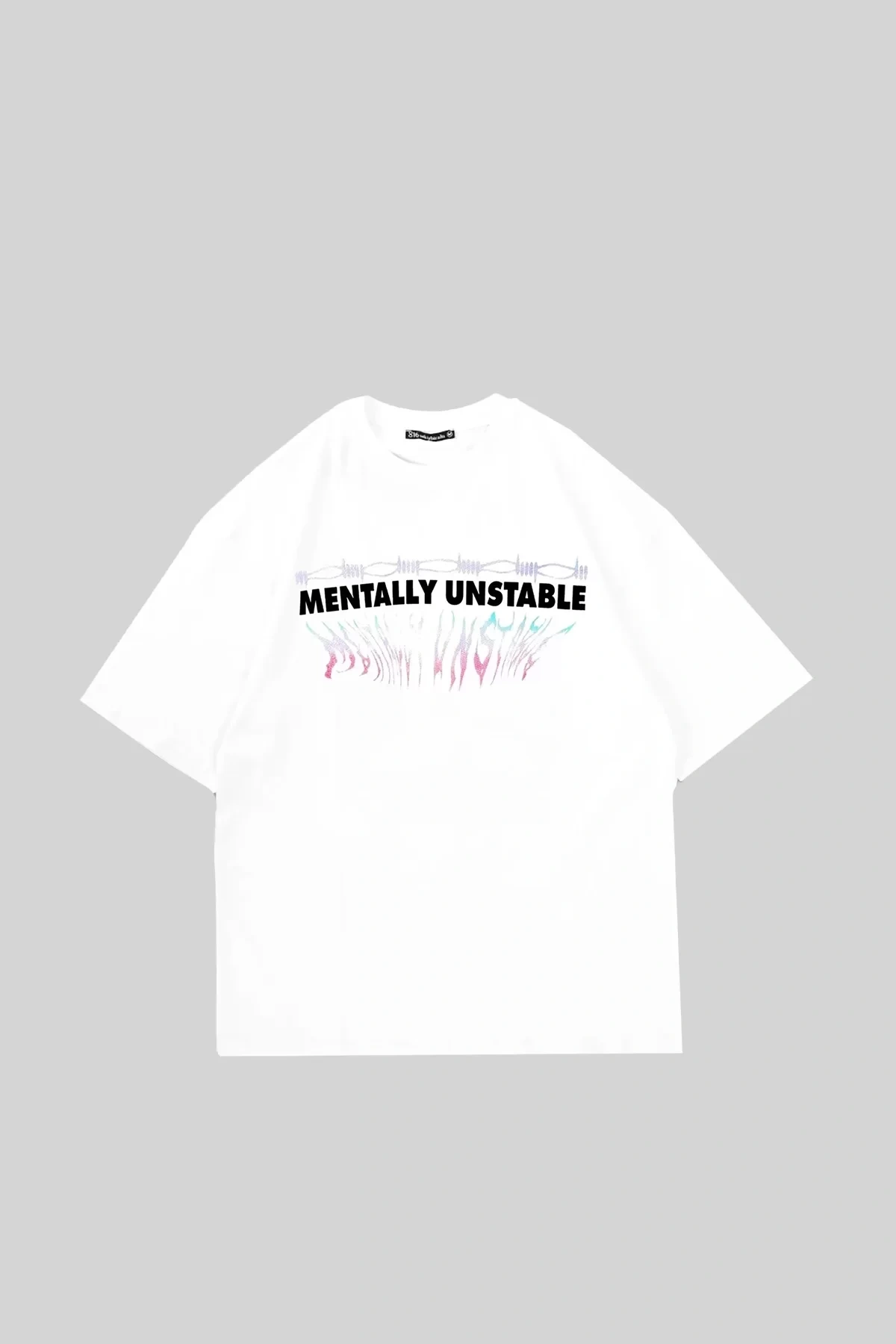 Mentally Unstable Sırt Baskılı Beyaz Oversize Unisex Tshirt