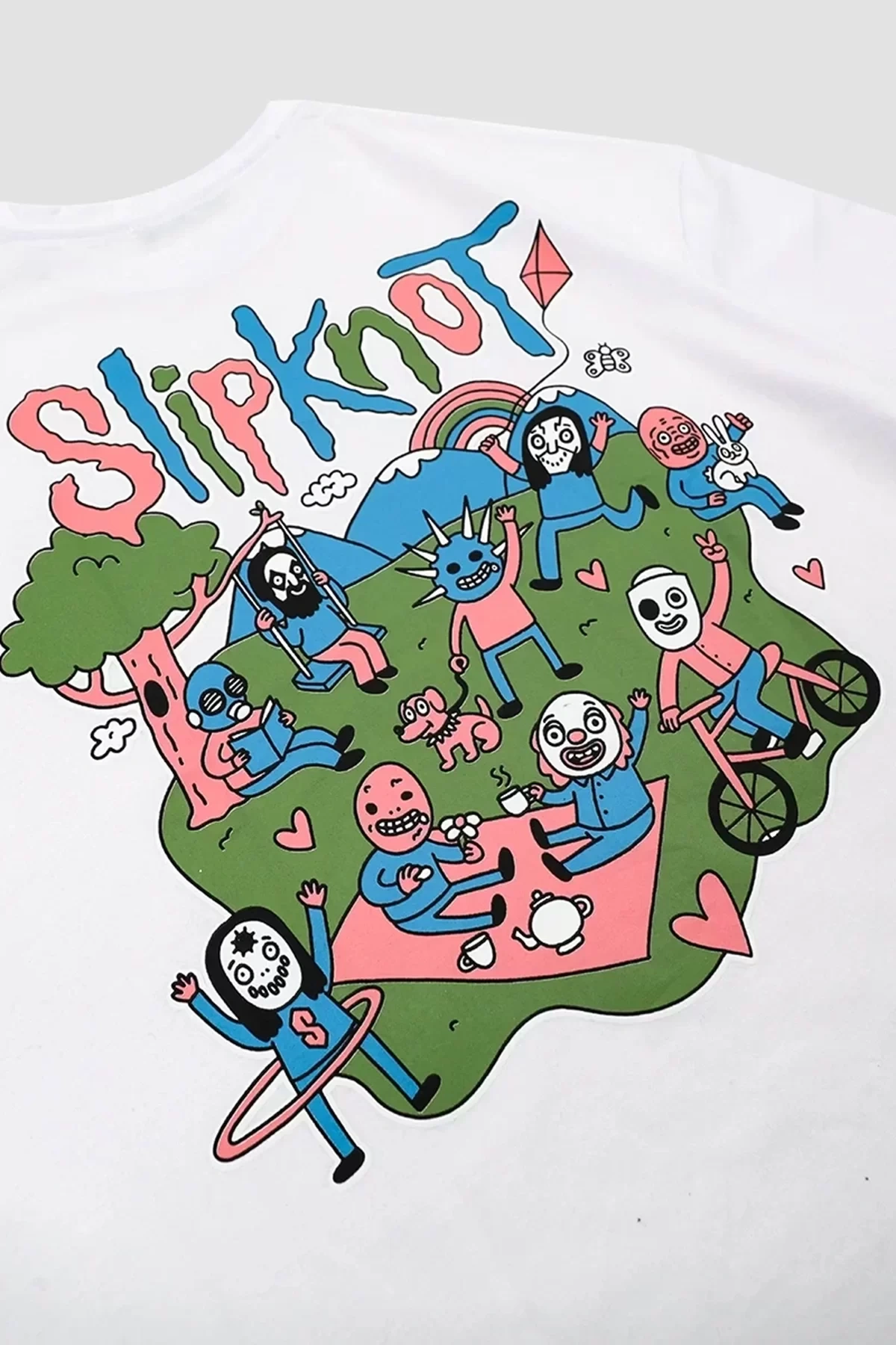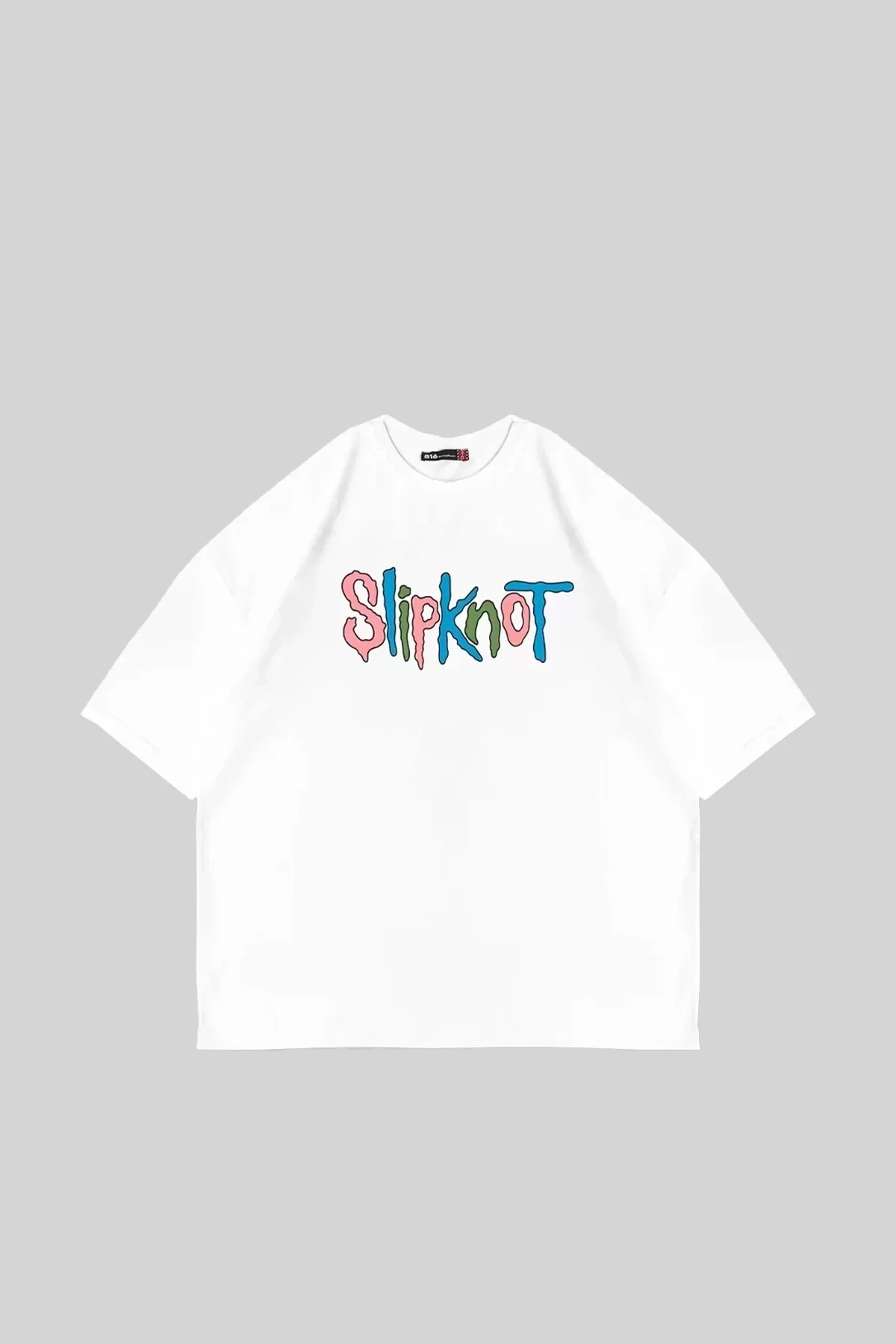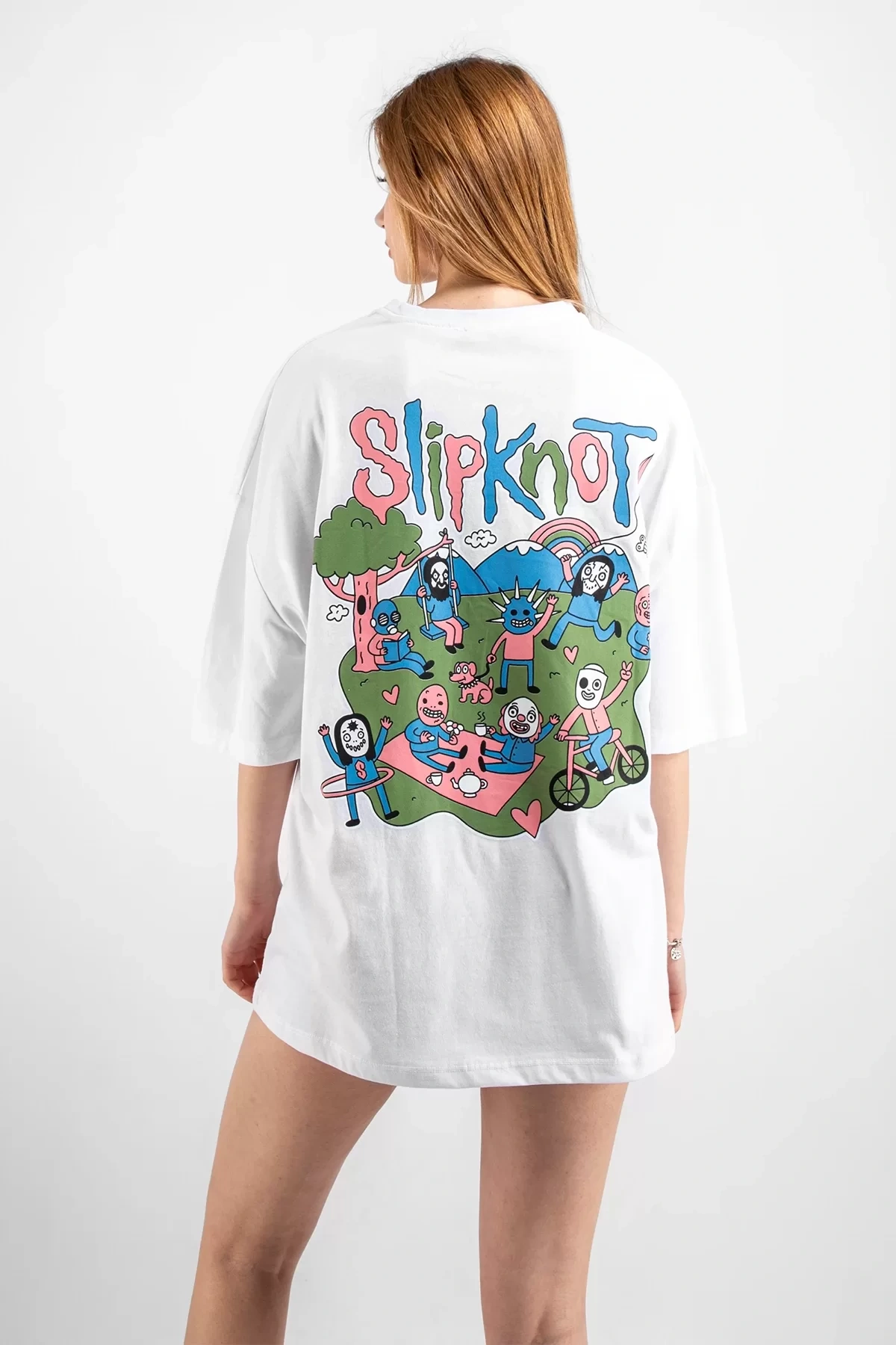 Slipknot Sırt Baskılı Beyaz Unisex Oversize Tshirt