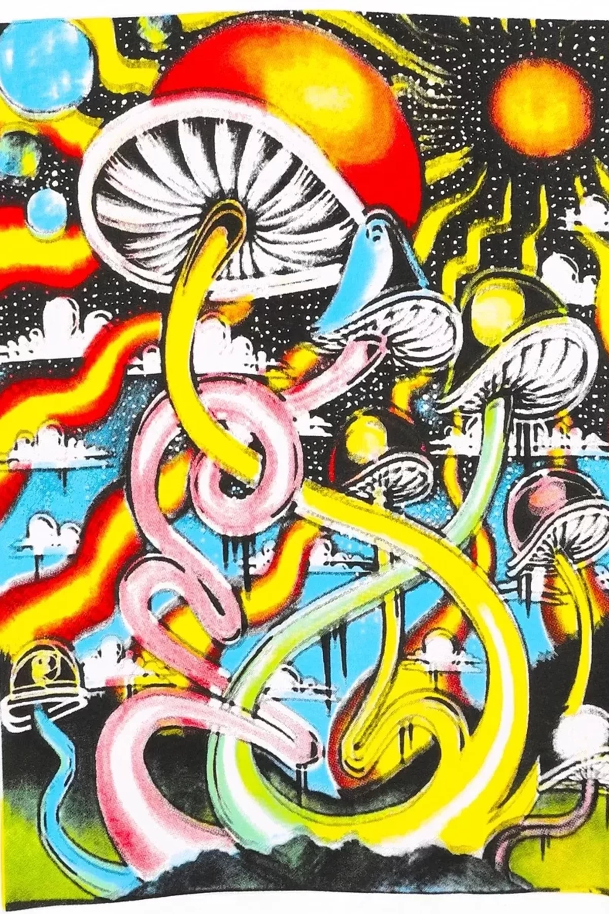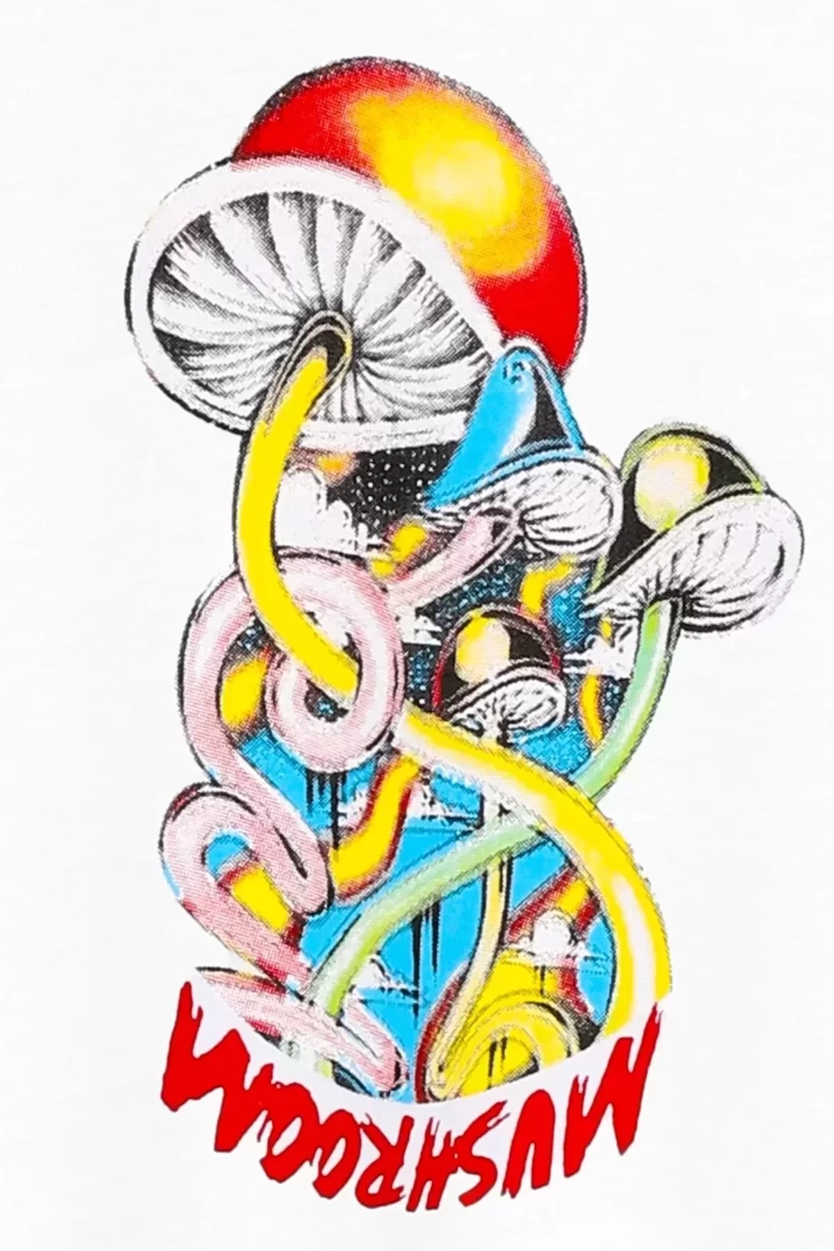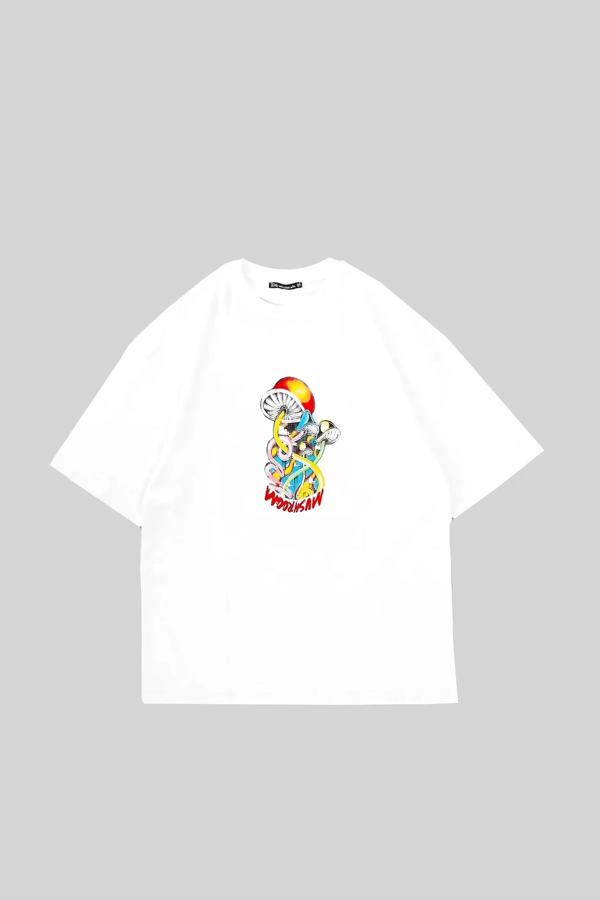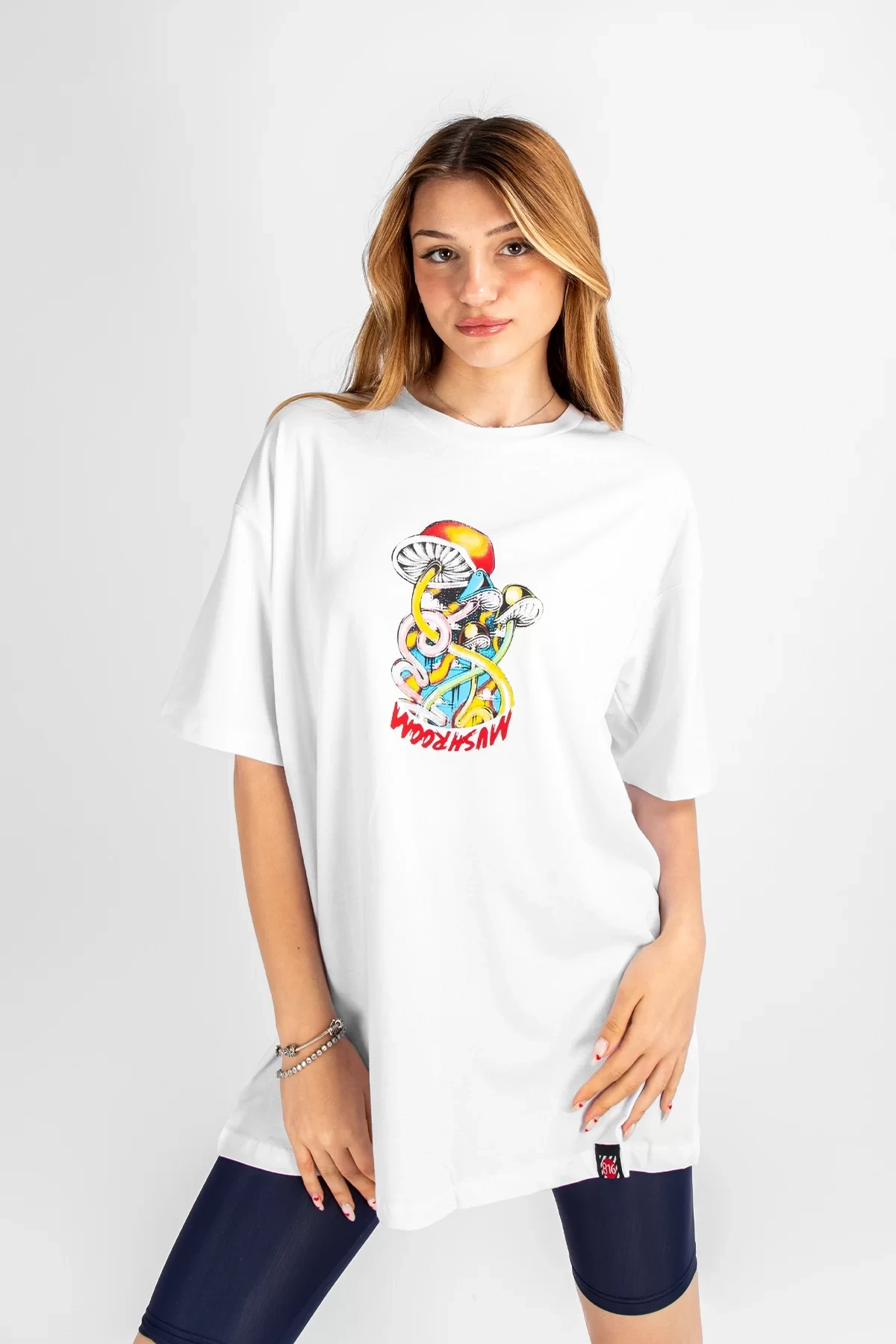 Trippy Mushrooms Sırt Baskılı Beyaz Unisex Oversize Tshirt