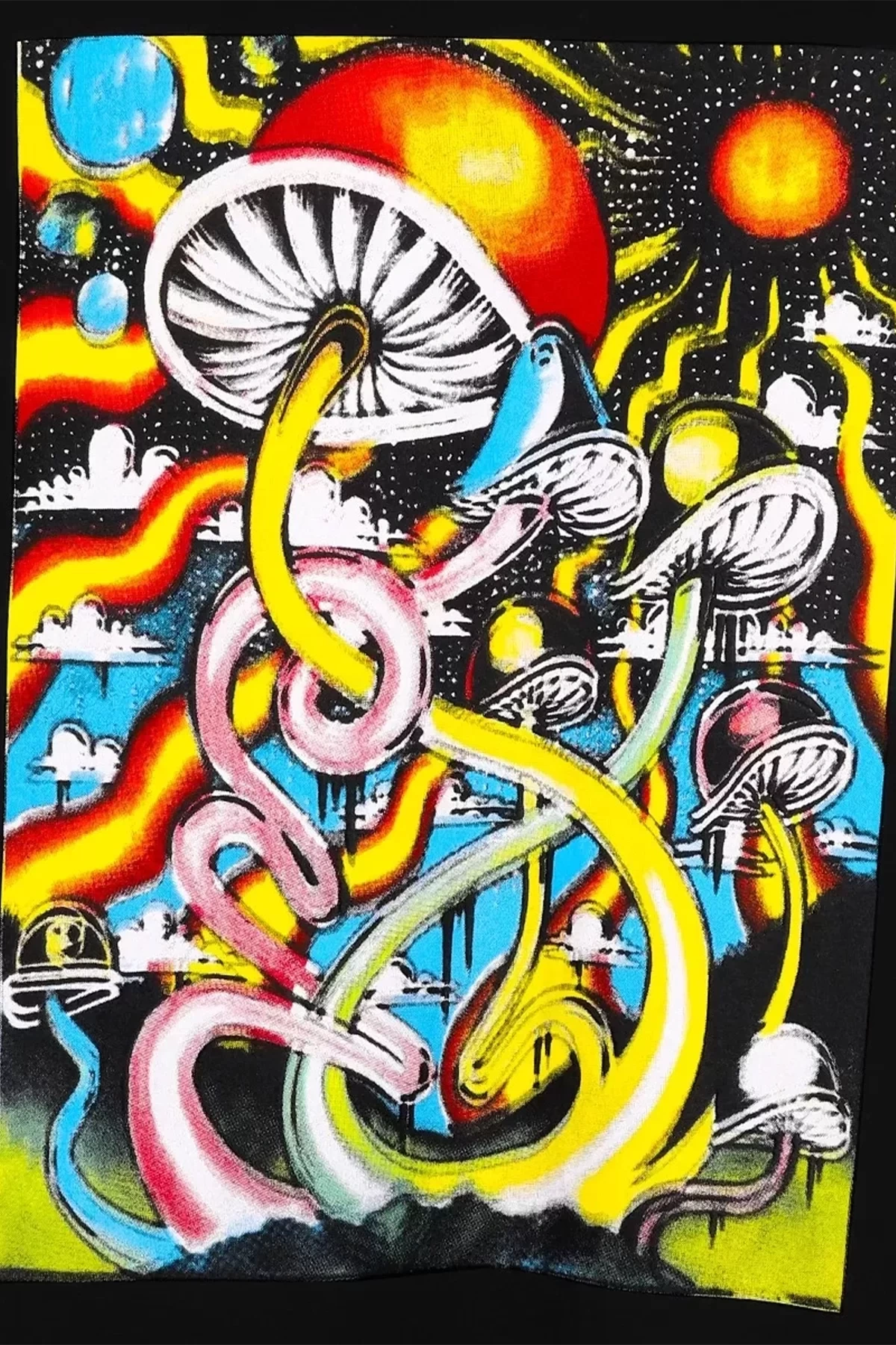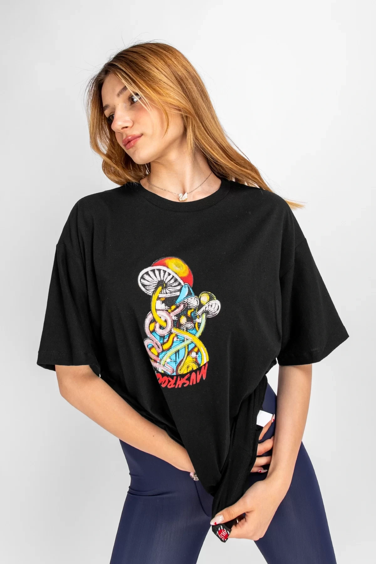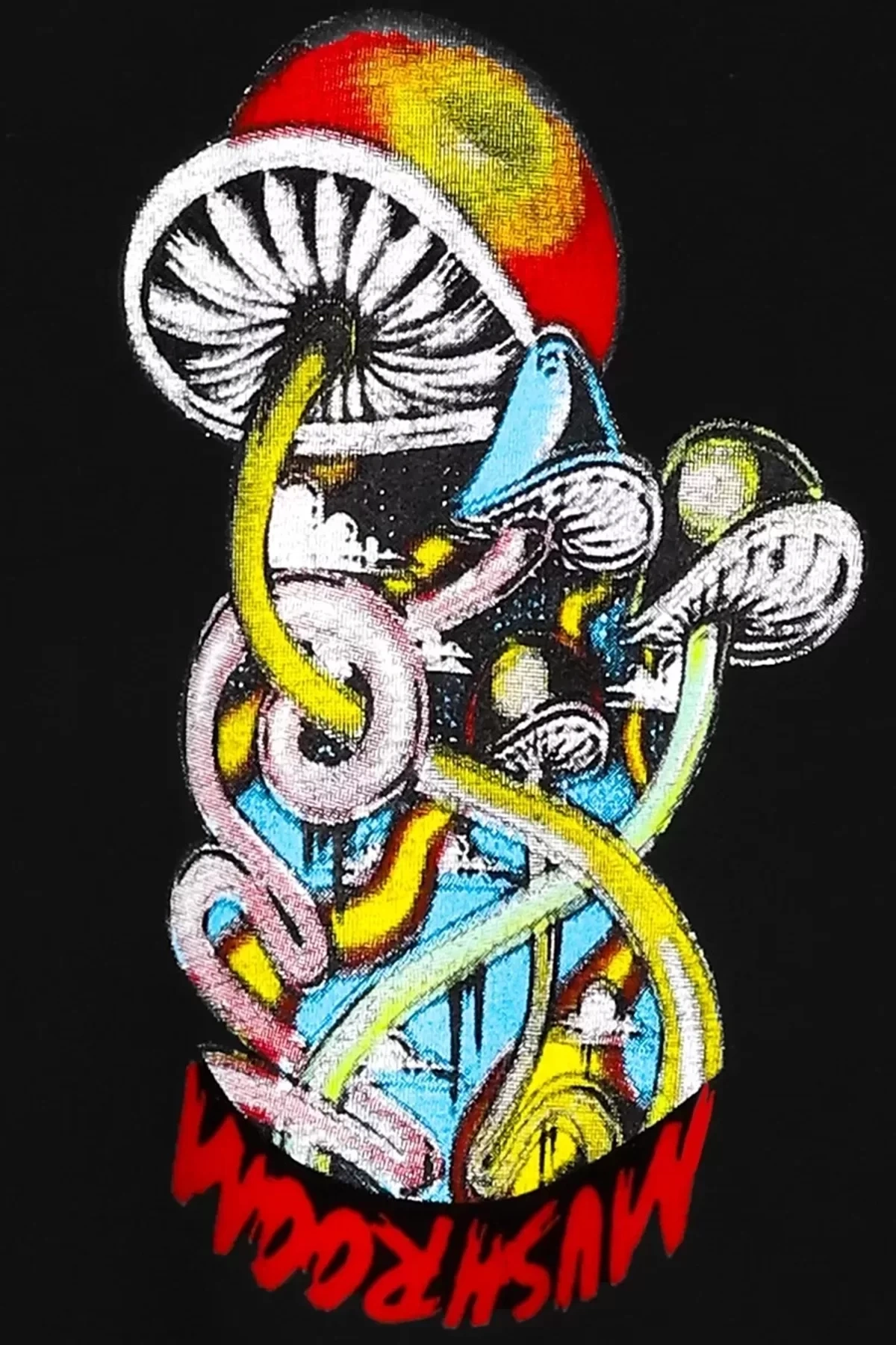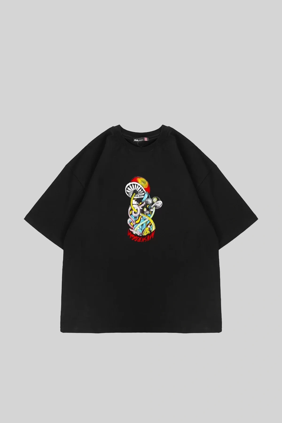 Trippy Mushrooms Sırt Baskılı Siyah Unisex Oversize Tshirt