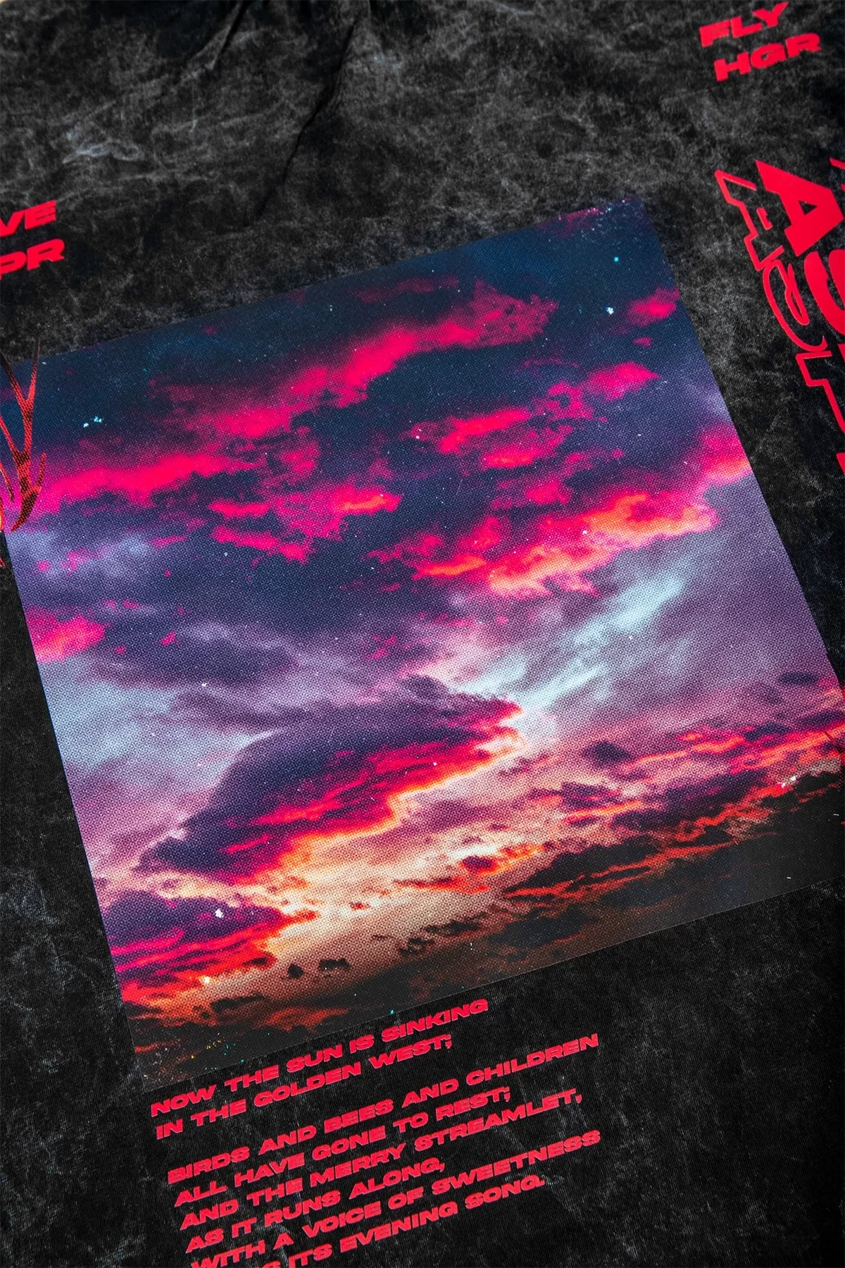 Temperature Baskılı Oversize Unisex Yıkamalı Siyah Tshirt