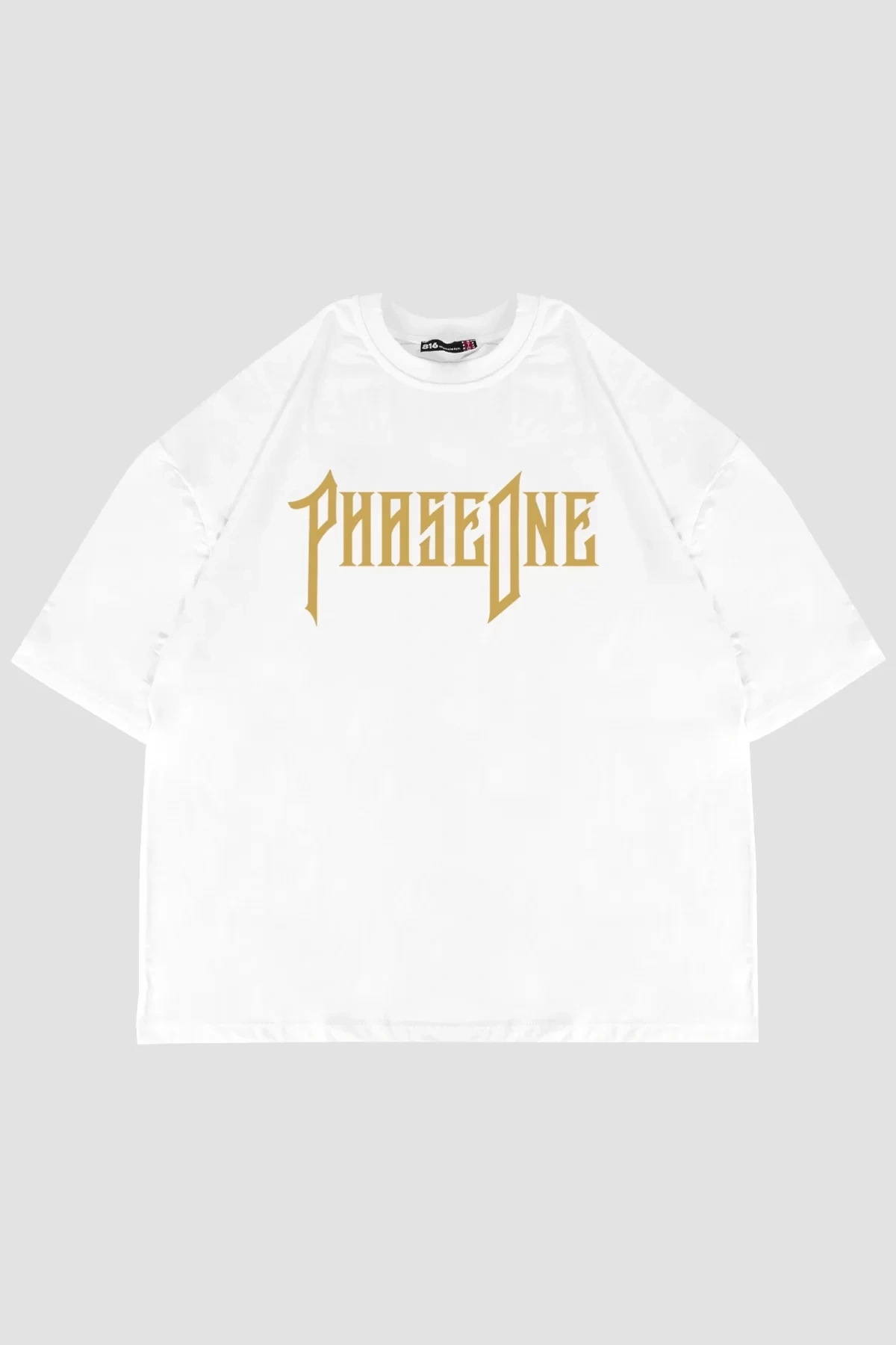 Phaseone Sırt Baskılı Beyaz Unisex Oversize Standart Beden Tshirt