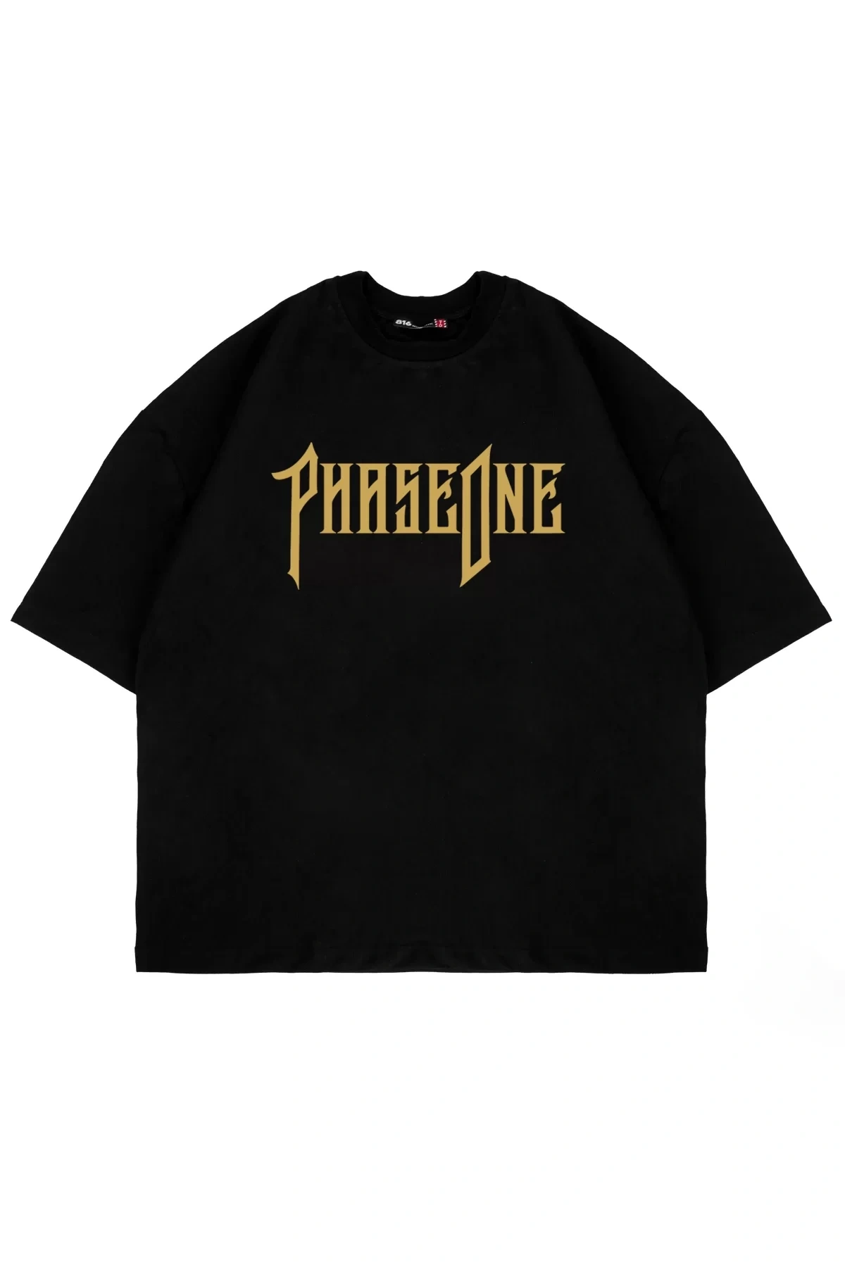 Phaseone Sırt Baskılı Siyah Unisex Oversize Standart Beden Tshirt