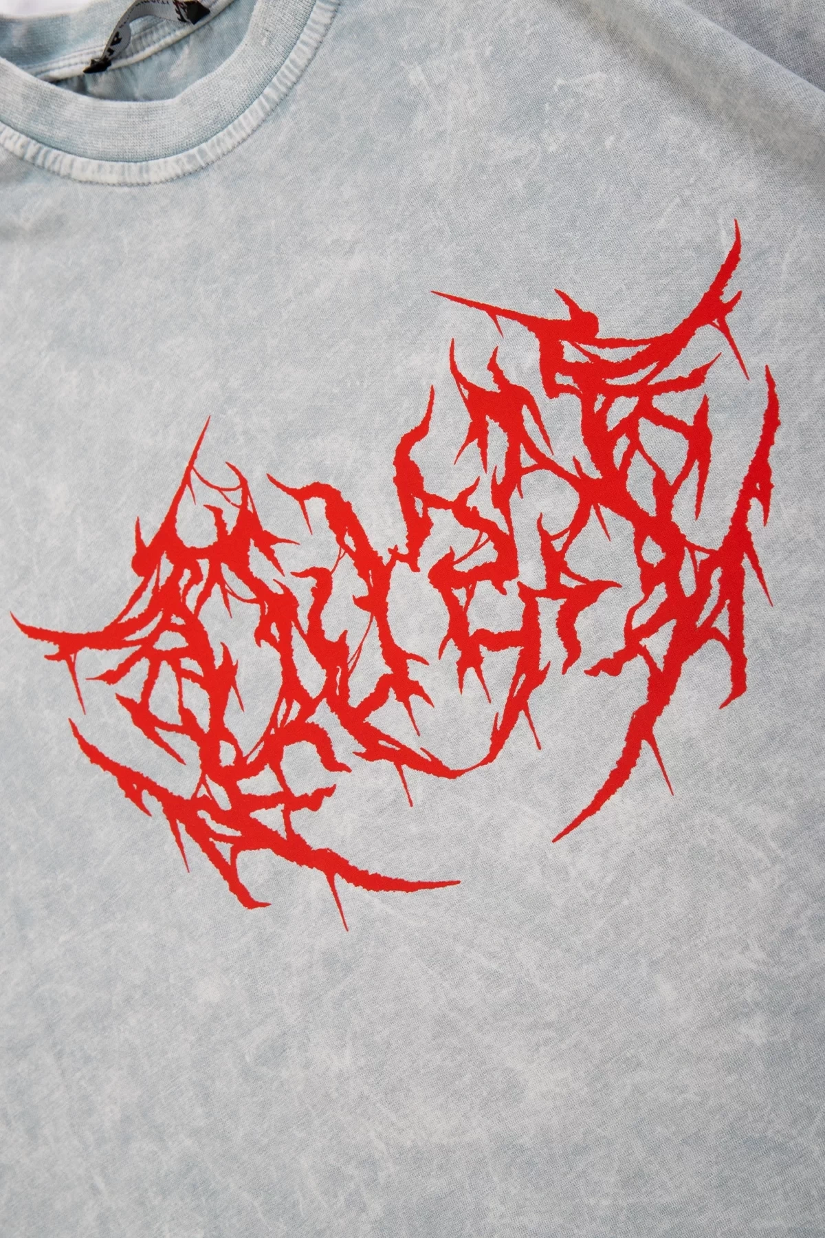 Yıkamalı Beyaz Kırmızı Dusk Baskılı Oversize Unisex Tshirt